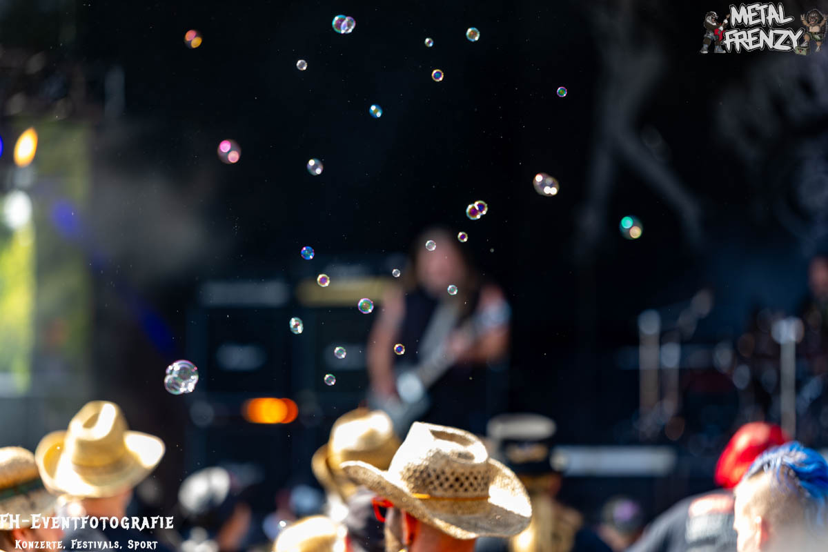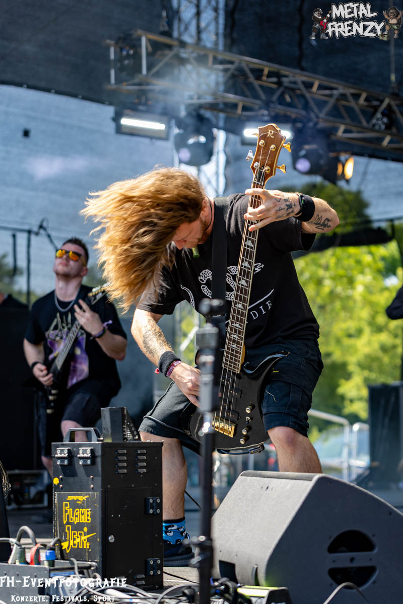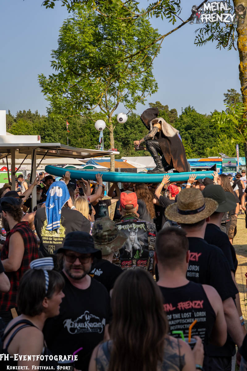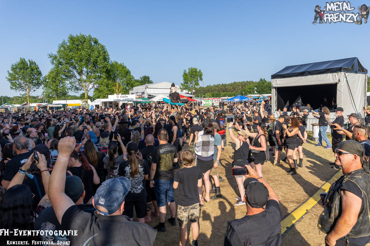 Auf dem MFOA durften sie ihre Show und ihren Sound komplett Richtung Metal schrauben, und das finde ich hat deren Show so richtig gutgetan. Vom letzten Mal hatte ich sie irgendwie eher langweiliger in Erinnerung. Aber auf dem Frenzy waren sie eine andere Band. Das klang mega, das machte mega Spaß und die Stimmung im Publikum war dementsprechend großartig. Nach diesem fullmimanten Abschluss der Liveauftritte gab es noch einige Stunden Musik aus der Konserve. Danach brachen dann die letzten Stunden Schlaf an, die die Metalheads auf dem Acker vor dem Gardelegener Freibad verbringen konnten, bevor es Sonntag wieder zurück Richtung Alltag ging.