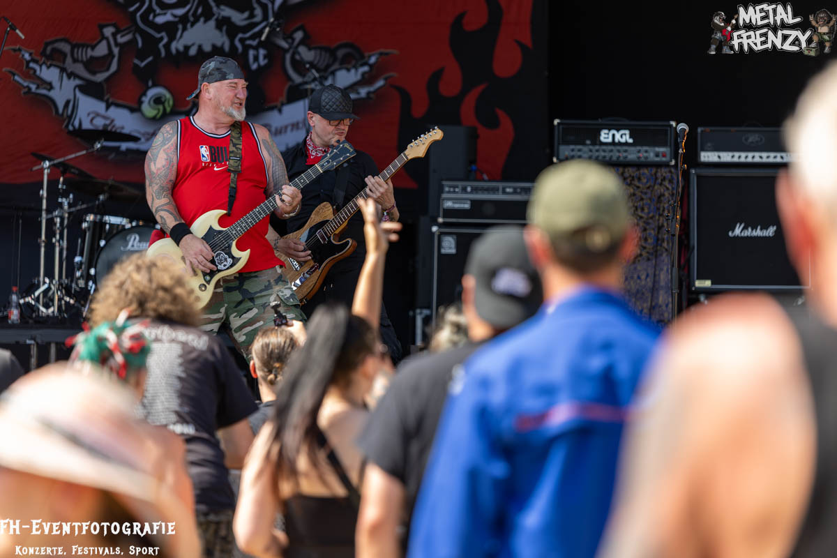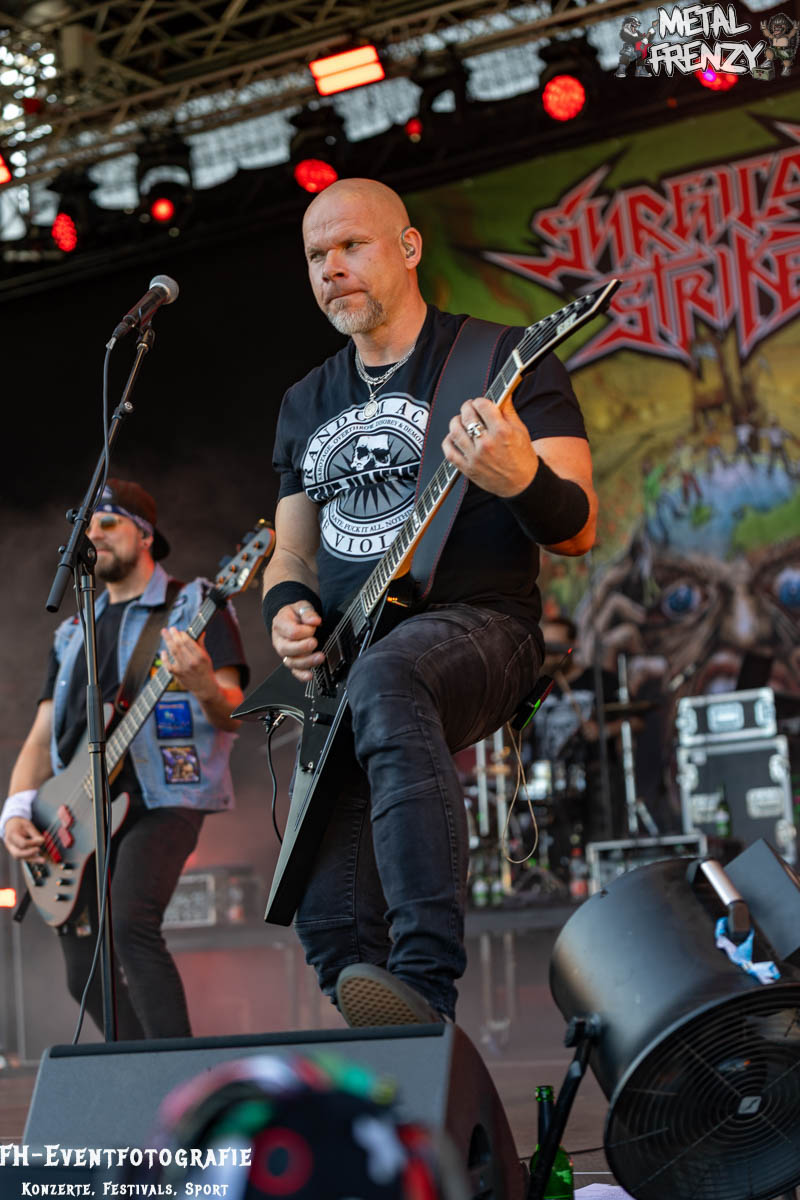 Die nun folgende Band hätte sicher auch ohne Schatten das Infield zum Brodeln gebracht. »Surgical Strike« hatten ihren Auftritt und es war ein großartiger. Es gibt einfach Bands, die für mich und auch für die Fans immer ein Garant für eine richtig gute Zeit sind. »Surgical Strike« gehören für mich da einfach immer dazu.