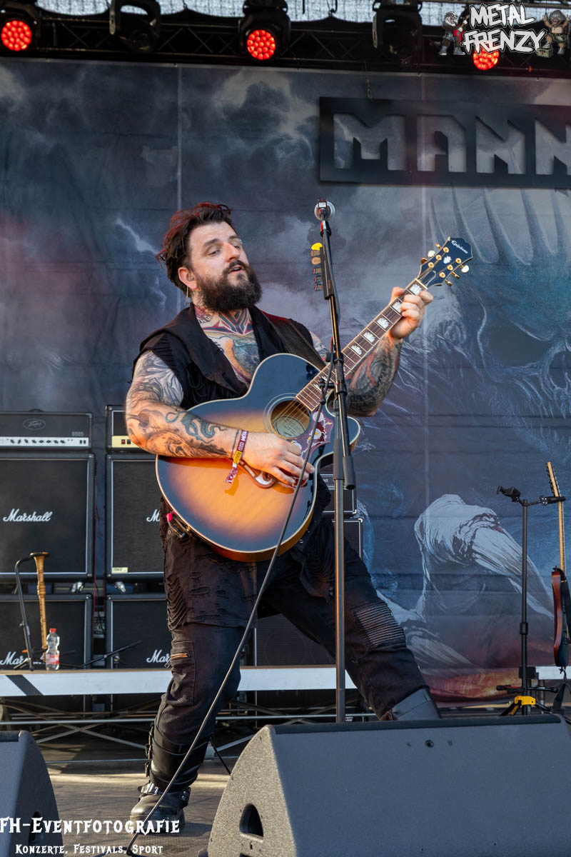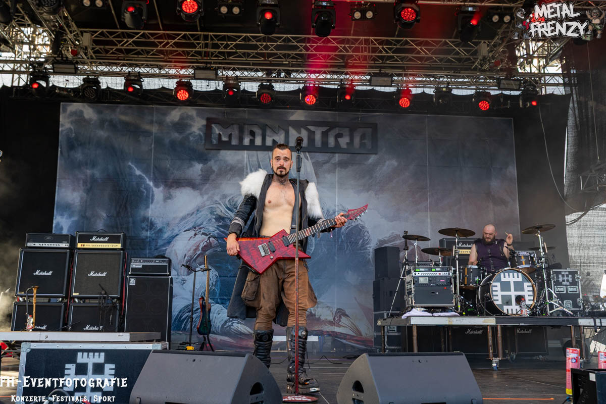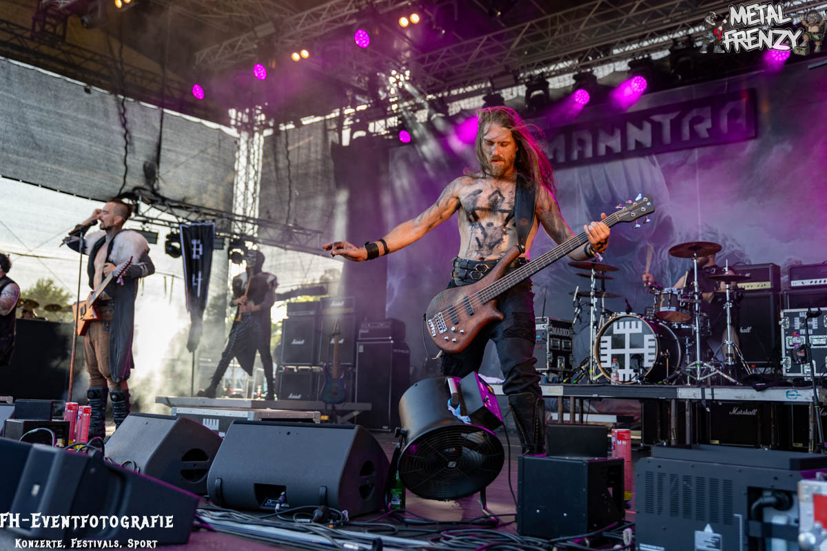Die danach folgende Band habe ich leider noch nie zuvor erleben dürfen. Und ich bin sehr froh, sie auf dem Mera Luna noch einmal erleben zu dürfen. »Manntra« aus Kroatien. Eine unglaublich abgefahrene Mischung aus Metal und Rock. Mit einem Skelett auf der Bühne, das sogar zwischendurch eine Surftour über die Fluten der Fans machte.