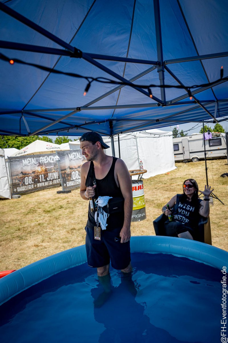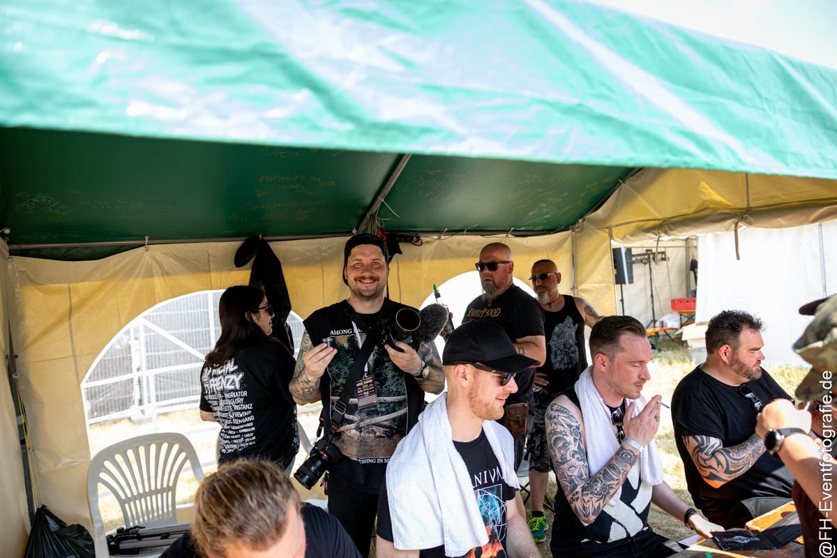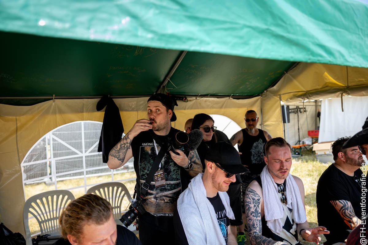 Nachdem die dr3ier die Partypauken im Punkgewand ausgepackt haben, starten nun mit Bucketlist die Modern Metal Fraktion ins Rennen. Trotz Gluthölle vor und sicher auch auf der Bühne hauen die mal die gewohnten, aber brachialen Klänge ihres Genres in meine Ohrgänge. Da wird sich bald Mal ein langes Set von angeschaut.