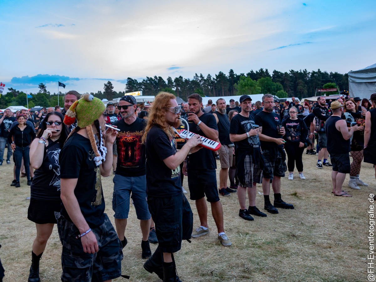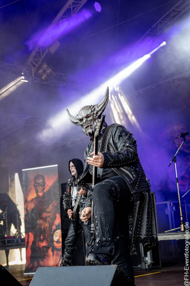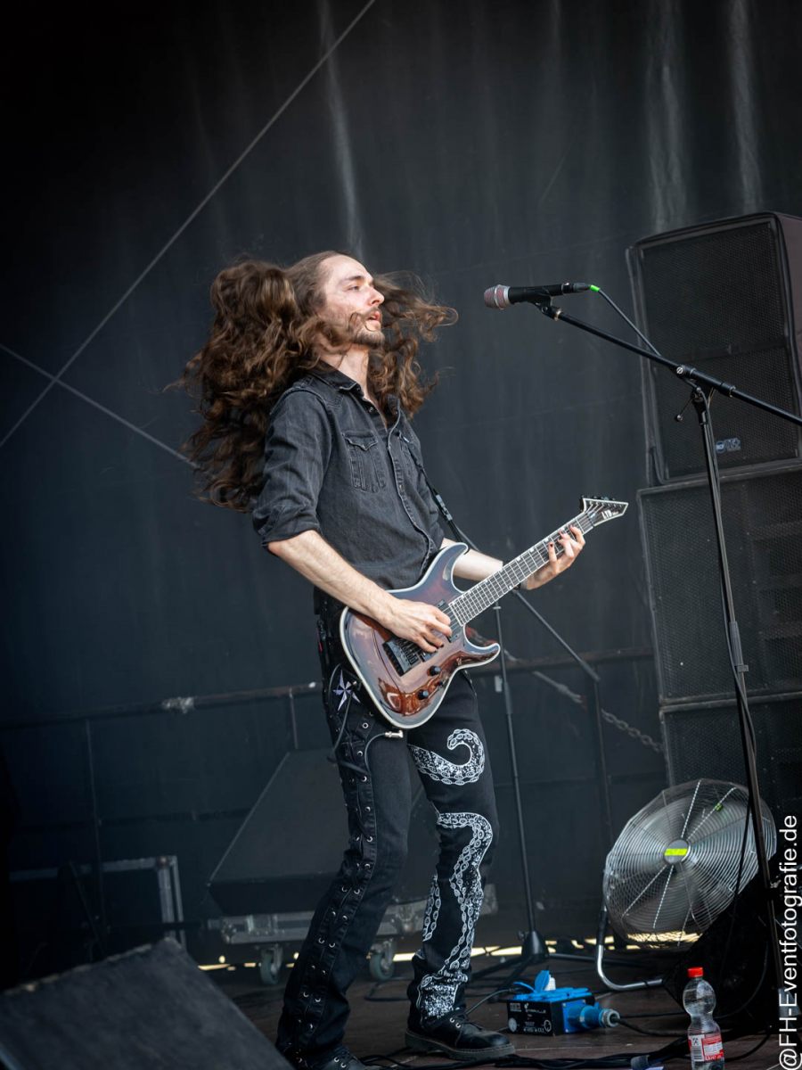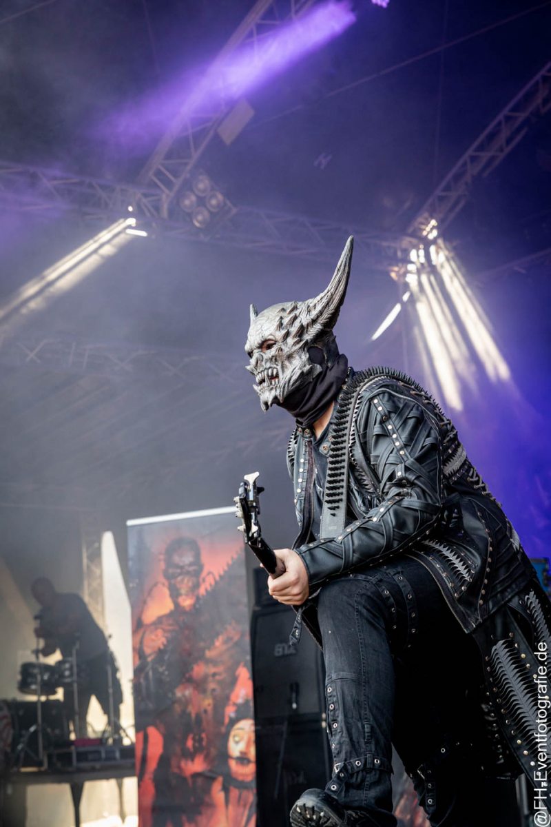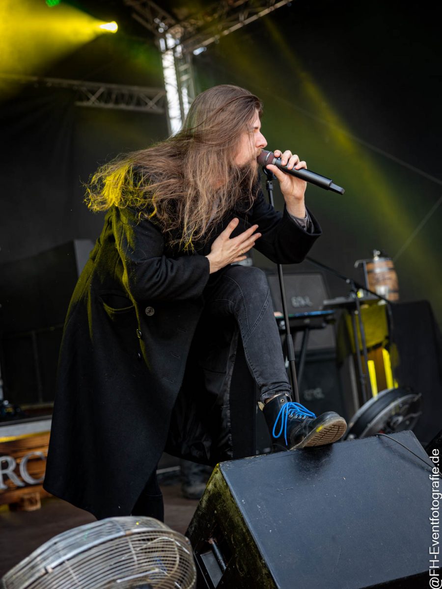 Aus der PA schallen im Wechsel melodische Klänge, dann martialischer Metal unterbrochen von Aufnahmen aus der Kaiserzeit. Ich lese mich verwirrt ob der ganzen Eindrücke erstmal schnell schlauer. Die erinnerlich ihrer konzepttreue ordentlich an Sabaton. Man möge es mir verzeihen. Aber die Jungs haben sich halt den ersten Weltkrieg als Basis ausgesucht und das mit viel Recherche und Aufwand zu ihrer Musik gemacht und ehrlich gesagt machen die da ihren Job echt gut. Die Menge an Fans sehen das sicher genauso, die trotz immer noch Monster Hitze vor die Bühne gestürmt sind und teils echt ausgelassen pogen.
