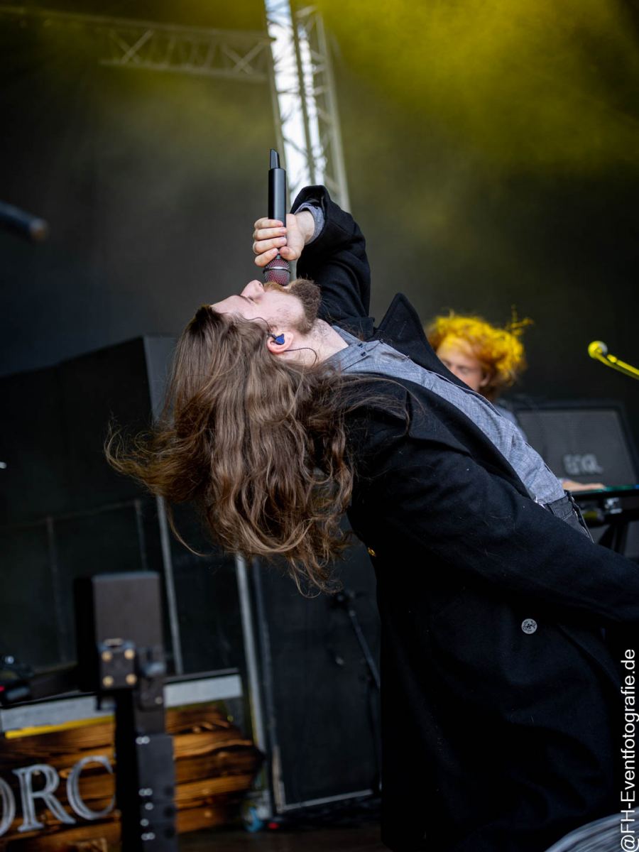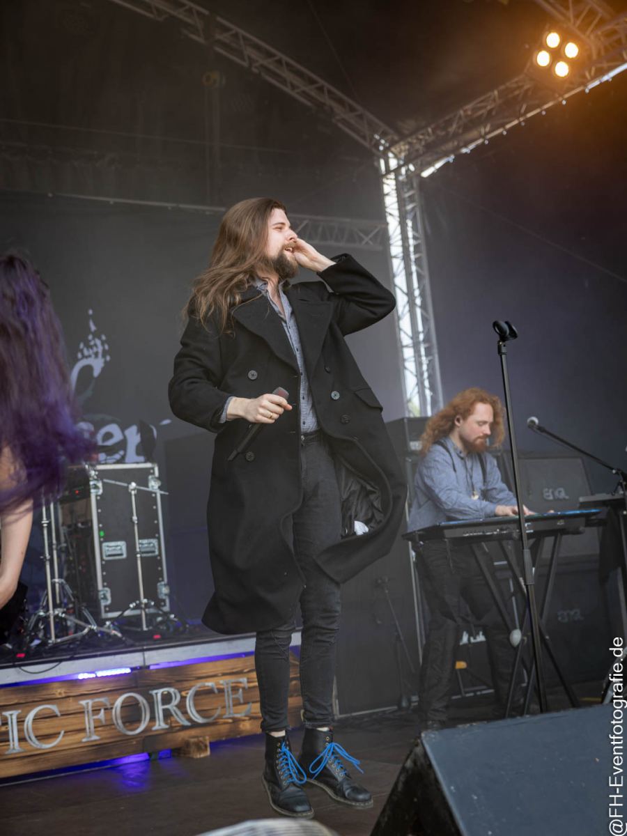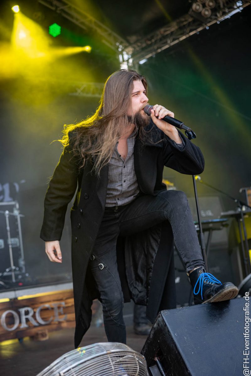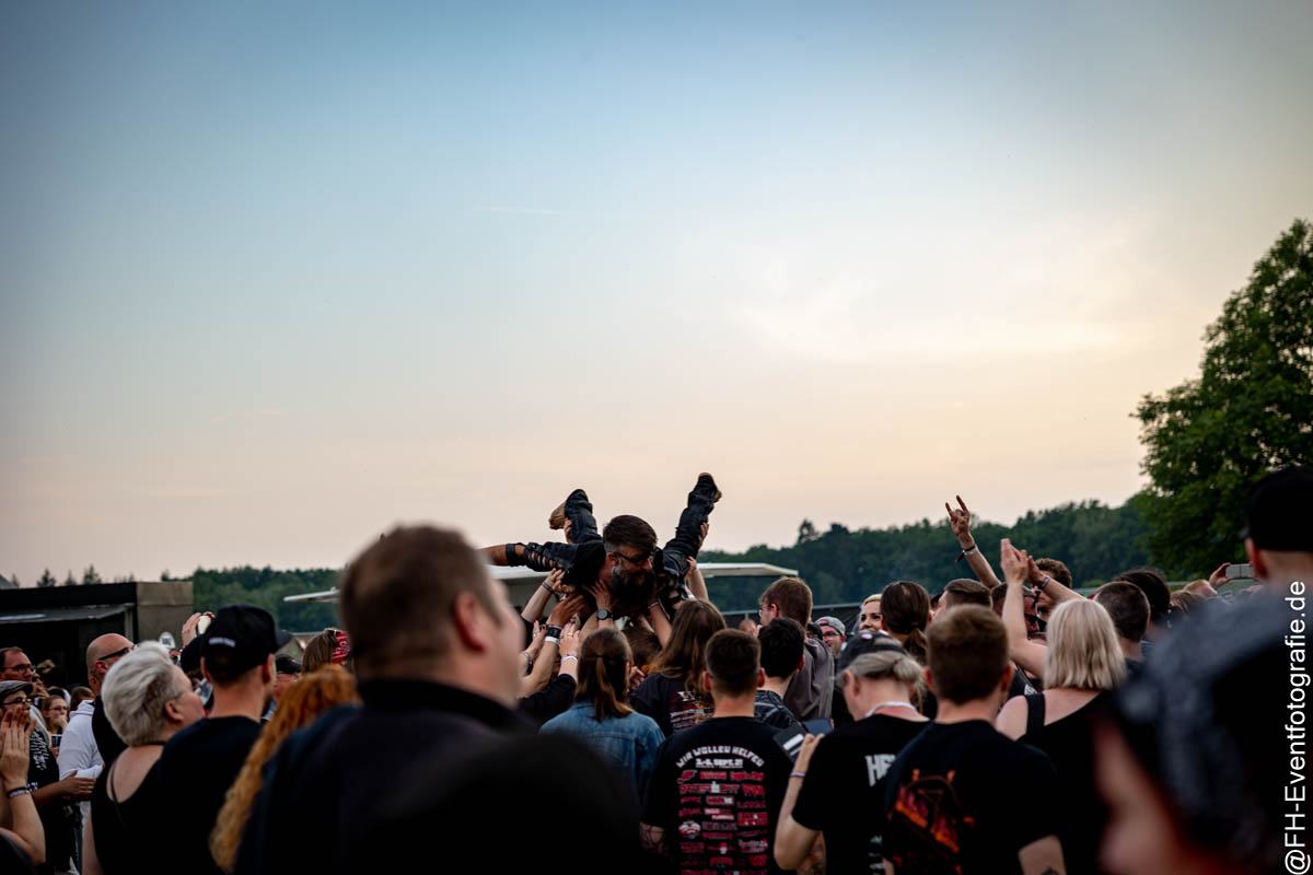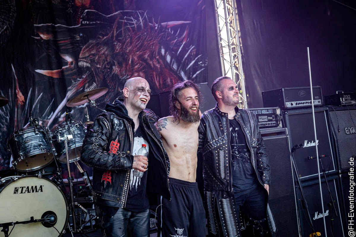 Aus der PA schallen im Wechsel melodische Klänge, dann martialischer Metal unterbrochen von Aufnahmen aus der Kaiserzeit. Ich lese mich verwirrt ob der ganzen Eindrücke erstmal schnell schlauer. Die erinnerlich ihrer konzepttreue ordentlich an Sabaton. Man möge es mir verzeihen. Aber die Jungs haben sich halt den ersten Weltkrieg als Basis ausgesucht und das mit viel Recherche und Aufwand zu ihrer Musik gemacht und ehrlich gesagt machen die da ihren Job echt gut. Die Menge an Fans sehen das sicher genauso, die trotz immer noch Monster Hitze vor die Bühne gestürmt sind und teils echt ausgelassen pogen.