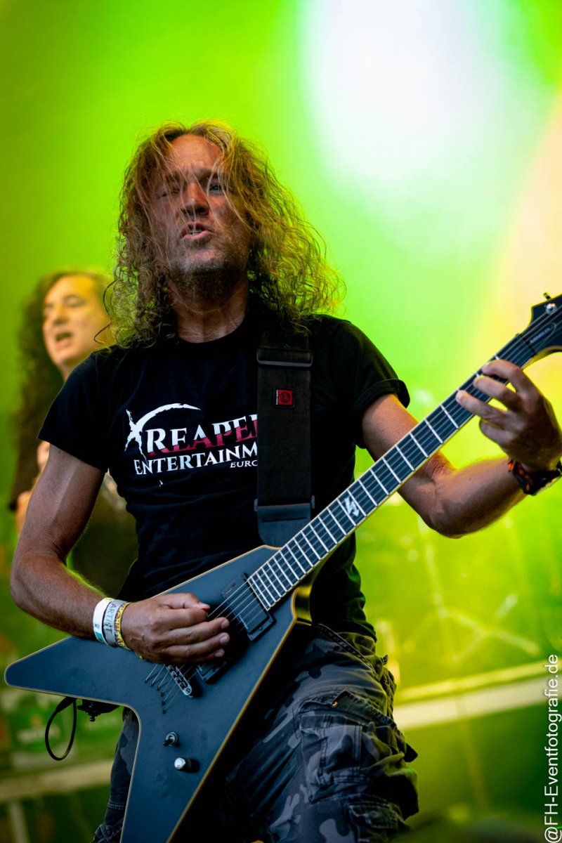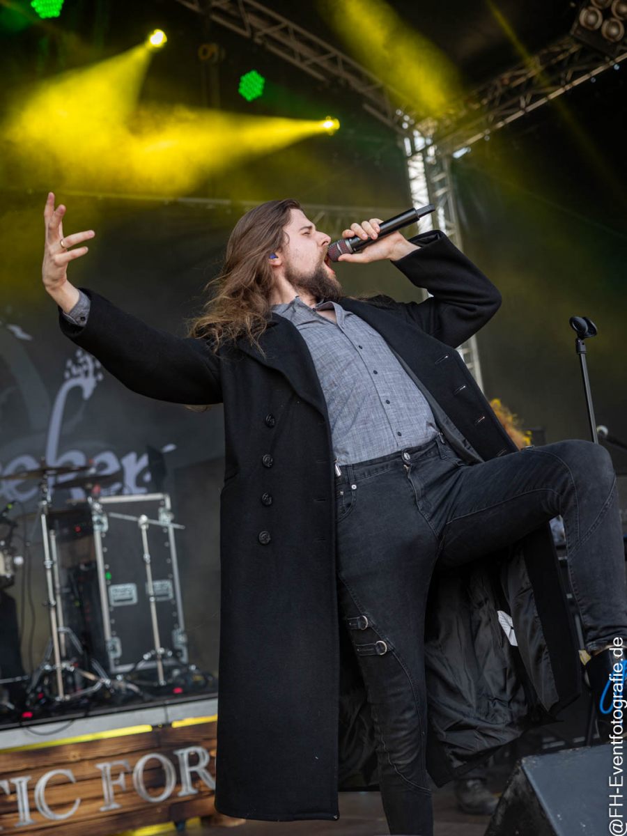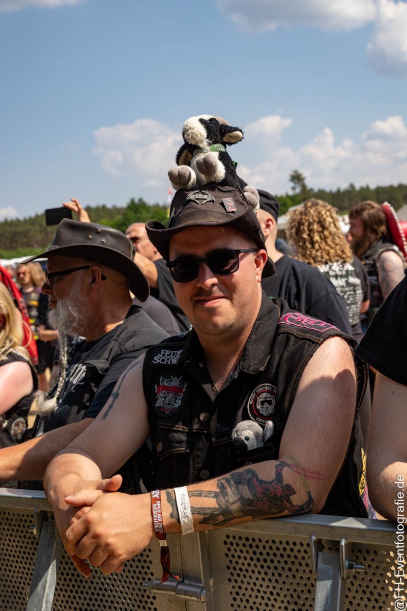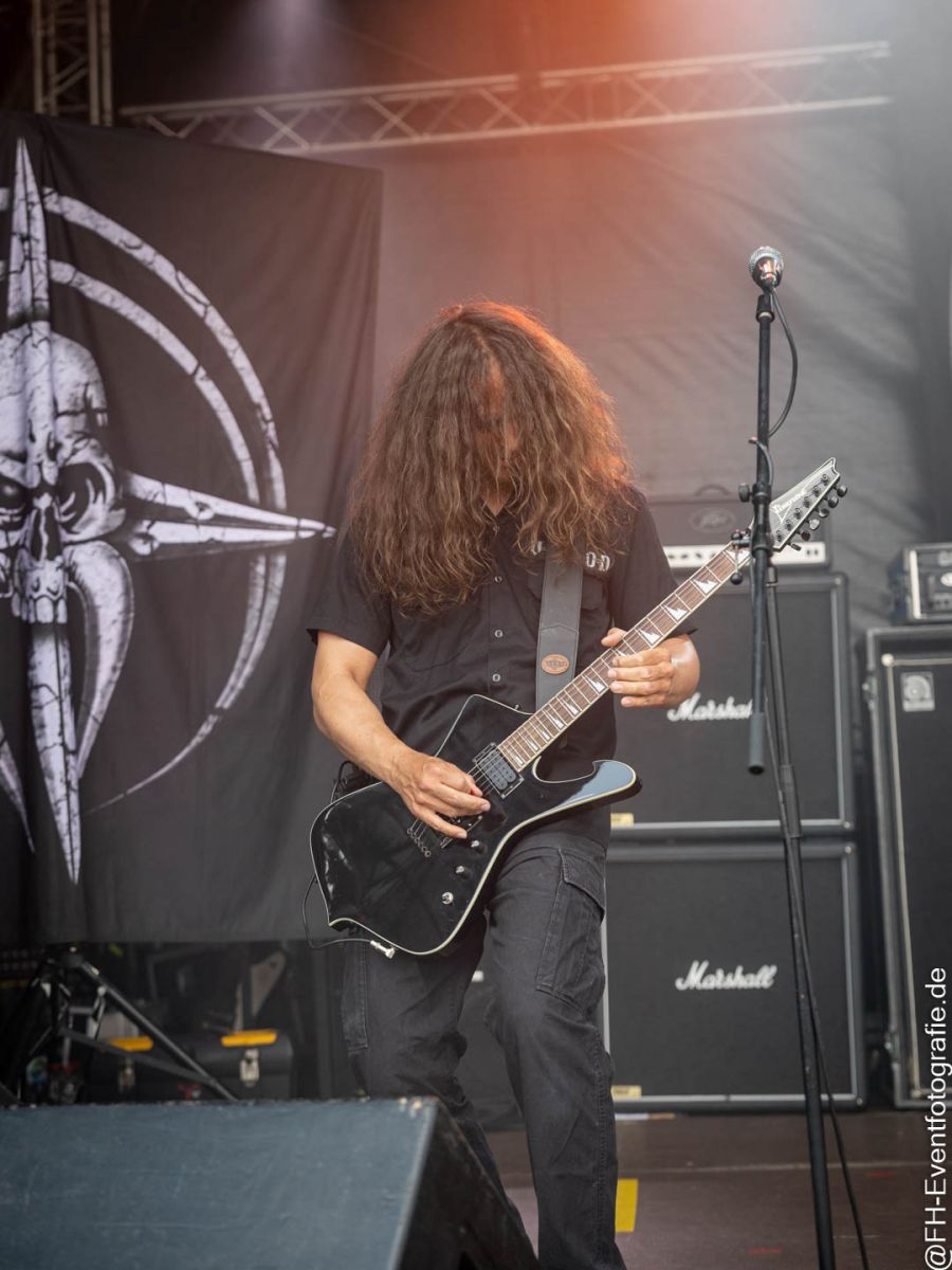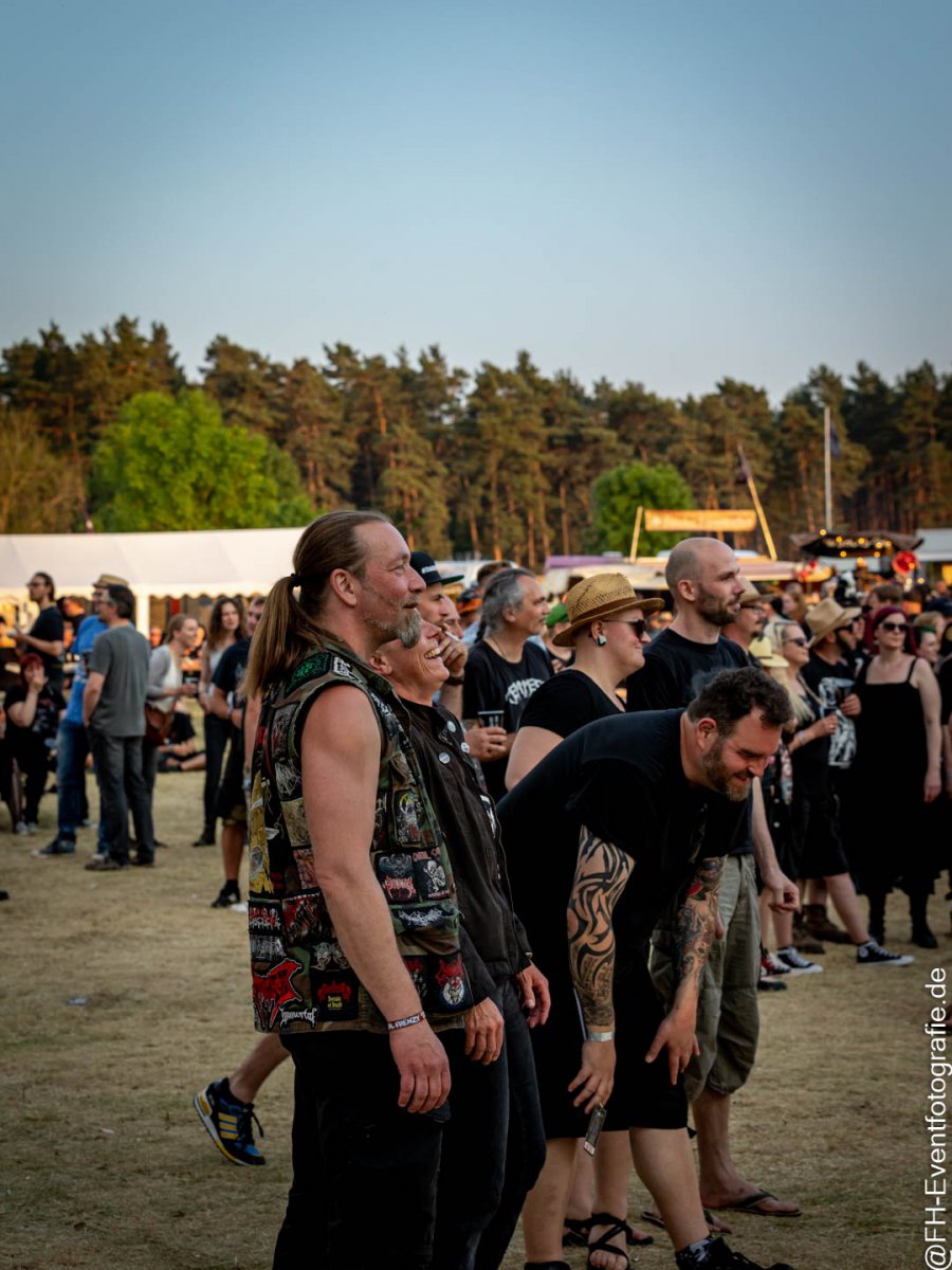 Aus der PA schallen im Wechsel melodische Klänge, dann martialischer Metal unterbrochen von Aufnahmen aus der Kaiserzeit. Ich lese mich verwirrt ob der ganzen Eindrücke erstmal schnell schlauer. Die erinnerlich ihrer konzepttreue ordentlich an Sabaton. Man möge es mir verzeihen. Aber die Jungs haben sich halt den ersten Weltkrieg als Basis ausgesucht und das mit viel Recherche und Aufwand zu ihrer Musik gemacht und ehrlich gesagt machen die da ihren Job echt gut. Die Menge an Fans sehen das sicher genauso, die trotz immer noch Monster Hitze vor die Bühne gestürmt sind und teils echt ausgelassen pogen.