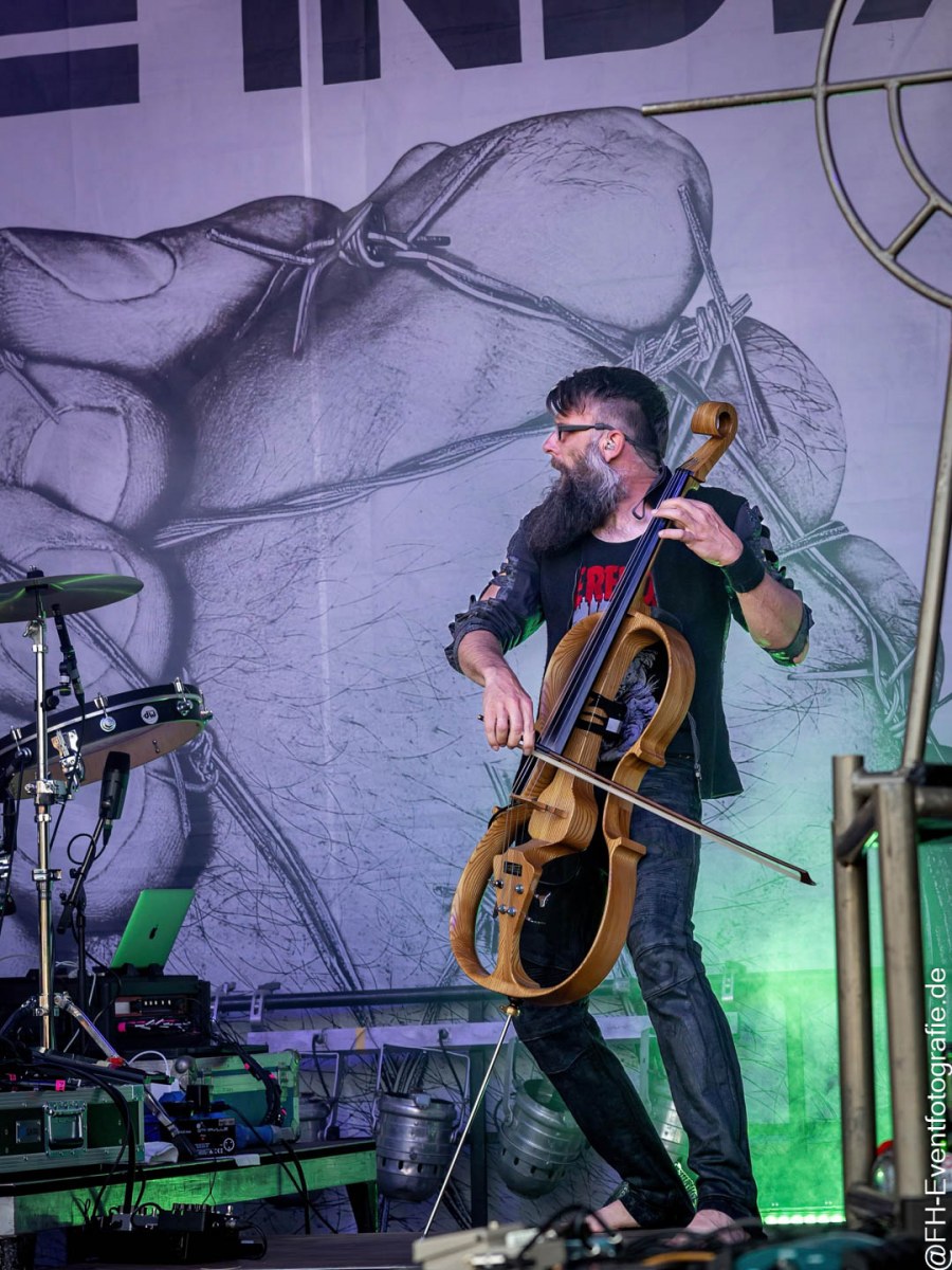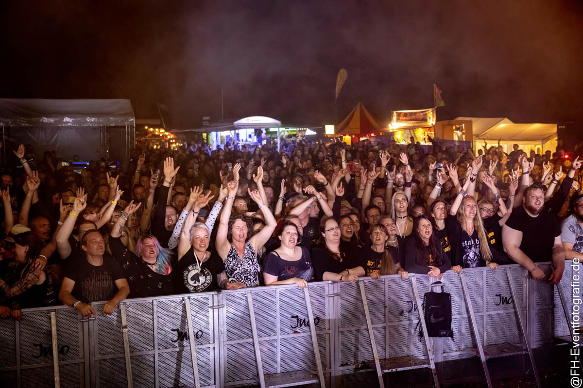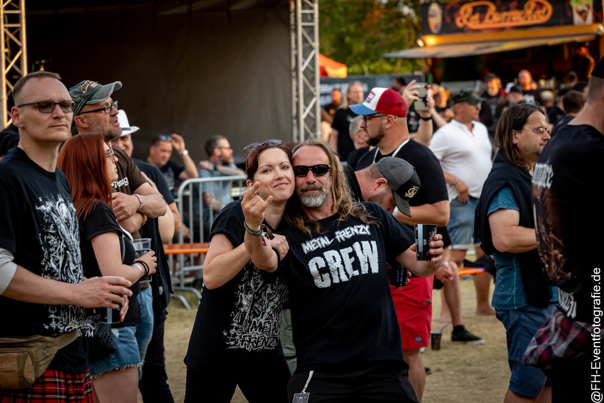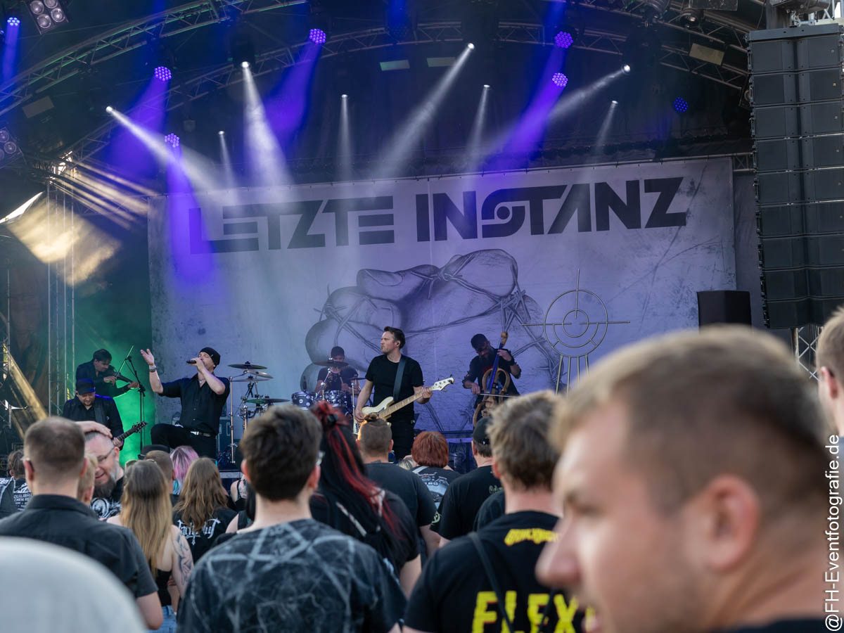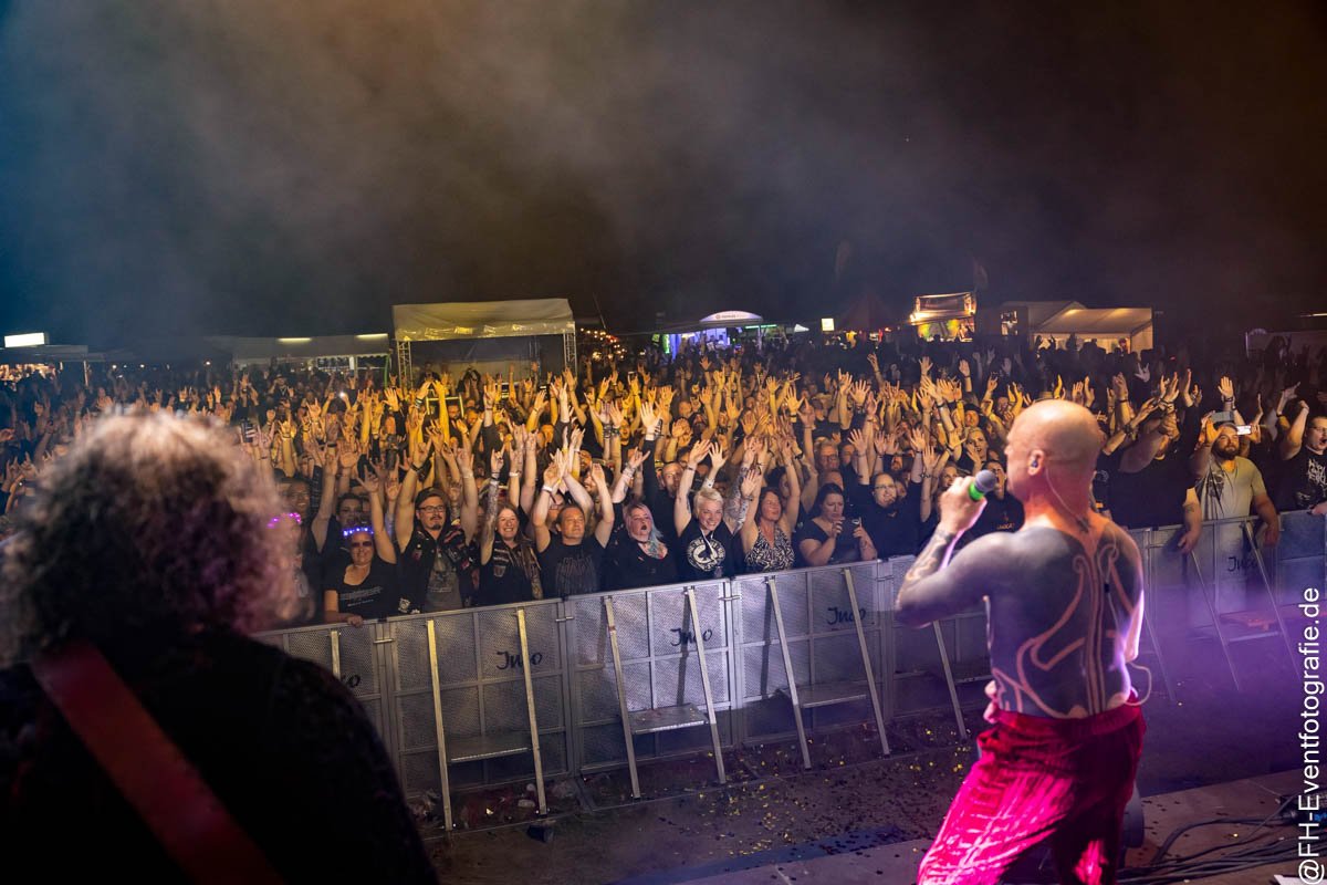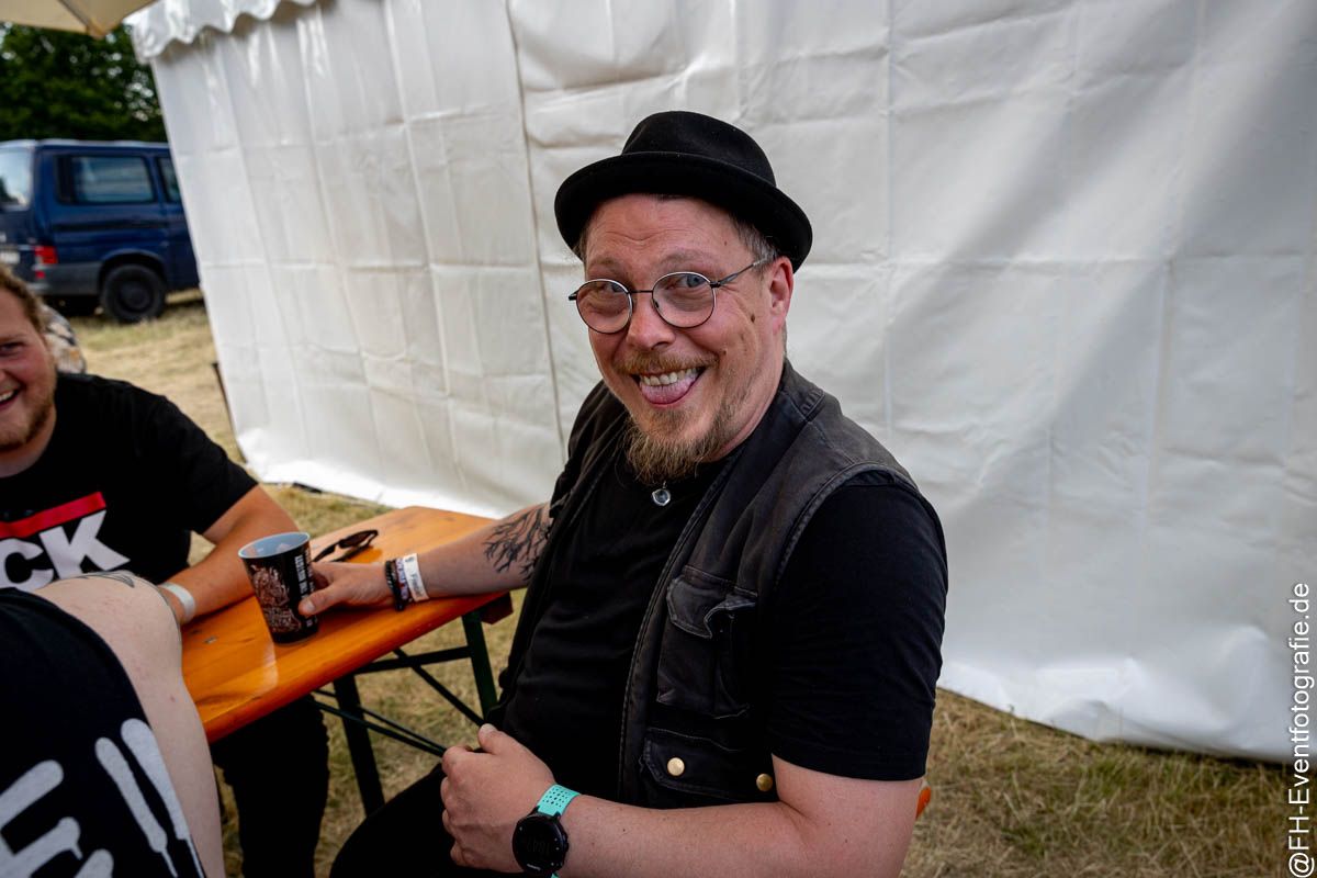 Dieselbe Zeremonie durfte im Anschluss auch die Letzte Instanz erleben. Diese feierten allerdings ihren 25ten Geburtstag. Es war auch diesmal ein toller Break im Frenzy Programm, diese Altmeister des Dark und Violinen Rock zu buchen. Die Letzte Instanz ist und bleibt einfach eine Instanz. Als ich den Herrn Sänger dieser fantastischen Combo später zufällig auf dem Infield traf könnte ich mir ein Hallo und ein kurzes Gespräch einfach nicht verkneifen. Es gibt auch was, was Hoffnung macht. Auf die Frage, ob es als bald die alten Alben auf Vinyl geben könnte, kam ein ja die Bandmitglieder sind fast alle überzeugt. Basisdemokratie ist halt manchmal ein weiter weg, aber es gibt Hoffnung, zumindest eine kleine. Ich für meinen Teil würde sofort zuschlagen.