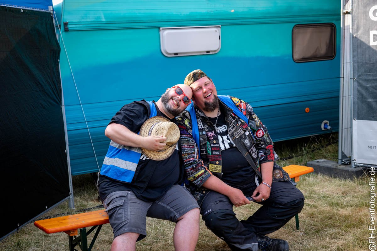 Kinders, Himmel bin ich aus der Übung. Auch wenn es heute nicht so knalle warm im Zelt ist, ist das Aufstehen doch echt eine Herausforderung. Aber der Tag wird sich lohnen, ohne Wenn und Aber. Haben sich bisher alle, also wird das heute auch so ein fantastischer Festivaltag.