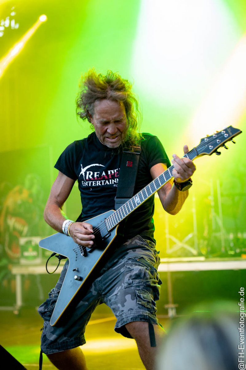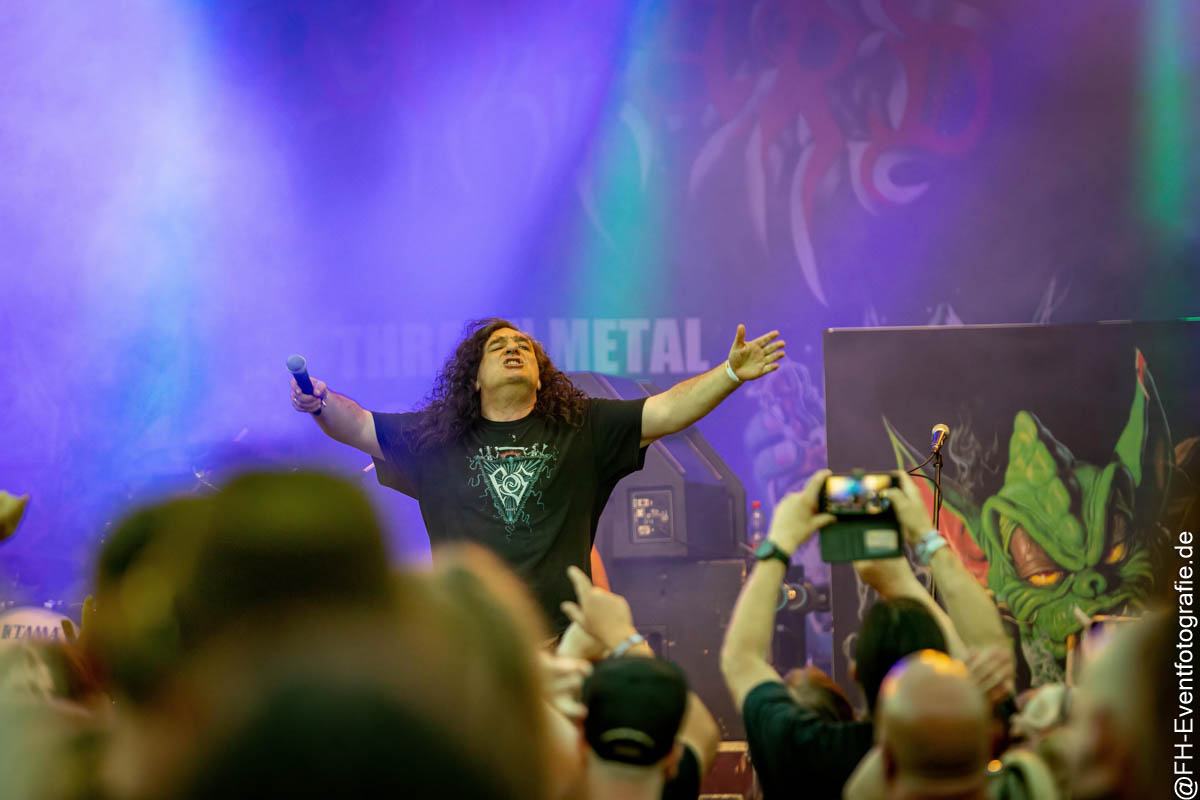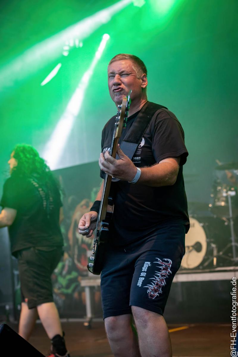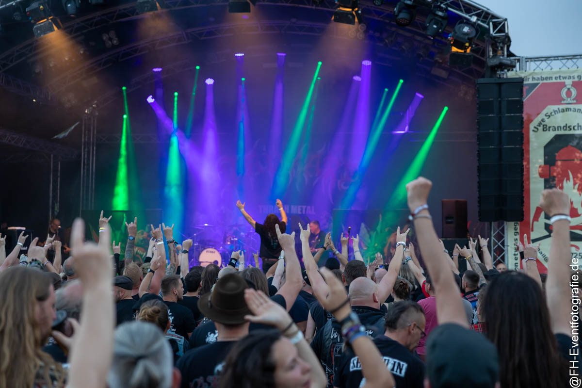 So nun wieder zu den Bands. Den nun wird es genremäßig noch etwas Adeliger. Die Thrasher vorm Herrn, die die mit, wegen und wegen des Biers ihre Musik machen und so legendär sind, stehen auf der Bühne. TANKARD ist da und sie sind einfach das, was sie sind und schon immer wahren. Einfach geil zum Feiern. Lassen wir Mal schauen, wann die Biervorräte zur Neige gehen.