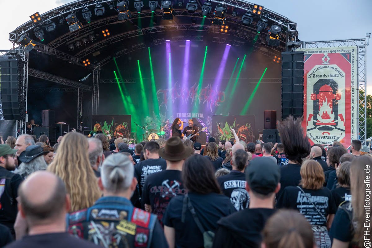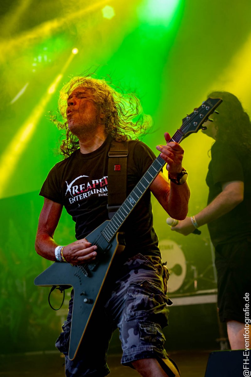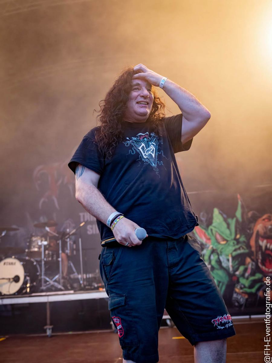 So nun wieder zu den Bands. Den nun wird es genremäßig noch etwas Adeliger. Die Thrasher vorm Herrn, die die mit, wegen und wegen des Biers ihre Musik machen und so legendär sind, stehen auf der Bühne. TANKARD ist da und sie sind einfach das, was sie sind und schon immer wahren. Einfach geil zum Feiern. Lassen wir Mal schauen, wann die Biervorräte zur Neige gehen.