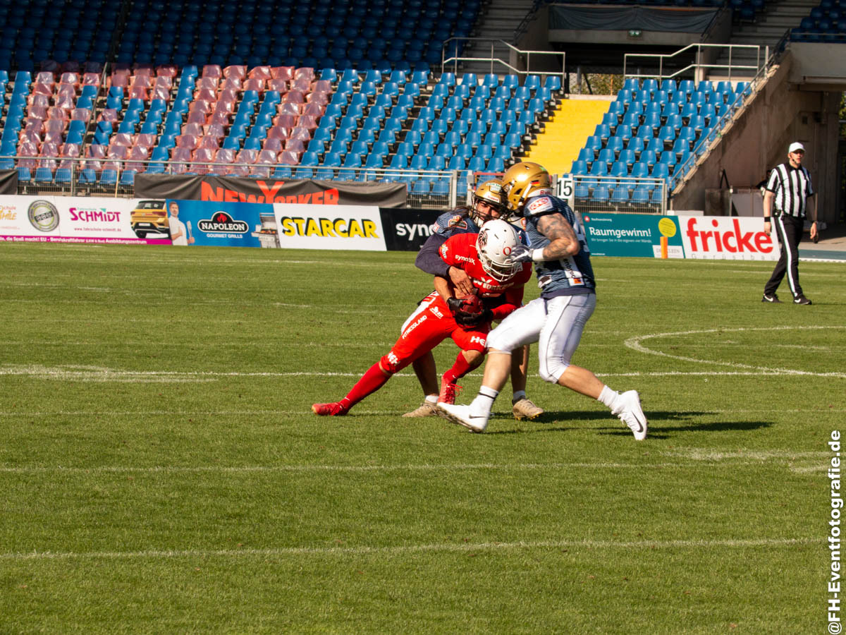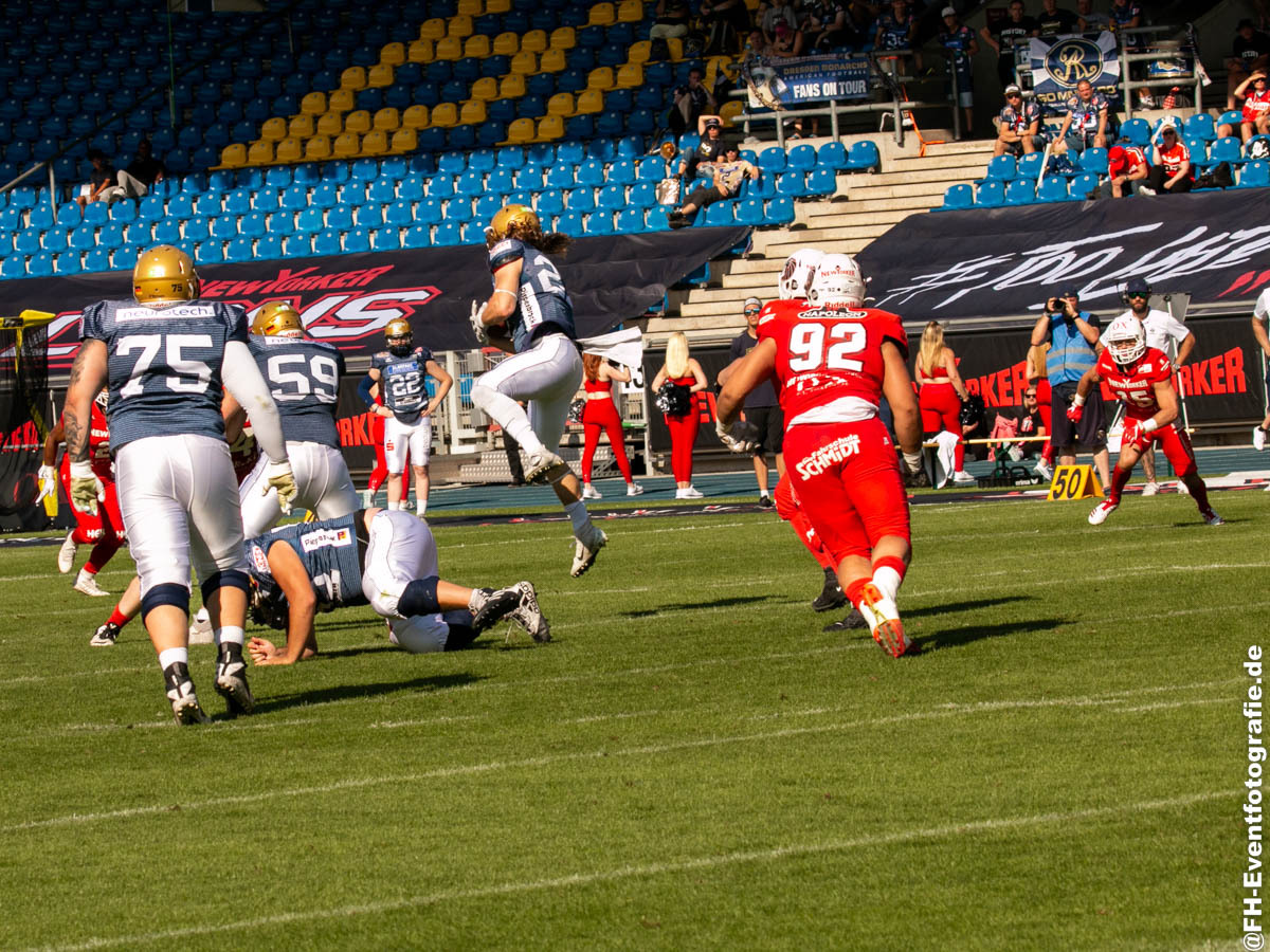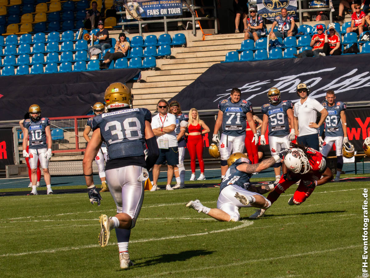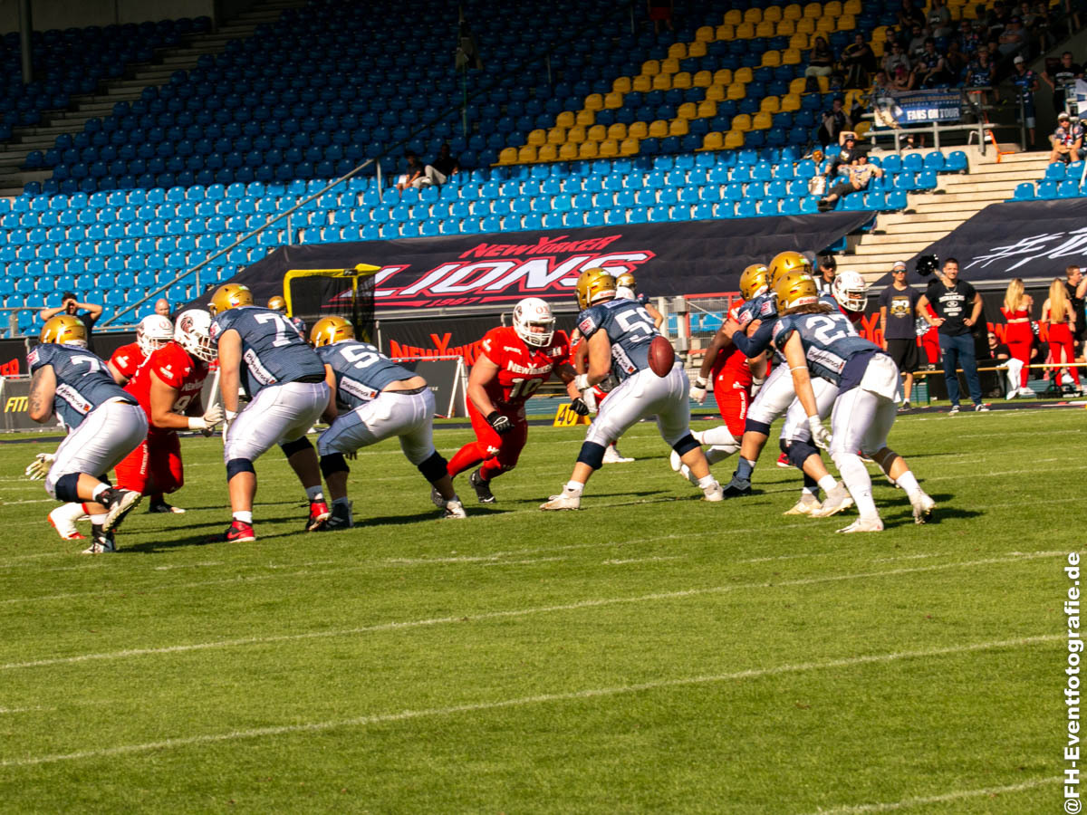 Die New Yorker Lions gewinnen im letzten Heimspiel vor den PlayOffs mit 31:20 gegen den amtierenden Deutschen Meistern den Dresden Monarchs.