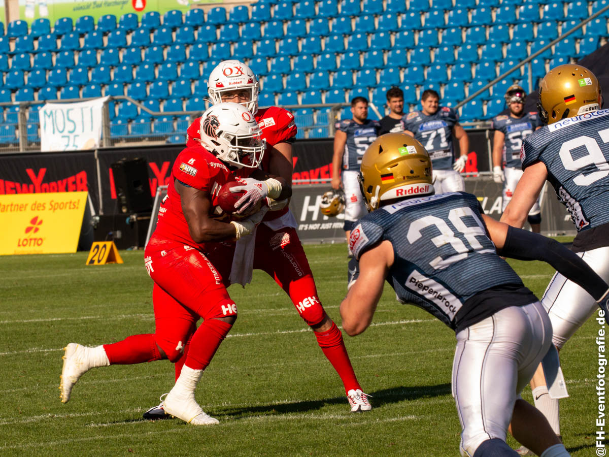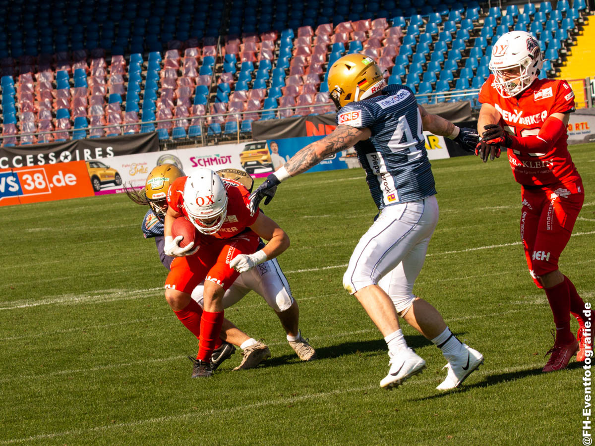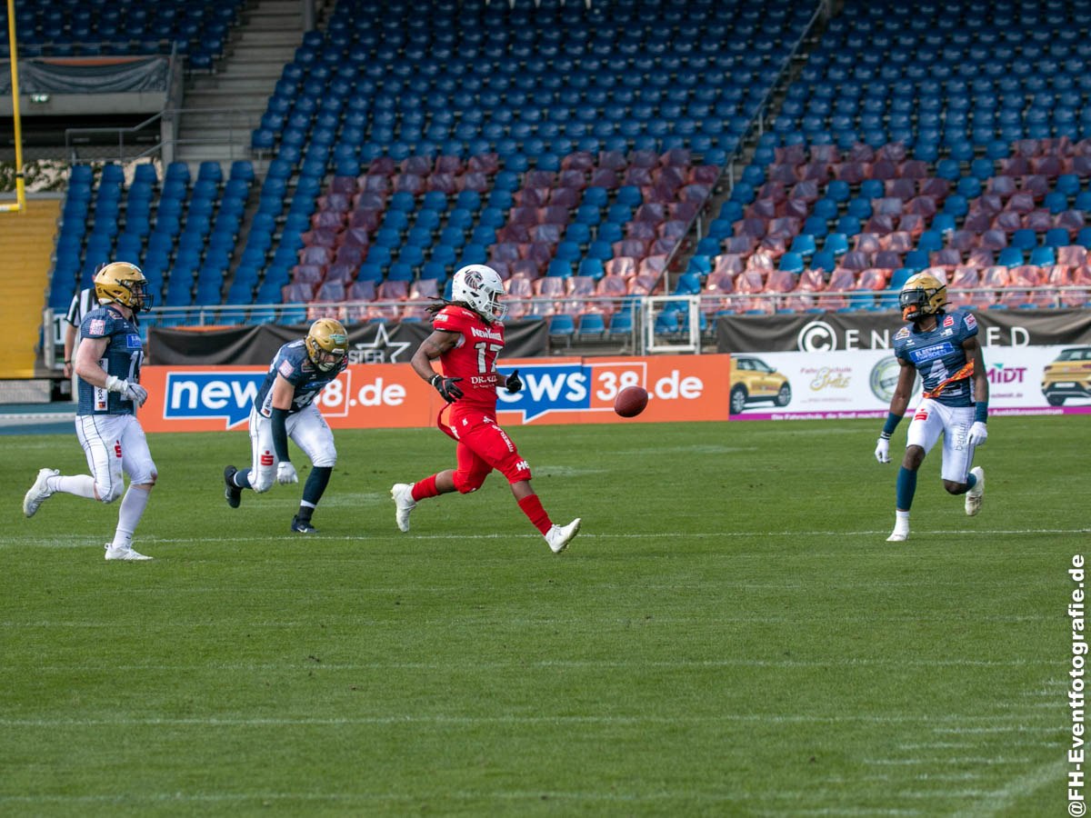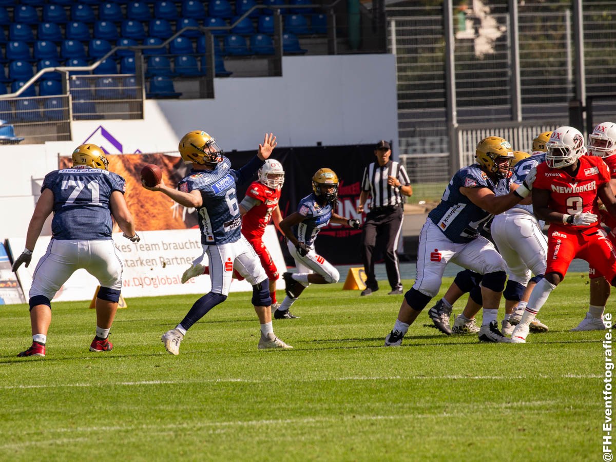 Die New Yorker Lions gewinnen im letzten Heimspiel vor den PlayOffs mit 31:20 gegen den amtierenden Deutschen Meistern den Dresden Monarchs.