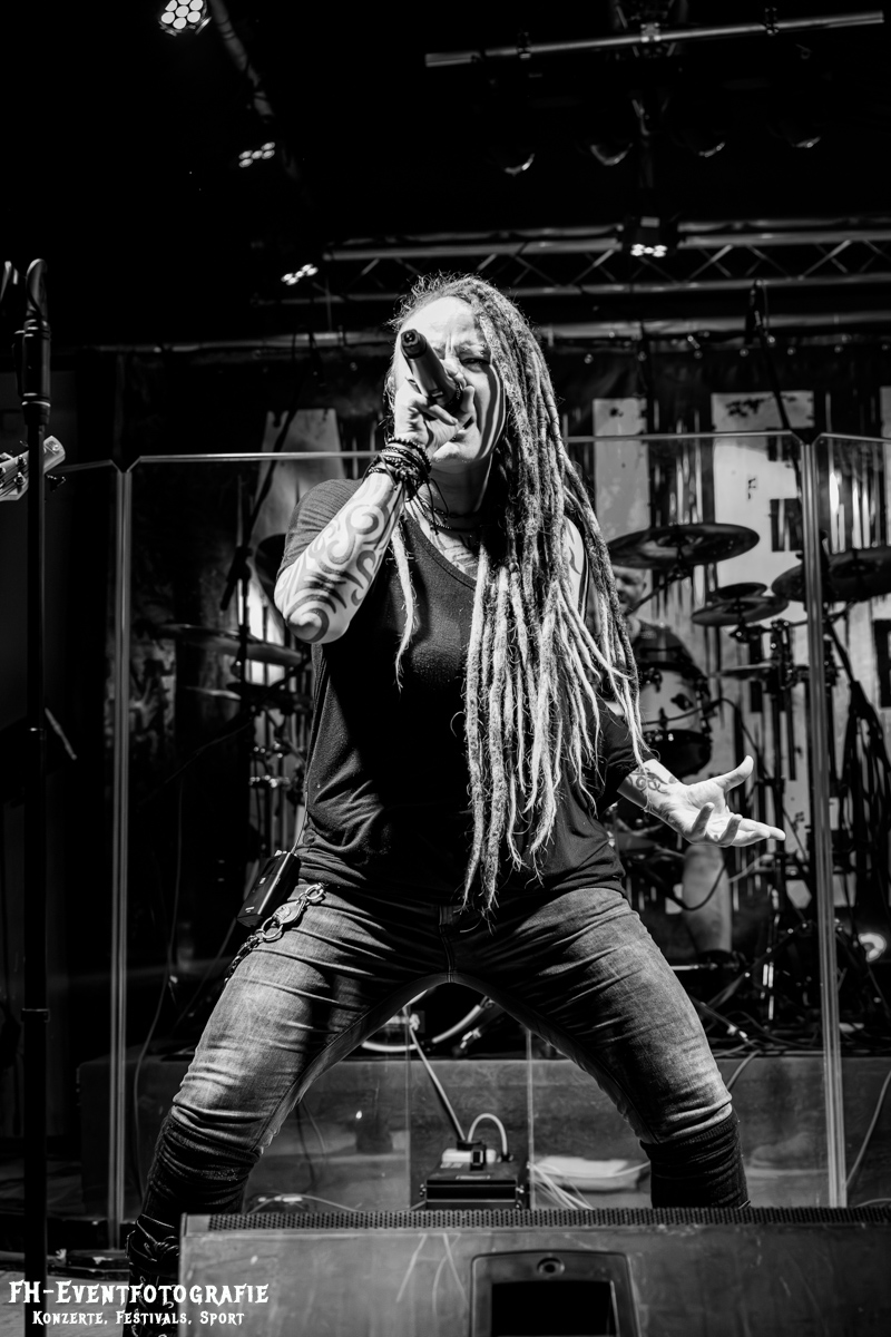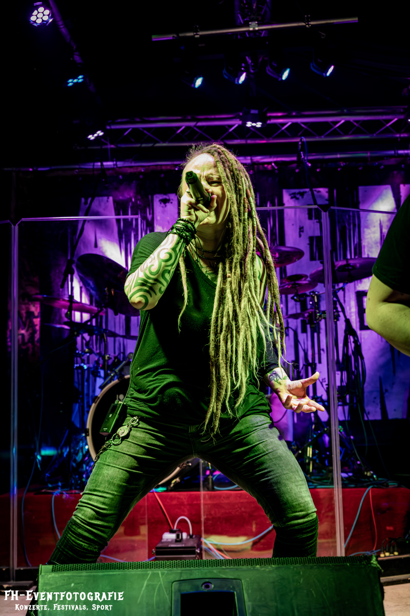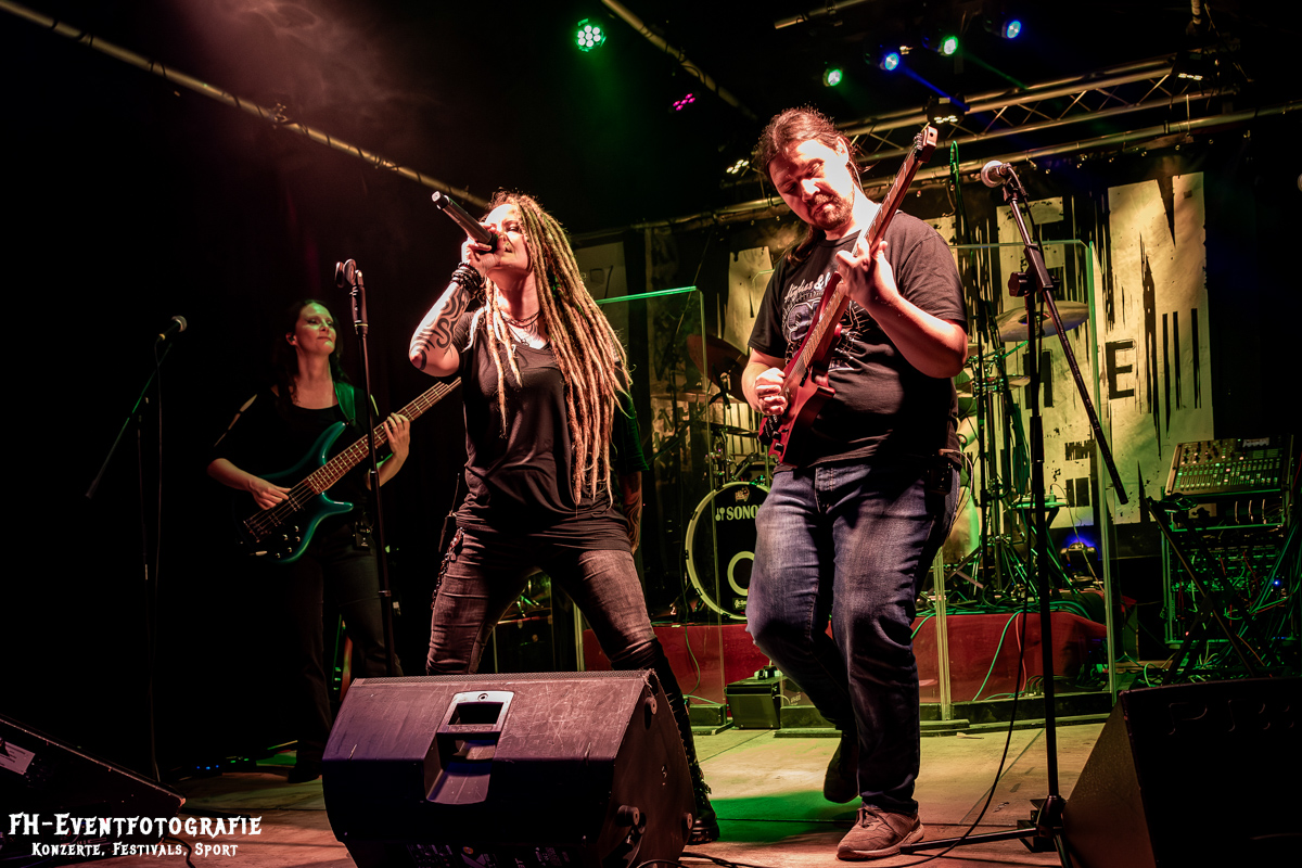 Den zweiten Streich des Abends gaben Vertreter aus Hannover. Technisch eine eigene Welt. Normalerweise sind fünf Seiten am Bass schon eher normal, aber Gitarren mit acht Seiten habe ich bis dato noch nicht erlebt. Bei »Alien to the System« gab es davon gleich zwei. Dazu die besagte Bassgitarre und ein Schlagzeug. Mehr hätte auch wirklich nicht auf die Bühne gepasst. Musikalisch ein Brett mit deutschen Texten, die allesamt ein düsteres, dystopisches Bild der Welt einfingen. Absolut empfehlenswert! Und das aus dem Munde eines Braunschweigers. Man könnte auch sagen, »Alien to the System« sind eine musikalisch wertvollere Version von Bands wie Ramstein.