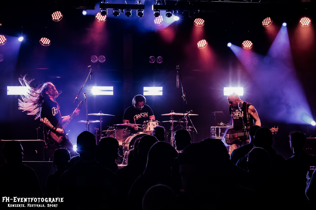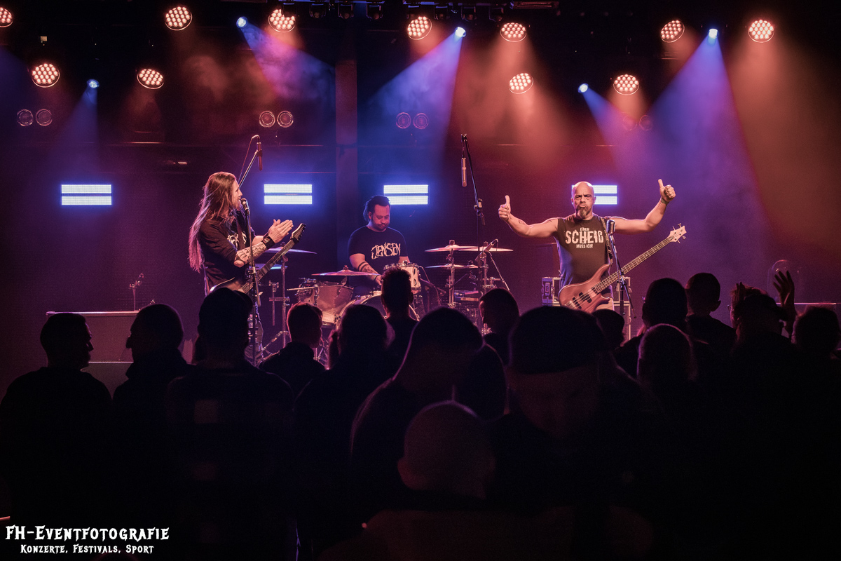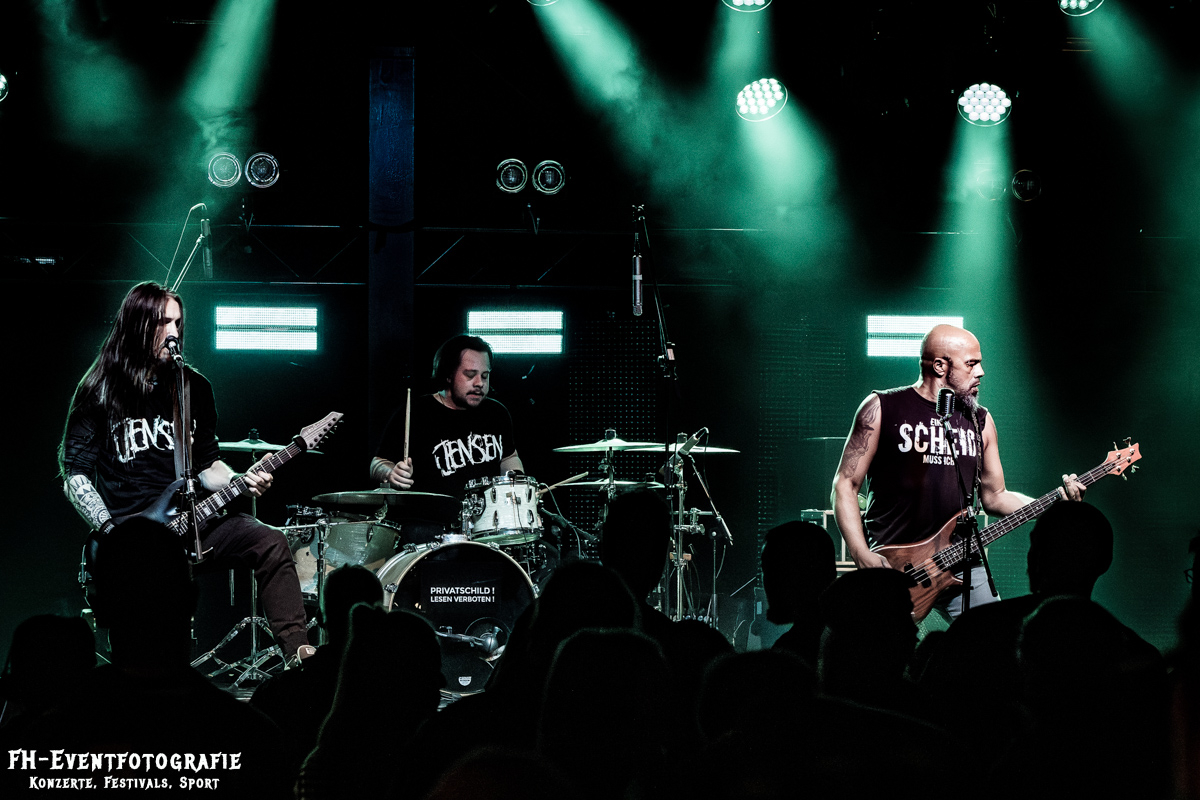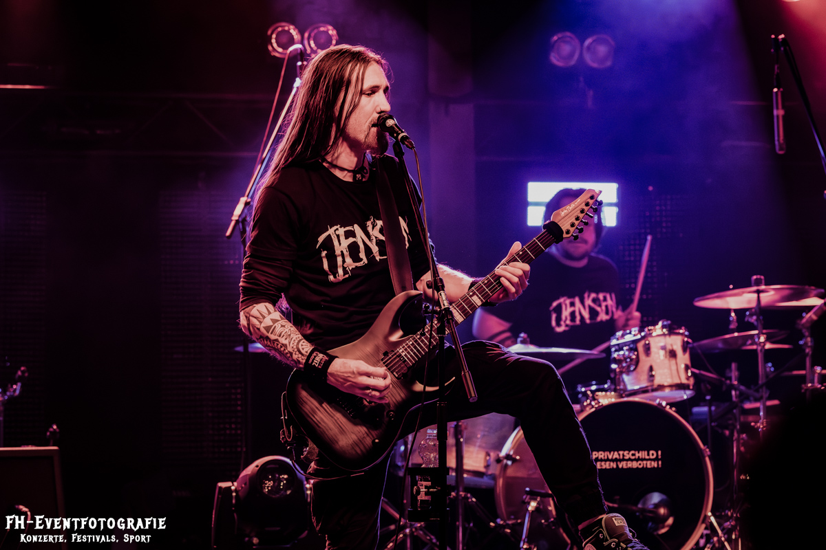 Den Anschluss gaben die Hutziehen auslösenden »Jensen«. Ja, ich habe auch ab und an die Bühne neben meiner lieben Mitstreiterin Suzen Berlin betreten. Das ein oder andere gesagt oder gefragt. Auch Bier auf oder an die Bühne gebracht. Aber bei dem Auftritt von »Jensen« bewies ich erstens zum wiederholten Male am Abend, dass meine Geografiekenntnisse wirklich sehr ausbaufähig sind und dass mich Musik wirklich in den Bann ziehen kann. Und ich dann sogar mal stillstehen bleiben kann und einfach nur zuhöre und genieße. Sie spielten eine interessante Art von Metal. Alles unterlegt und bebildert mit deutschen Texten. Ein Gesang, wie ein zusätzliches Instrument. Einfach nur zu empfehlen. Wer Metal im Blut hat und Lyrik mit Druck bevorzugt, wird bei »Jensen« sehr glücklich werden.