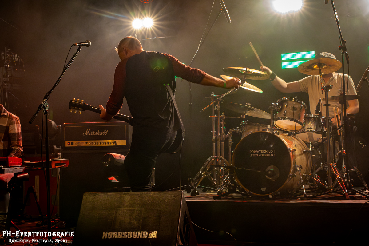 Den dritten Slot hatten »Keine Lösung« inne. Altmeister, einfach Altmeister. Natürlich ist da niemand alt in dieser Band. Es hatte auch niemand mal lange Haare. Alles infame Unterstellungen. Aber eine Unterstellung unterschreibe ich, ihr Power-Rock ist einfach immer eine Lösung für steife Beine und hervorragend gegen Langeweile. In deren Fall ist »Keine Lösung« eine Lösung und ein Song. Entschuldigt bitte, ihr lieben Menschen der Band, aber diesen Satz werde ich immer mal wieder nutzen müssen. Wohl wissend, dass der Urheber dieses Satzes in euren Annalen der Bandgeschichte sicher nicht mehr auszumachen sein wird. Demnächst spielen die Jungs auch ein Akustikset. Das könnte reichlich interessant werden. Und da eine recht professionelle Kamera über die Bühne bewegt wurde, kann ich mir sehr gut vorstellen, dass es da als bald auch Videomaterial von dieser »Legende« geben wird.