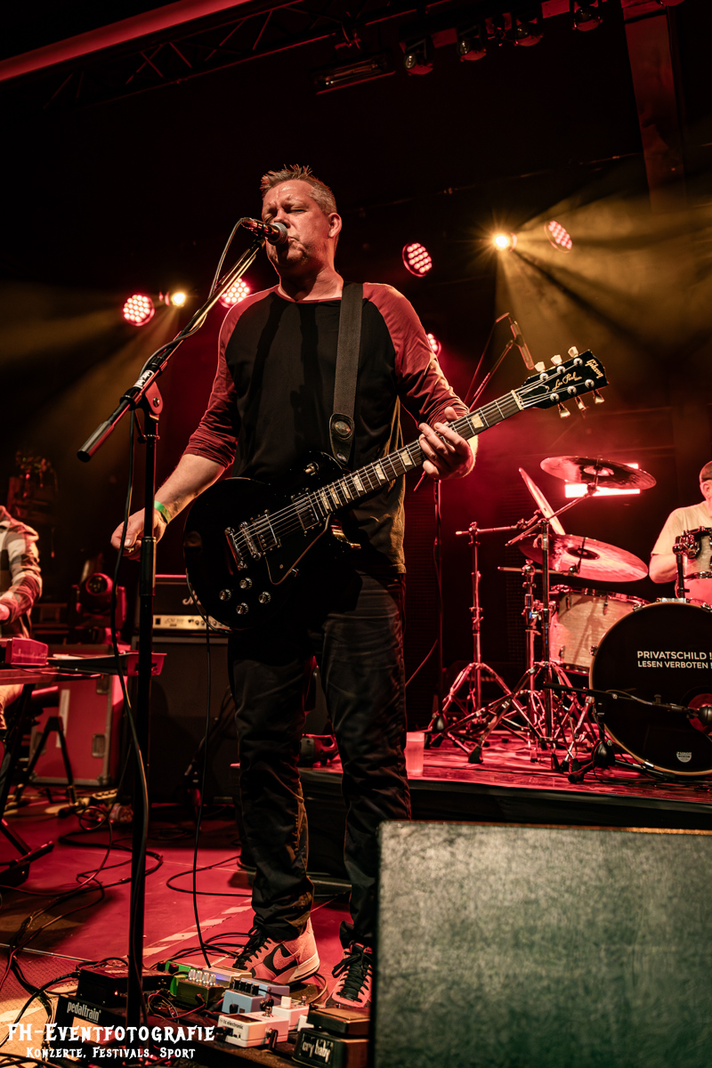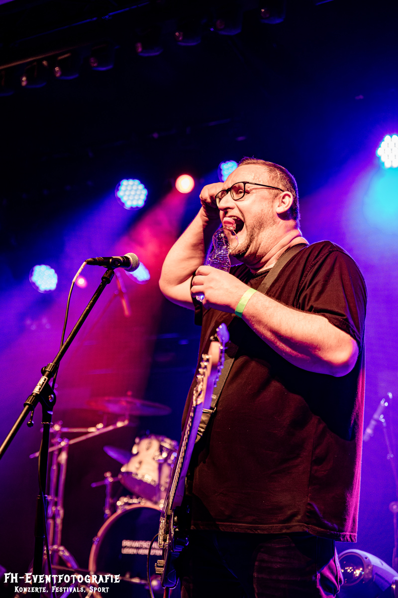 Den dritten Slot hatten »Keine Lösung« inne. Altmeister, einfach Altmeister. Natürlich ist da niemand alt in dieser Band. Es hatte auch niemand mal lange Haare. Alles infame Unterstellungen. Aber eine Unterstellung unterschreibe ich, ihr Power-Rock ist einfach immer eine Lösung für steife Beine und hervorragend gegen Langeweile. In deren Fall ist »Keine Lösung« eine Lösung und ein Song. Entschuldigt bitte, ihr lieben Menschen der Band, aber diesen Satz werde ich immer mal wieder nutzen müssen. Wohl wissend, dass der Urheber dieses Satzes in euren Annalen der Bandgeschichte sicher nicht mehr auszumachen sein wird. Demnächst spielen die Jungs auch ein Akustikset. Das könnte reichlich interessant werden. Und da eine recht professionelle Kamera über die Bühne bewegt wurde, kann ich mir sehr gut vorstellen, dass es da als bald auch Videomaterial von dieser »Legende« geben wird.