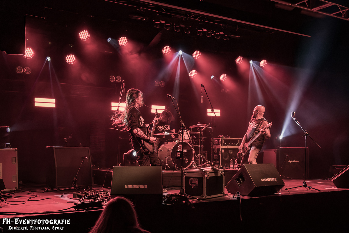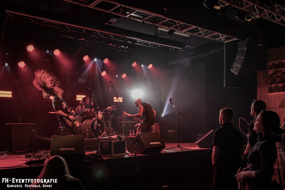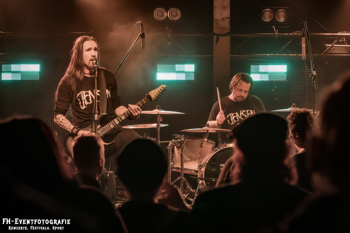 Den Anschluss gaben die Hutziehen auslösenden »Jensen«. Ja, ich habe auch ab und an die Bühne neben meiner lieben Mitstreiterin Suzen Berlin betreten. Das ein oder andere gesagt oder gefragt. Auch Bier auf oder an die Bühne gebracht. Aber bei dem Auftritt von »Jensen« bewies ich erstens zum wiederholten Male am Abend, dass meine Geografiekenntnisse wirklich sehr ausbaufähig sind und dass mich Musik wirklich in den Bann ziehen kann. Und ich dann sogar mal stillstehen bleiben kann und einfach nur zuhöre und genieße. Sie spielten eine interessante Art von Metal. Alles unterlegt und bebildert mit deutschen Texten. Ein Gesang, wie ein zusätzliches Instrument. Einfach nur zu empfehlen. Wer Metal im Blut hat und Lyrik mit Druck bevorzugt, wird bei »Jensen« sehr glücklich werden.