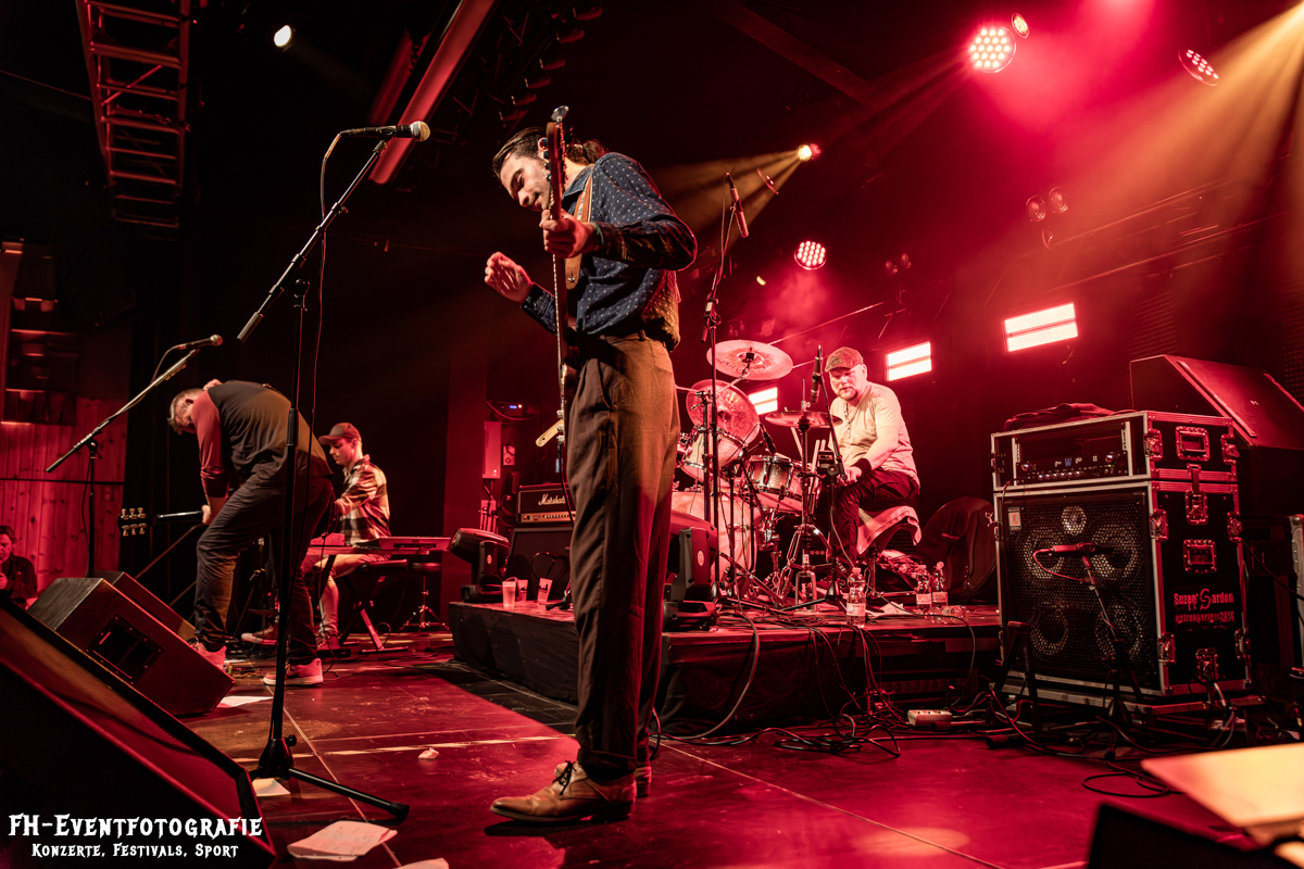Den Anfang machten »Airtide«. Wer deren Musik noch nie gehört hat, wird ziemlich sicher die ersten Klänge über eher etwas ratlos vor der Bühne stehen. Die Füße wippen und die Synapsen arbeiten auf Hochtouren, um das Dargebotene in Einklang zu bringen. Zum Glück schaltet das Gehirn irgendwann von allein auf Genießermodus. Diese wilde Mischung an Klängen und Show war was Unerwartetes. Was sehr Gutes und was sehr Empfehlenswertes. Diese Mischung aus Psychedelic und Funk ist schwierig zu greifen. Wer aber einen Fabel für solche Experimente hat, ist bei den Herren sehr, sehr gut aufgehoben