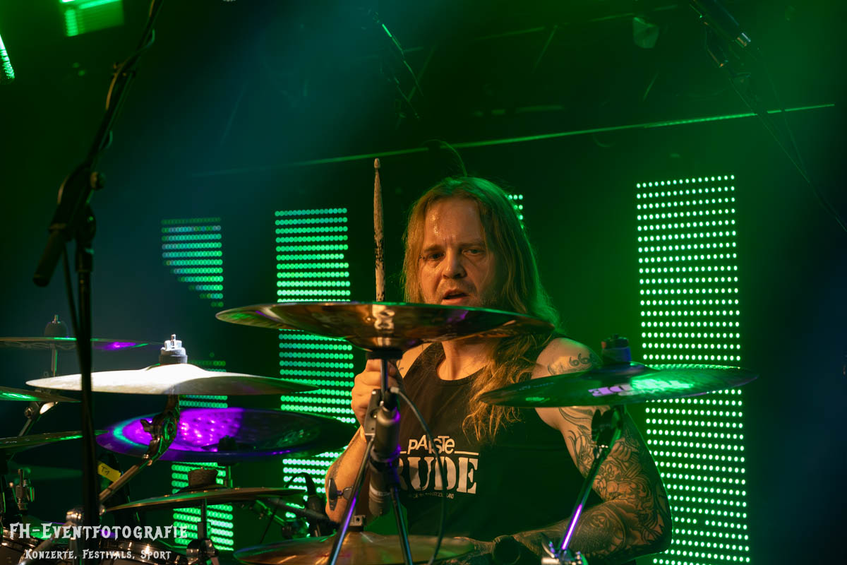 Weiter ging es mit Thrash Metal aus dem hohen Norden: Extinct standen zum ersten Mal auf der Bühne im Nordsound Showroom und hatten das Publikum nach kurzer Zeit fest im Griff. Bislang war es die Band mit der weitesten Anreise – gemerkt hat man davon allerdings nichts. Energie und Action bestimmten die Show von Anfang bis Ende!