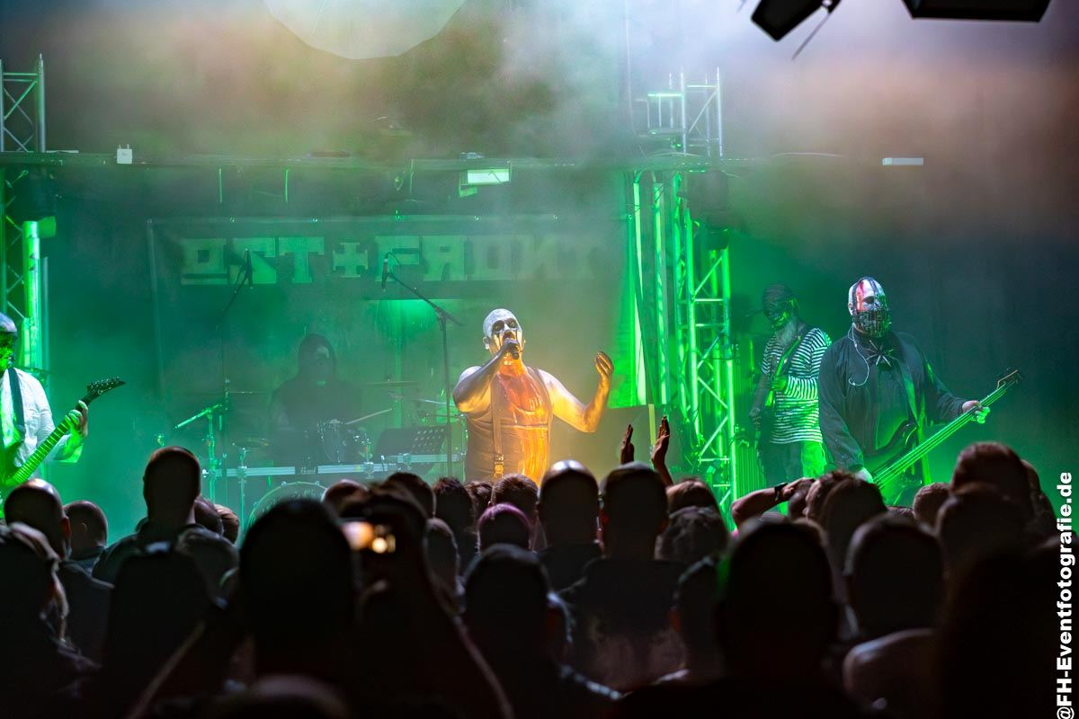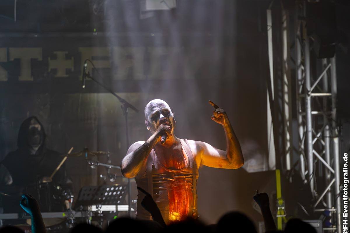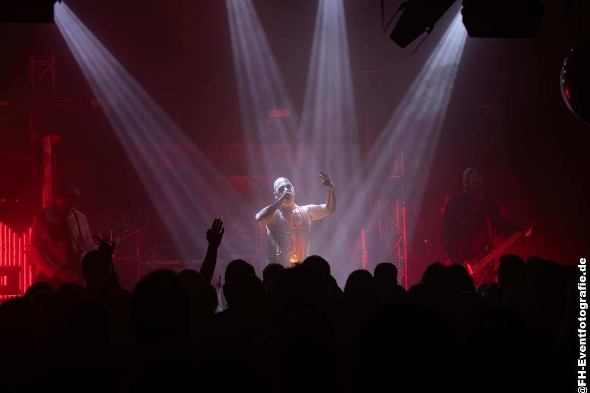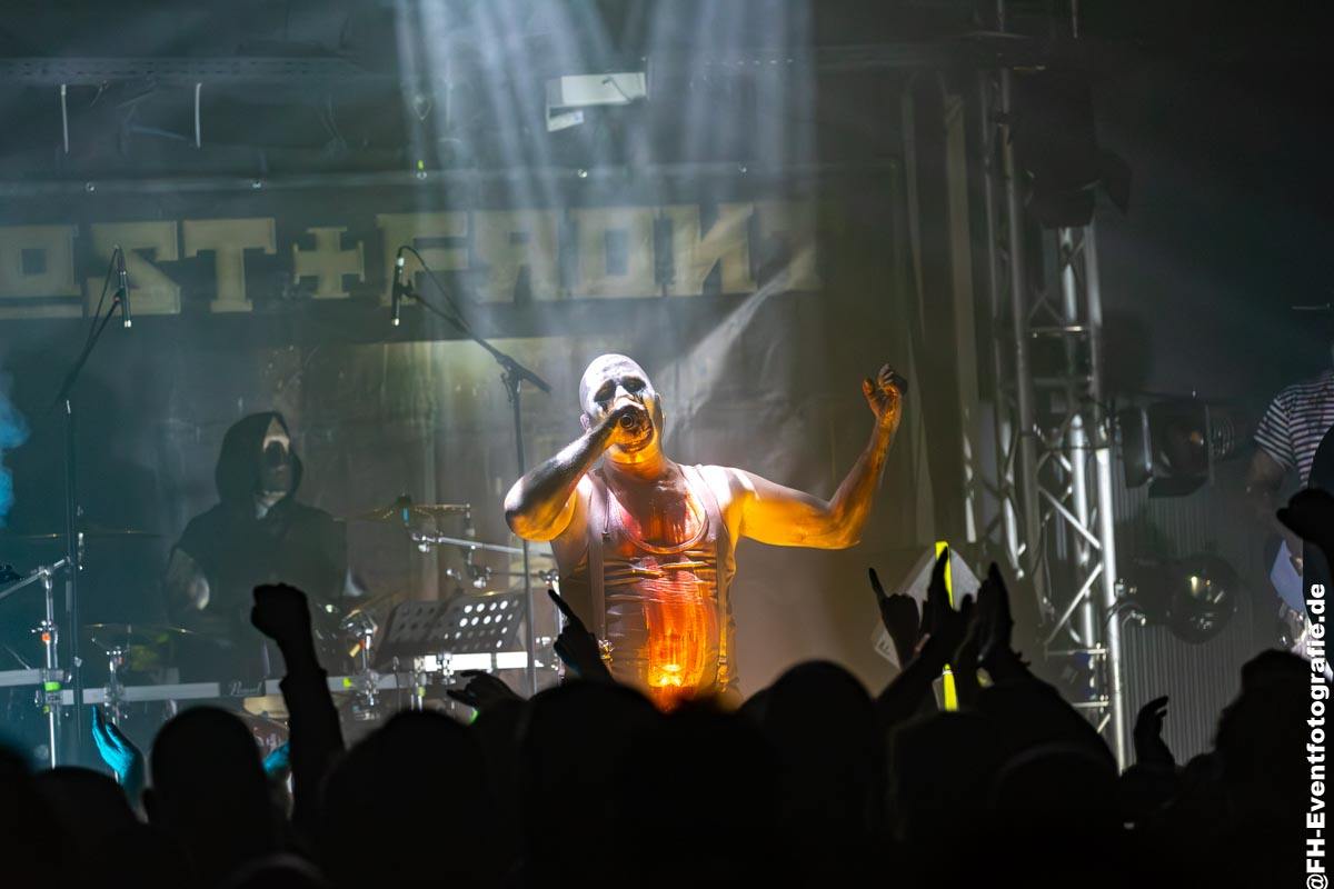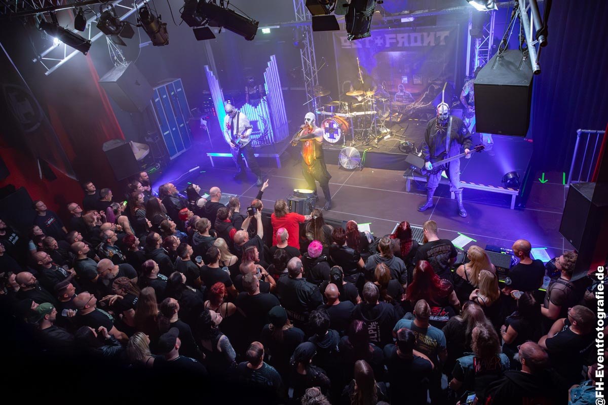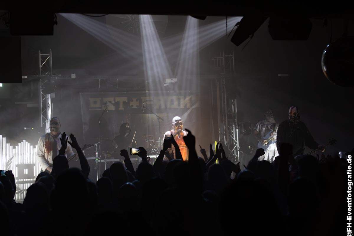 Nach einer kurzen Pause betrat die Hauptattraktion des Abends, Ost+Front, die Bühne. Die Band, die für ihre provokanten Texte und ihre kraftvolle Live-Show bekannt ist, enttäuschte nicht. Mit einer Mischung aus Neue Deutsche Härte und Industrial-Metal fesselten sie das Publikum. Die Performance war geprägt von intensiver Energie und einer beeindruckenden Lichtshow. Die Band spielte einige ihrer bekanntesten Hits, darunter „Sternenkinder“ und „Fleisch.“