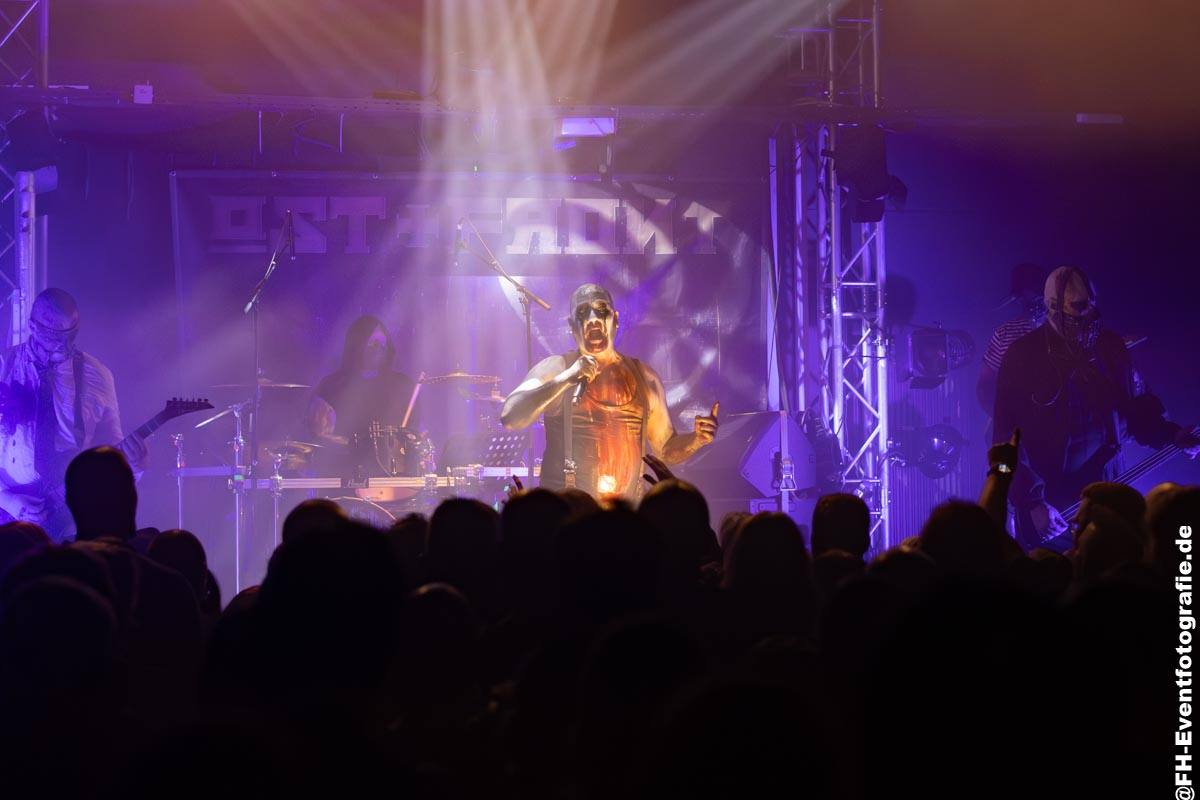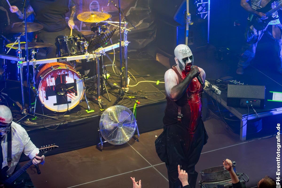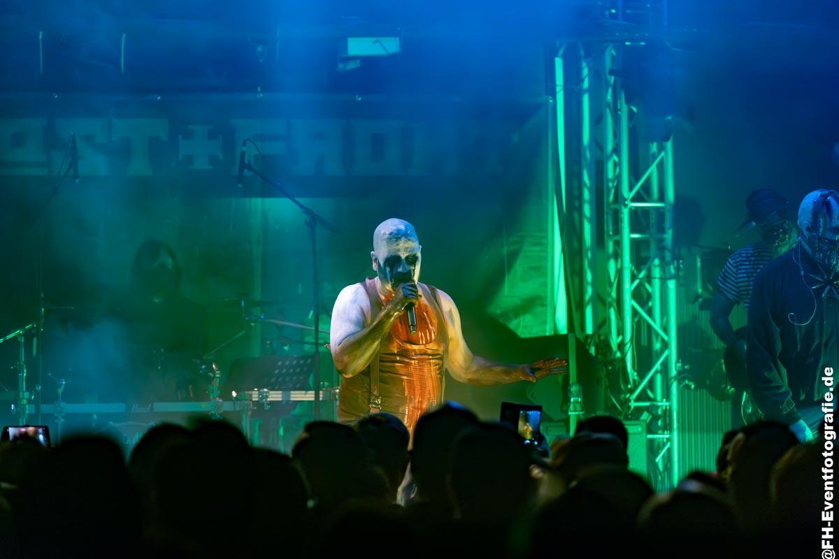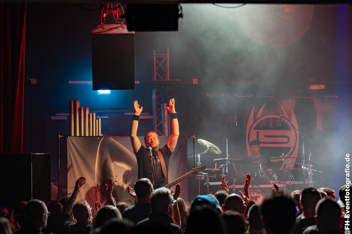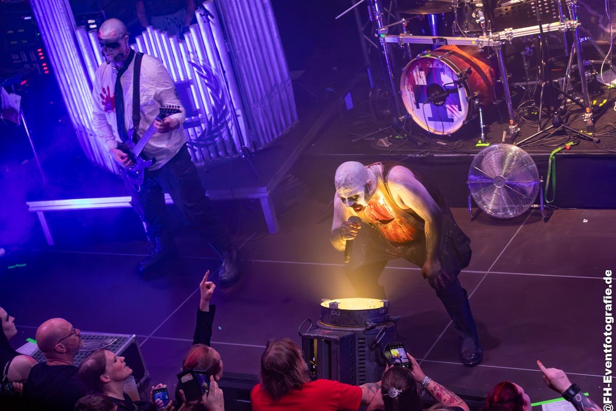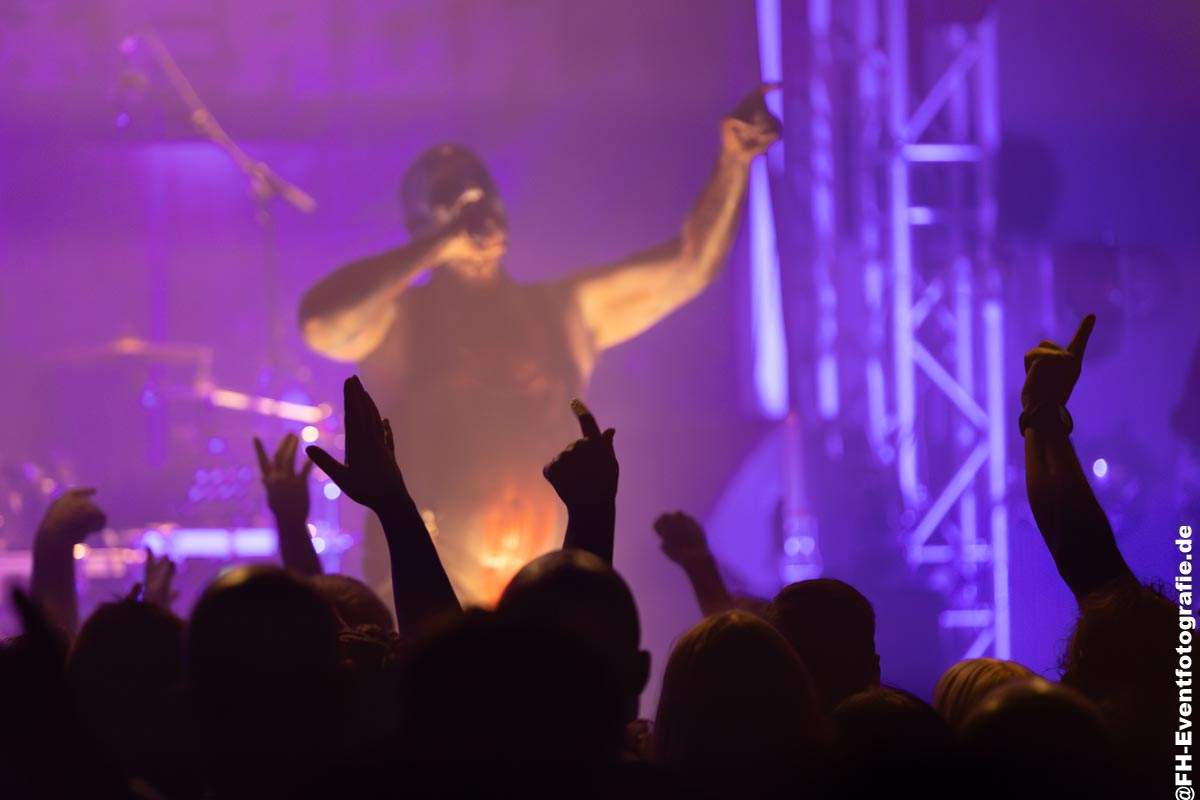 Nach einer kurzen Pause betrat die Hauptattraktion des Abends, Ost+Front, die Bühne. Die Band, die für ihre provokanten Texte und ihre kraftvolle Live-Show bekannt ist, enttäuschte nicht. Mit einer Mischung aus Neue Deutsche Härte und Industrial-Metal fesselten sie das Publikum. Die Performance war geprägt von intensiver Energie und einer beeindruckenden Lichtshow. Die Band spielte einige ihrer bekanntesten Hits, darunter „Sternenkinder“ und „Fleisch.“