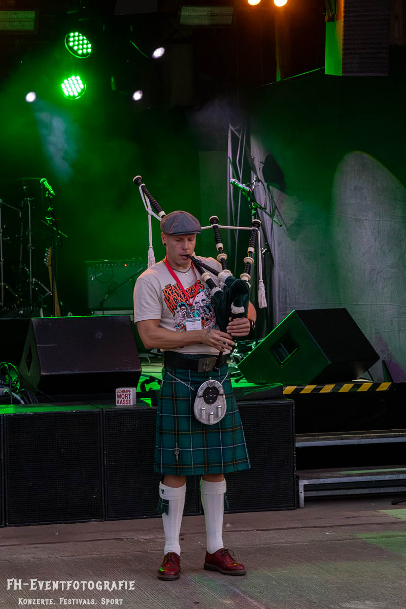 Nach einer kurzen Ansprache der Veranstalter eröffnete „McMü“ mit Musik aus dem Dudelsack den Abend mit schottischen Klängen und kleinen Geschichten.