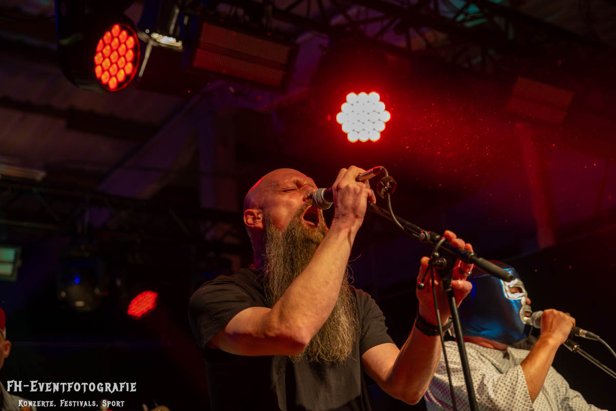 Auf der Bühne machten anschließend „2 Minuten Angst“ aus Magdeburg den Anfang. Die Deutschpunk-Newcomer brachten die rund 200 Besucher sofort zum Feiern.