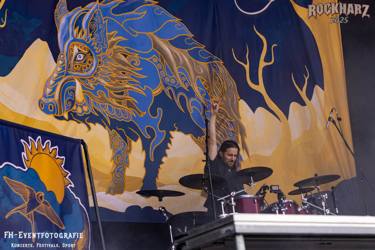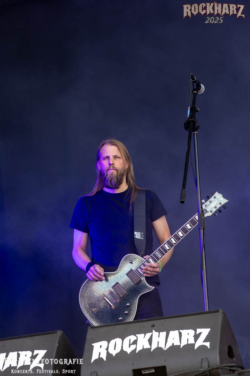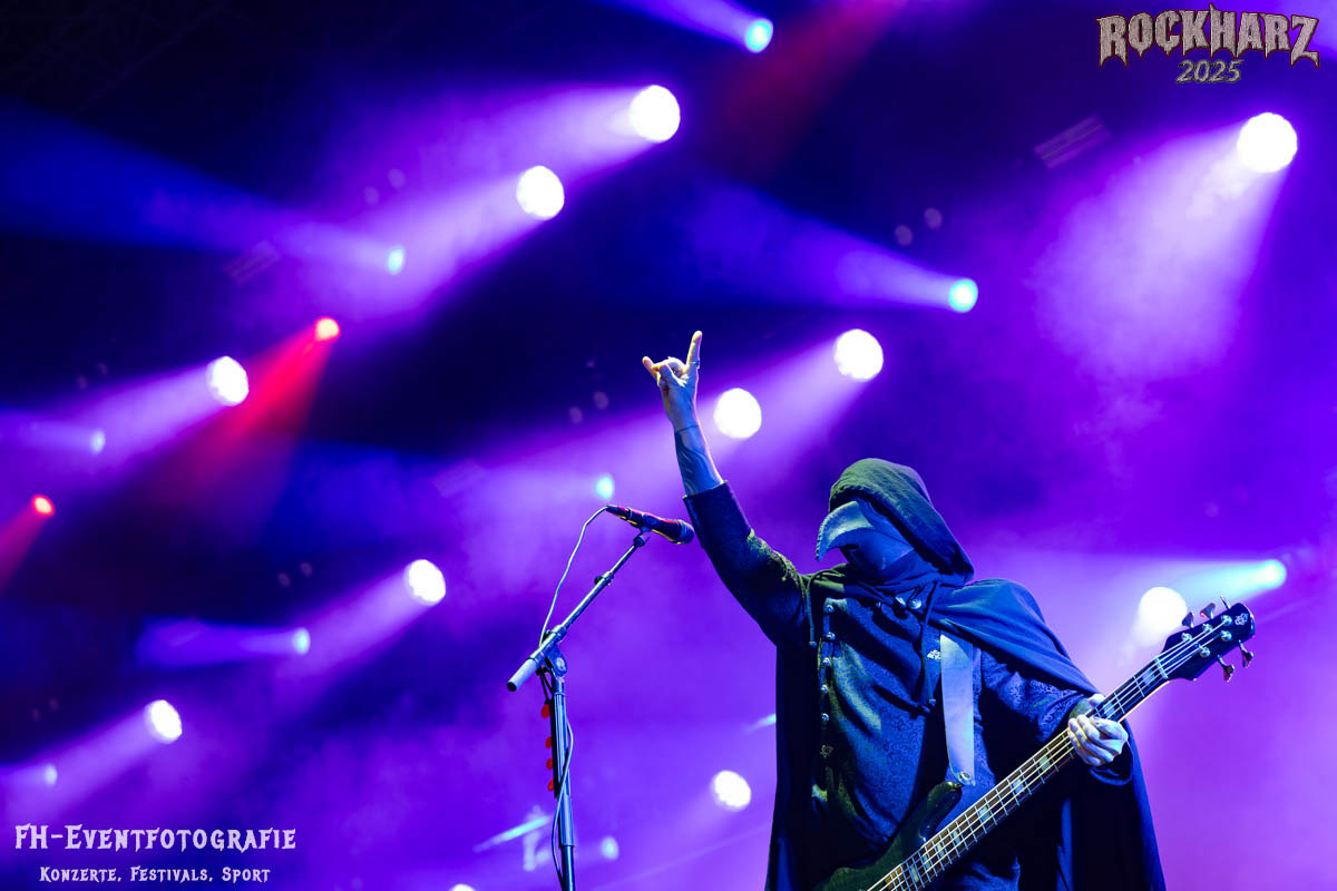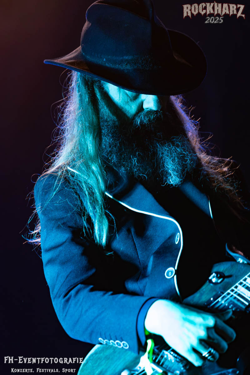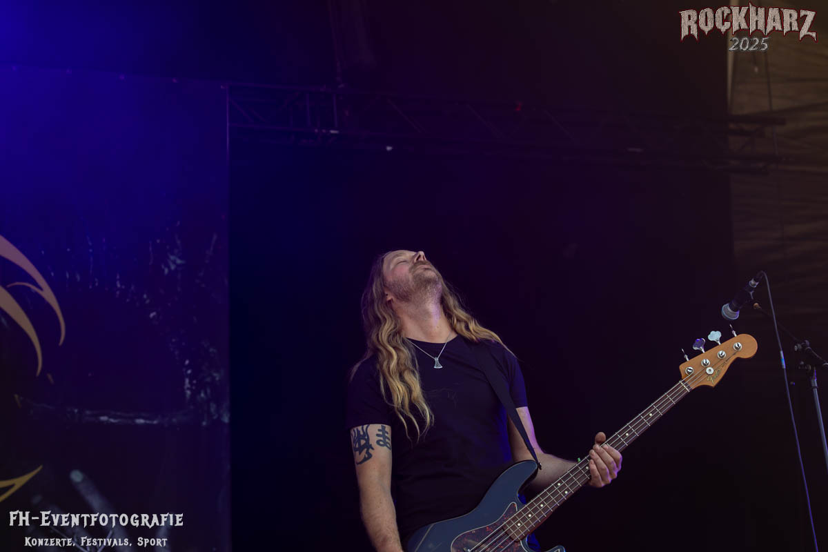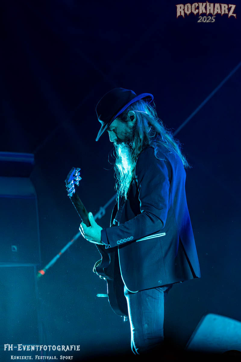 Meine Perle aus diesem Set war und ist eine Neuentdeckung für mich. SÓLSTAFIR aus Island muss man erlebt haben. Progressiv trifft Sludge und das Ganze übermalt mit Metalblues. Als ob sie, wie man den großen Bluesgöttern nachsagt, einen Pakt mit dem Teufel haben, haben SÓLSTAFIR einen Klangteppich vor der Teufelsmauer ausgebreitet, der seinesgleichen suchen wird. Ich habe noch nie so viele wirklich ergriffene und fast entrückt auf die Bühne schauende Menschen gesehen. Auch mich haben sie absolut in ihren Bann gezogen. Ich habe kaum den Kopf gehabt, mich auf das Fotografieren zu konzentrieren. Ein unfassbar beeindruckender Abschluss für diesen Tag auf dem „Rockharz 2025“