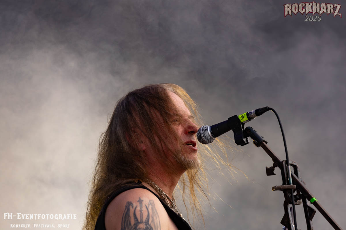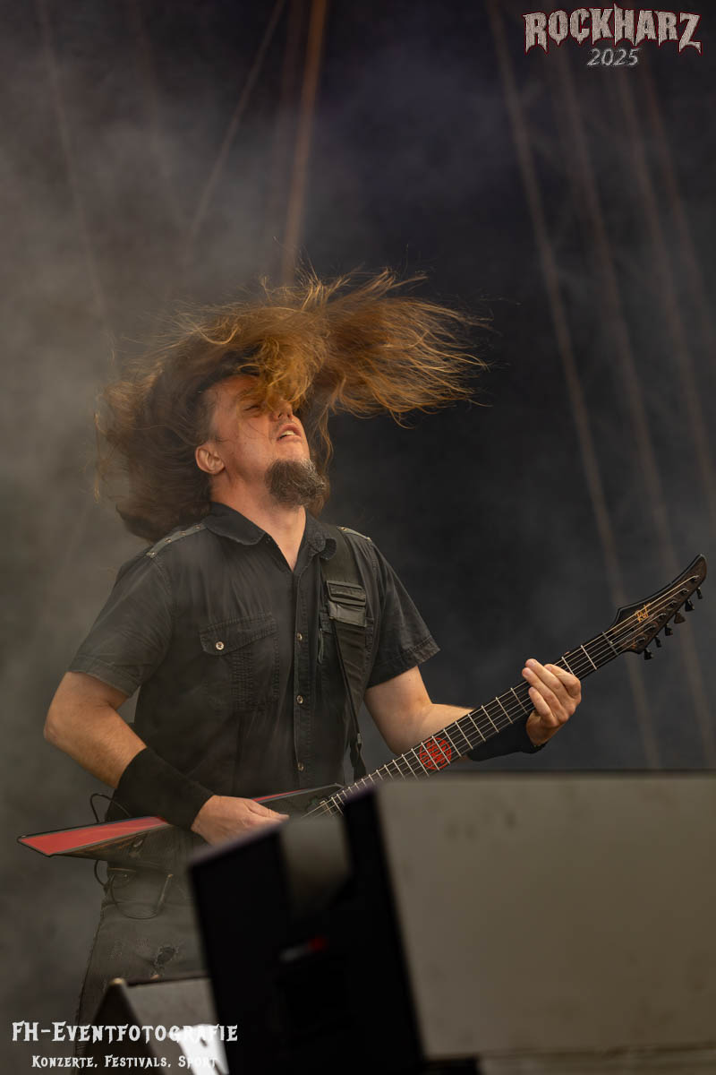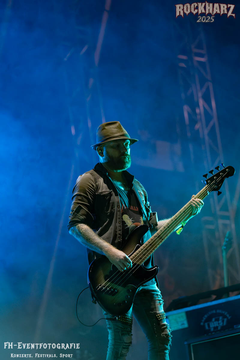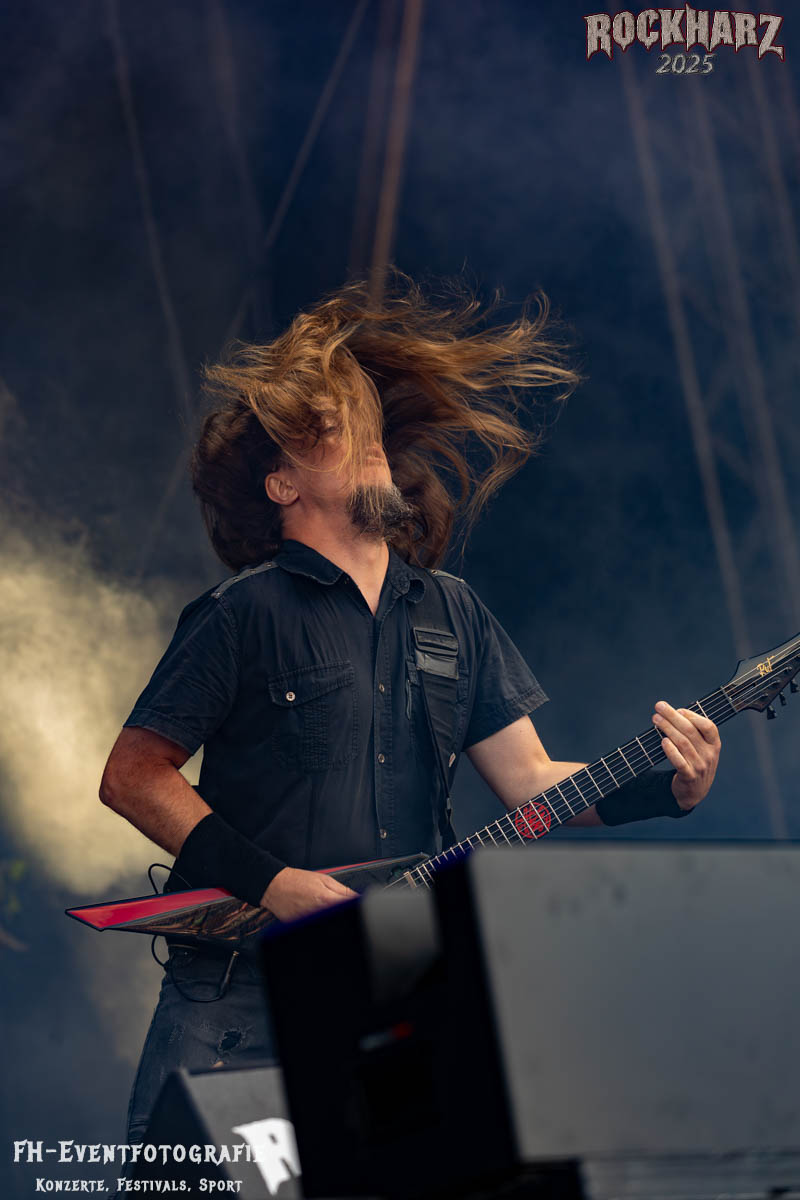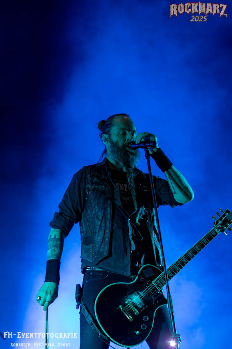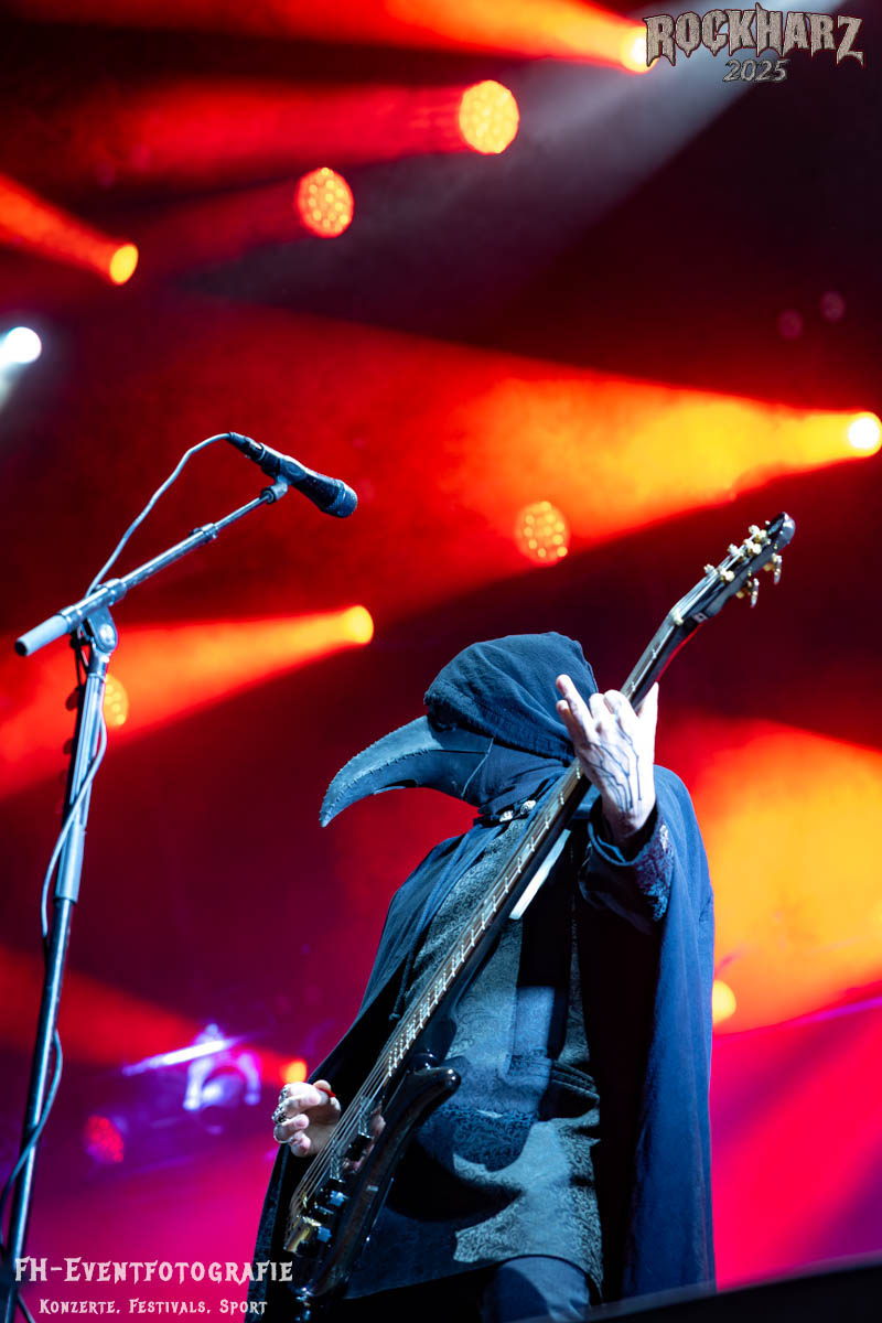 Meine Perle aus diesem Set war und ist eine Neuentdeckung für mich. SÓLSTAFIR aus Island muss man erlebt haben. Progressiv trifft Sludge und das Ganze übermalt mit Metalblues. Als ob sie, wie man den großen Bluesgöttern nachsagt, einen Pakt mit dem Teufel haben, haben SÓLSTAFIR einen Klangteppich vor der Teufelsmauer ausgebreitet, der seinesgleichen suchen wird. Ich habe noch nie so viele wirklich ergriffene und fast entrückt auf die Bühne schauende Menschen gesehen. Auch mich haben sie absolut in ihren Bann gezogen. Ich habe kaum den Kopf gehabt, mich auf das Fotografieren zu konzentrieren. Ein unfassbar beeindruckender Abschluss für diesen Tag auf dem „Rockharz 2025“