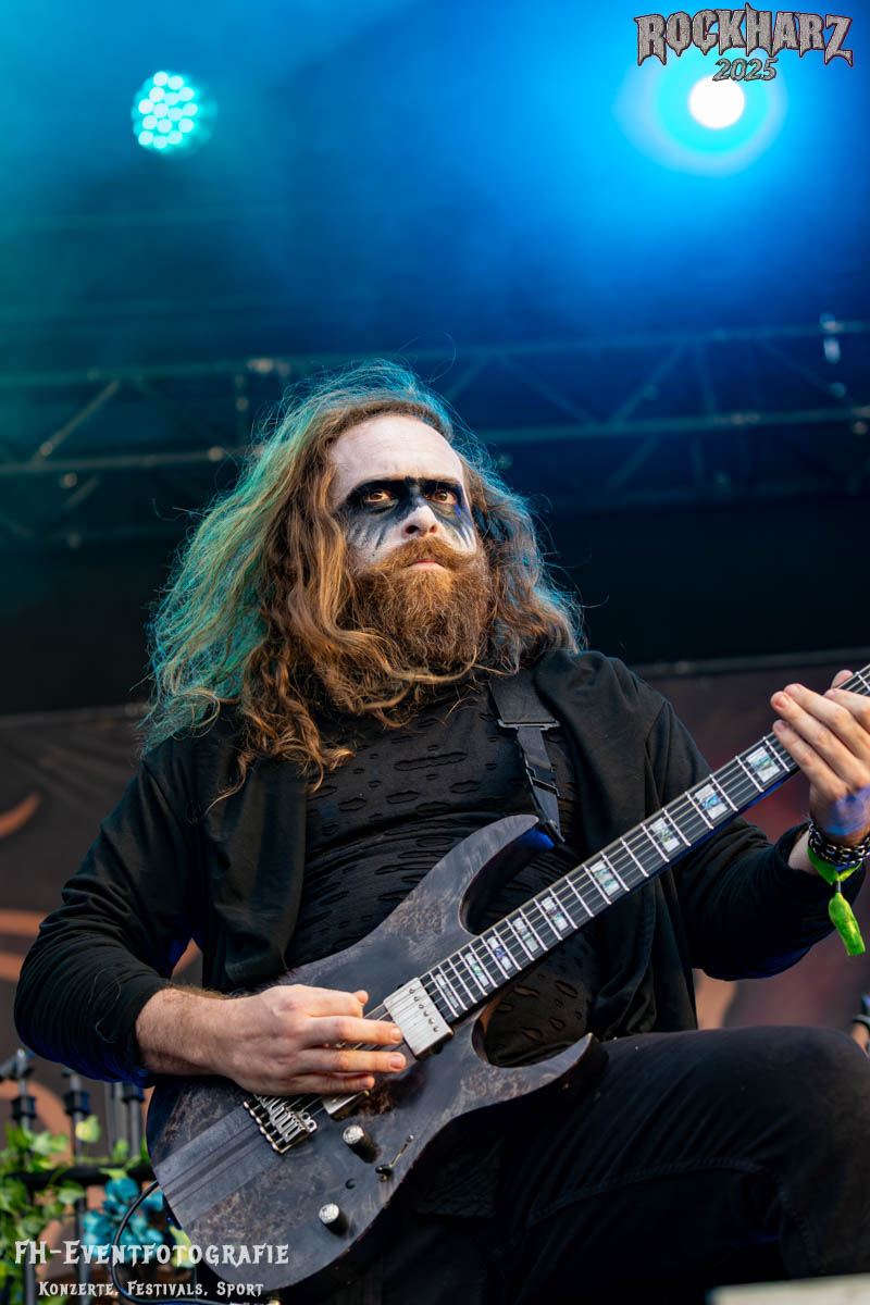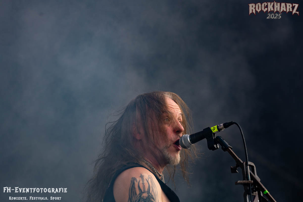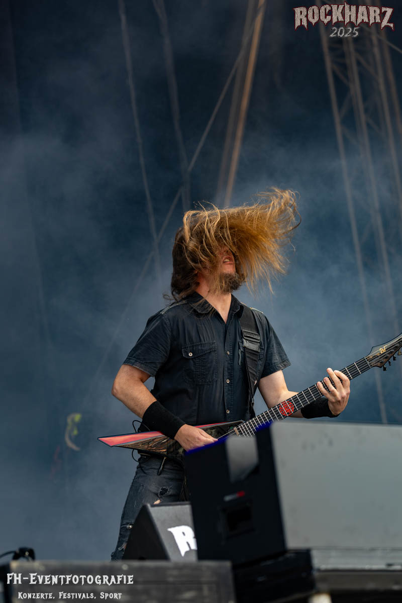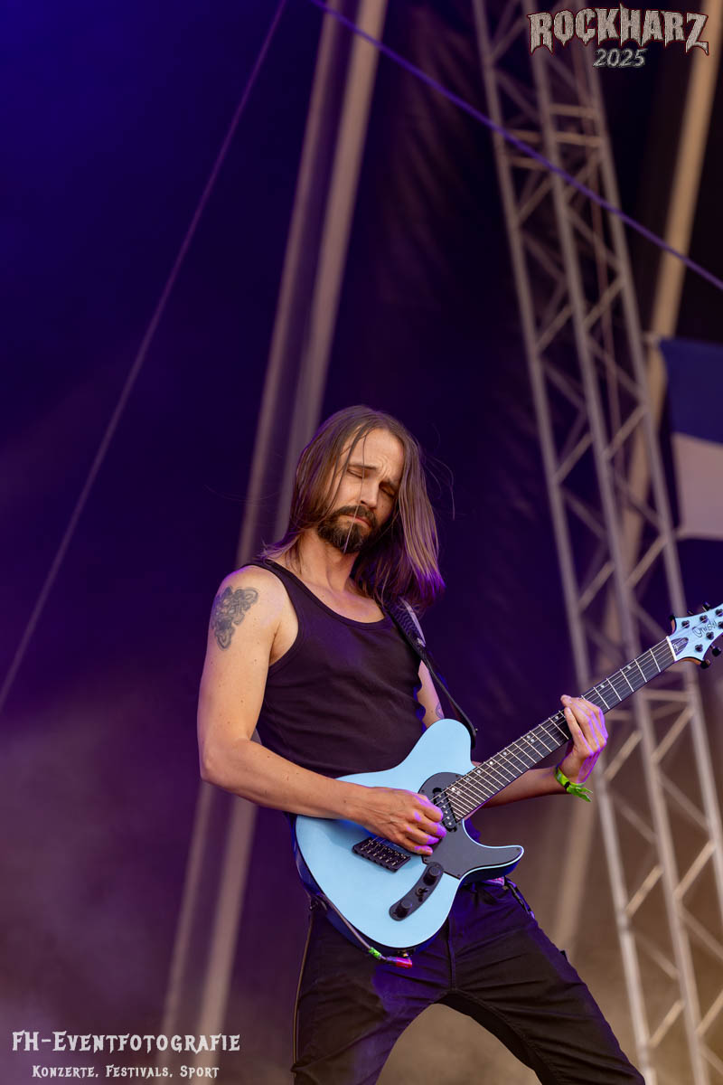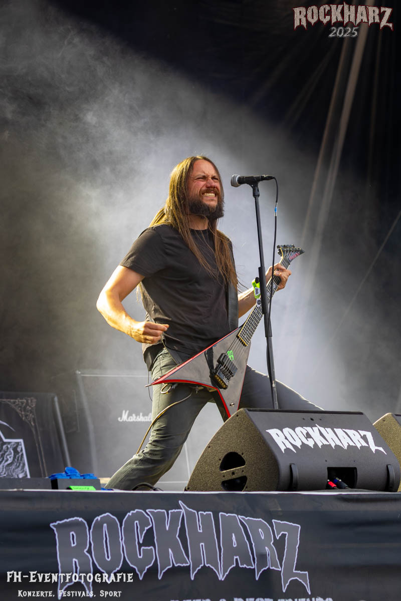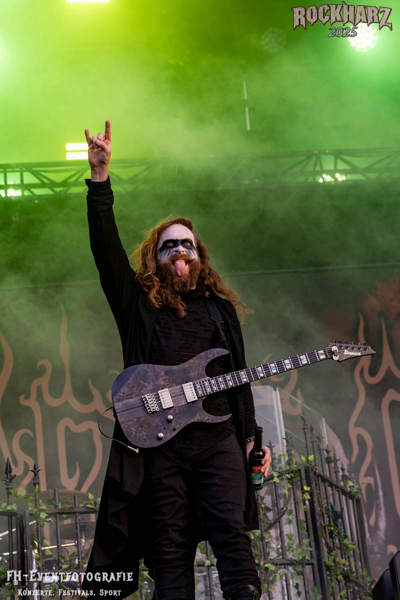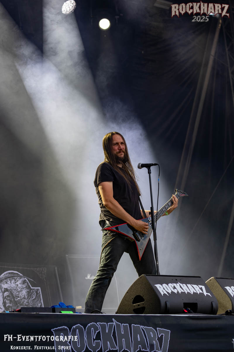 Meine Perle aus diesem Set war und ist eine Neuentdeckung für mich. SÓLSTAFIR aus Island muss man erlebt haben. Progressiv trifft Sludge und das Ganze übermalt mit Metalblues. Als ob sie, wie man den großen Bluesgöttern nachsagt, einen Pakt mit dem Teufel haben, haben SÓLSTAFIR einen Klangteppich vor der Teufelsmauer ausgebreitet, der seinesgleichen suchen wird. Ich habe noch nie so viele wirklich ergriffene und fast entrückt auf die Bühne schauende Menschen gesehen. Auch mich haben sie absolut in ihren Bann gezogen. Ich habe kaum den Kopf gehabt, mich auf das Fotografieren zu konzentrieren. Ein unfassbar beeindruckender Abschluss für diesen Tag auf dem „Rockharz 2025“