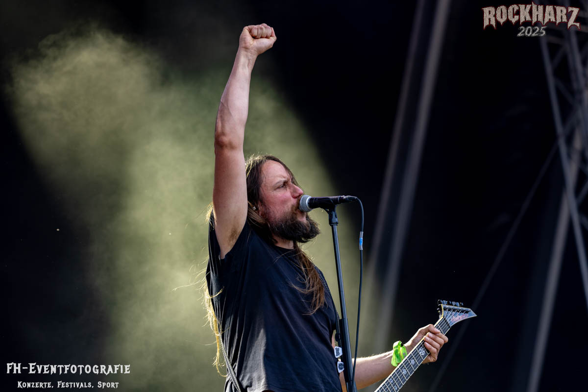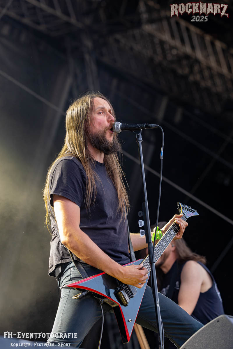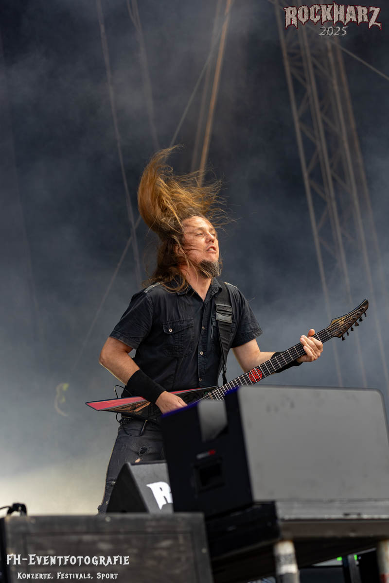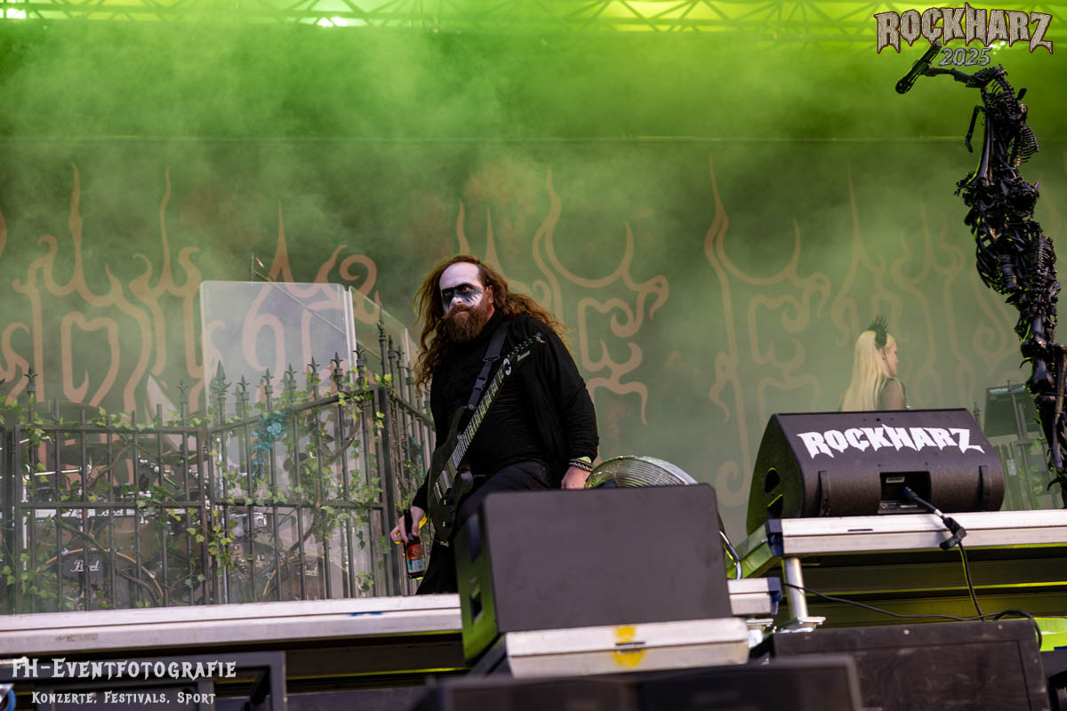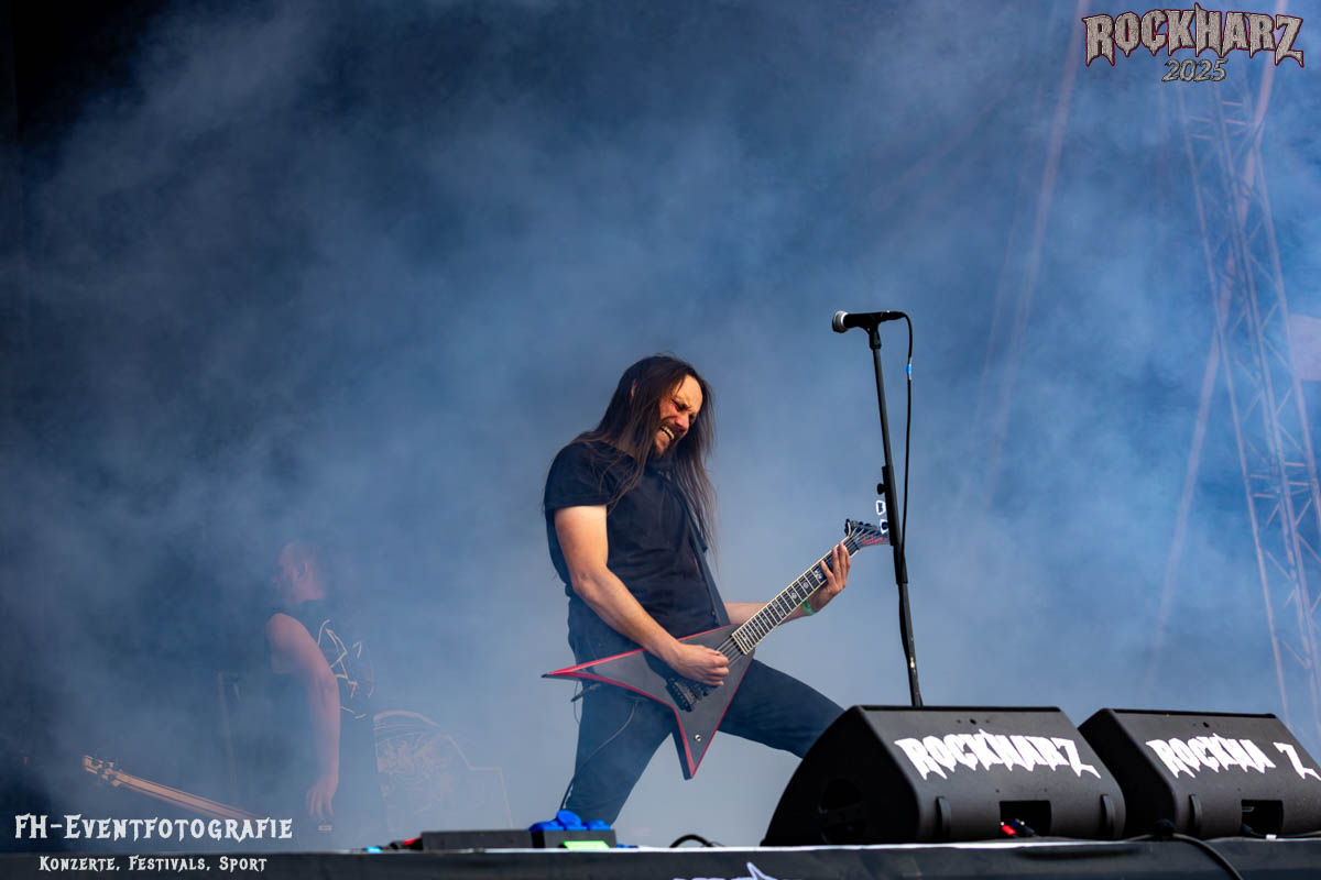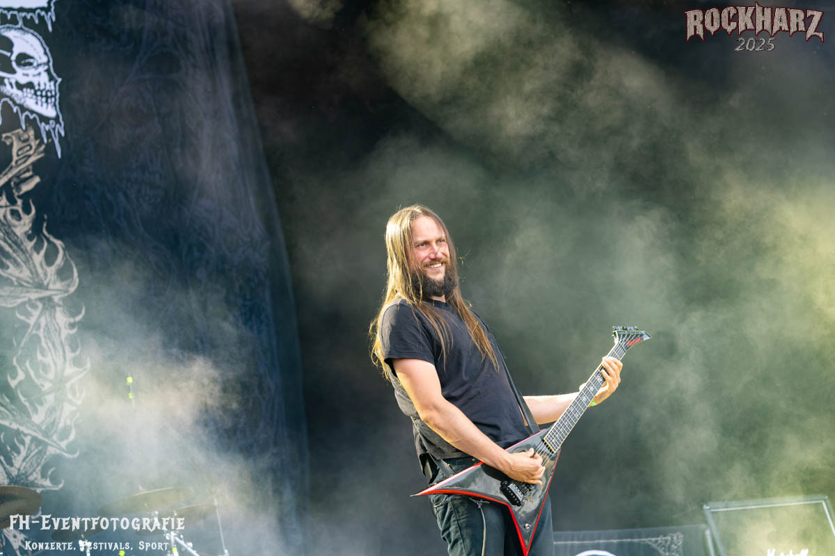 Meine Perle aus diesem Set war und ist eine Neuentdeckung für mich. SÓLSTAFIR aus Island muss man erlebt haben. Progressiv trifft Sludge und das Ganze übermalt mit Metalblues. Als ob sie, wie man den großen Bluesgöttern nachsagt, einen Pakt mit dem Teufel haben, haben SÓLSTAFIR einen Klangteppich vor der Teufelsmauer ausgebreitet, der seinesgleichen suchen wird. Ich habe noch nie so viele wirklich ergriffene und fast entrückt auf die Bühne schauende Menschen gesehen. Auch mich haben sie absolut in ihren Bann gezogen. Ich habe kaum den Kopf gehabt, mich auf das Fotografieren zu konzentrieren. Ein unfassbar beeindruckender Abschluss für diesen Tag auf dem „Rockharz 2025“