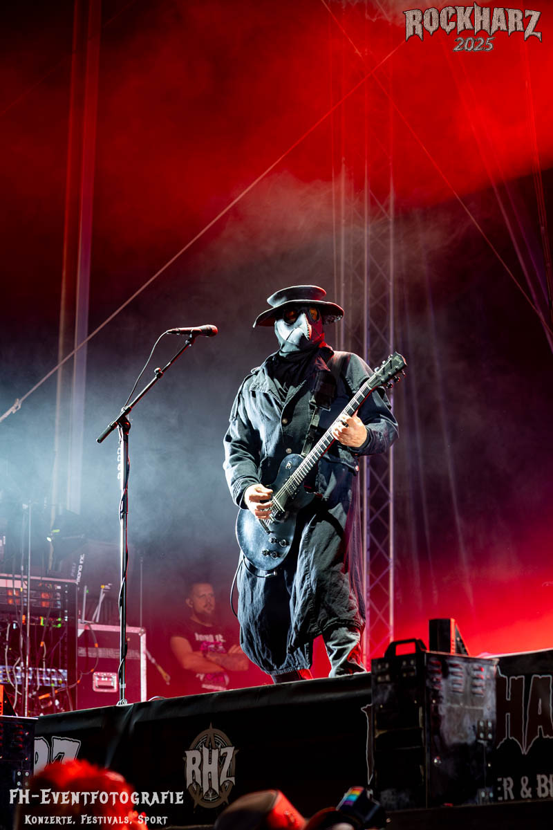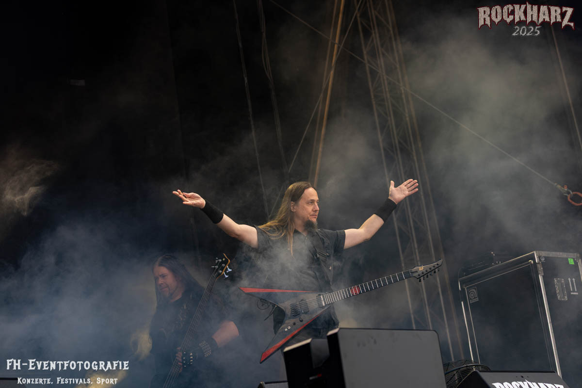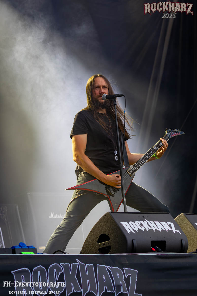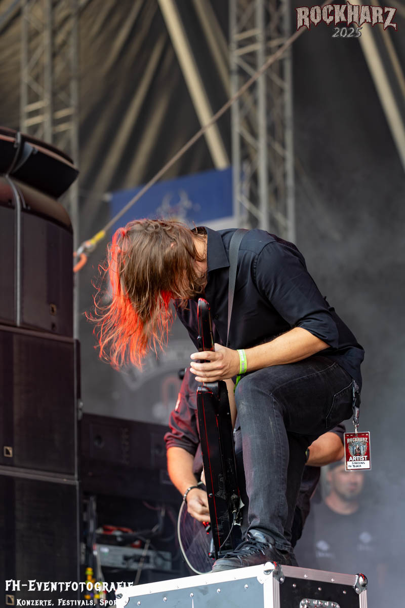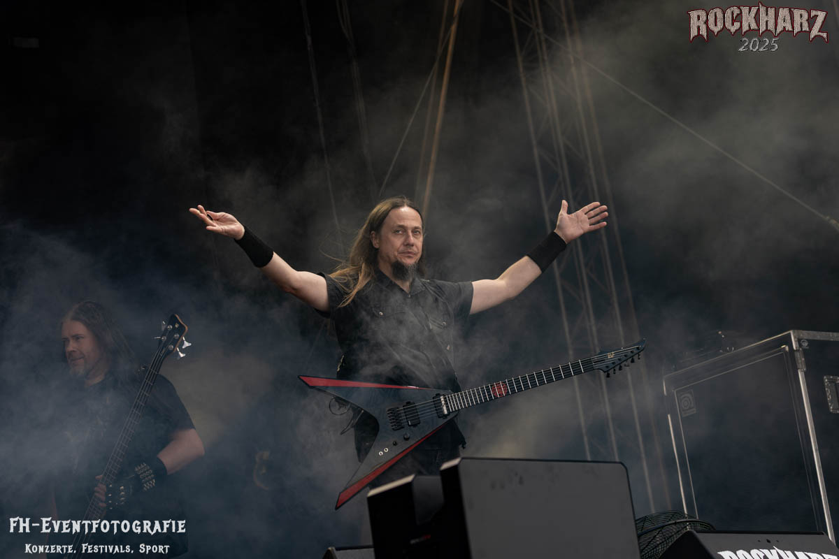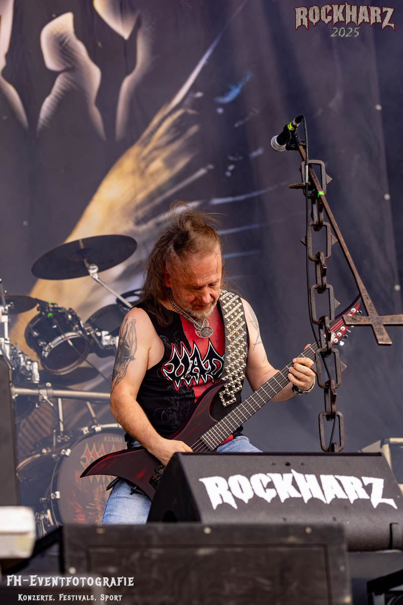 Meine Perle aus diesem Set war und ist eine Neuentdeckung für mich. SÓLSTAFIR aus Island muss man erlebt haben. Progressiv trifft Sludge und das Ganze übermalt mit Metalblues. Als ob sie, wie man den großen Bluesgöttern nachsagt, einen Pakt mit dem Teufel haben, haben SÓLSTAFIR einen Klangteppich vor der Teufelsmauer ausgebreitet, der seinesgleichen suchen wird. Ich habe noch nie so viele wirklich ergriffene und fast entrückt auf die Bühne schauende Menschen gesehen. Auch mich haben sie absolut in ihren Bann gezogen. Ich habe kaum den Kopf gehabt, mich auf das Fotografieren zu konzentrieren. Ein unfassbar beeindruckender Abschluss für diesen Tag auf dem „Rockharz 2025“