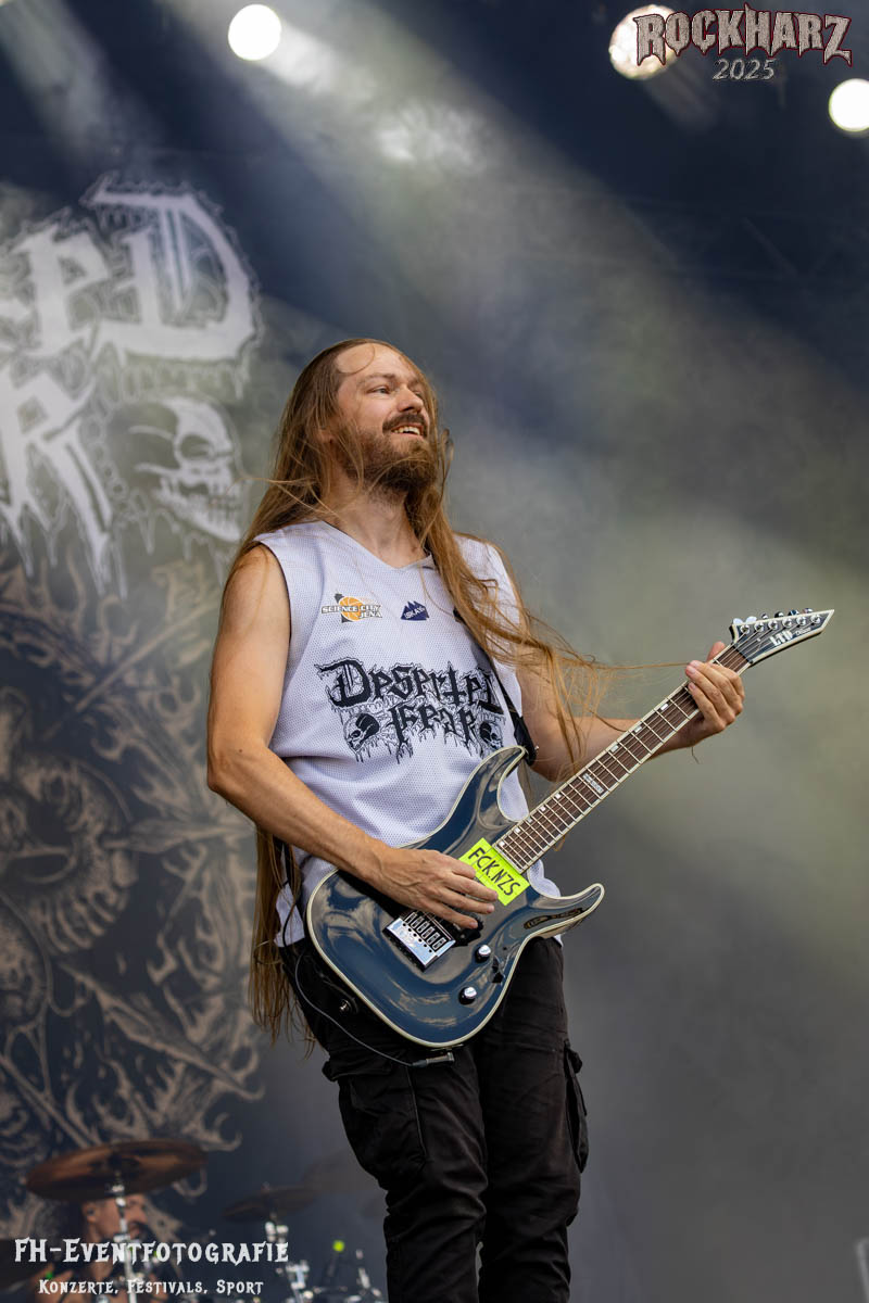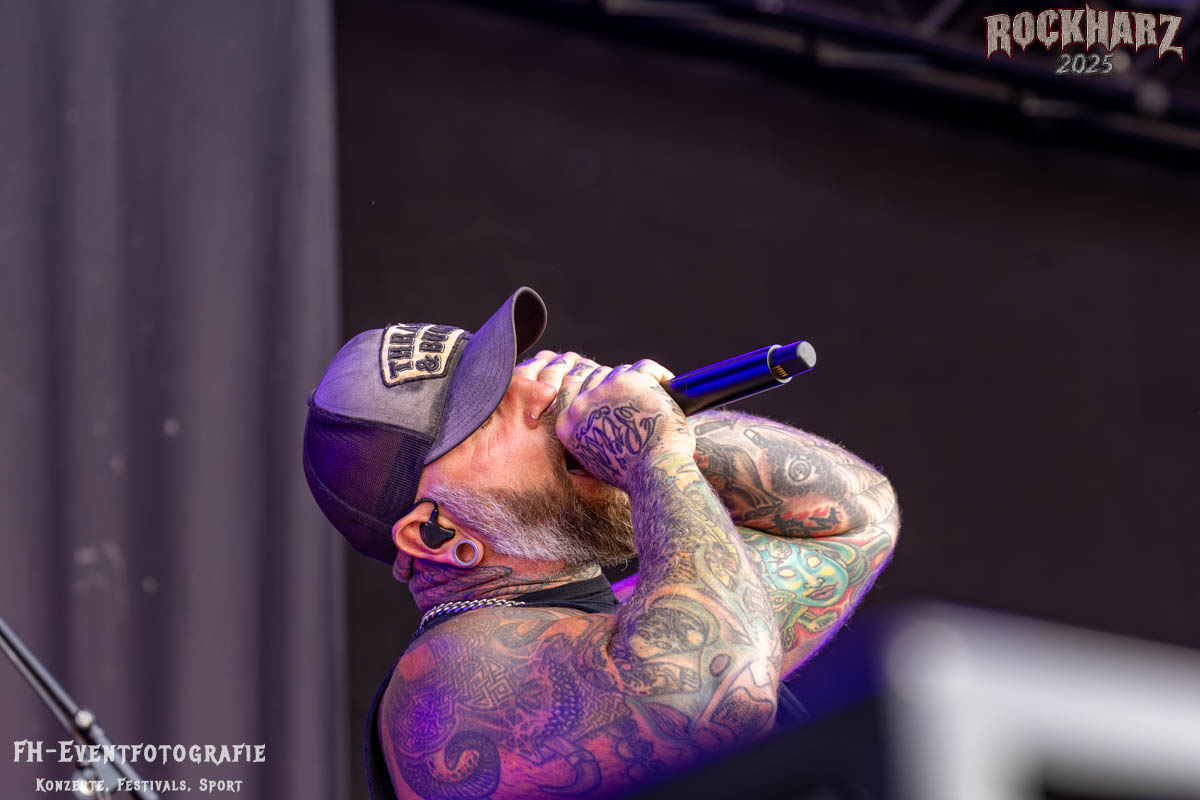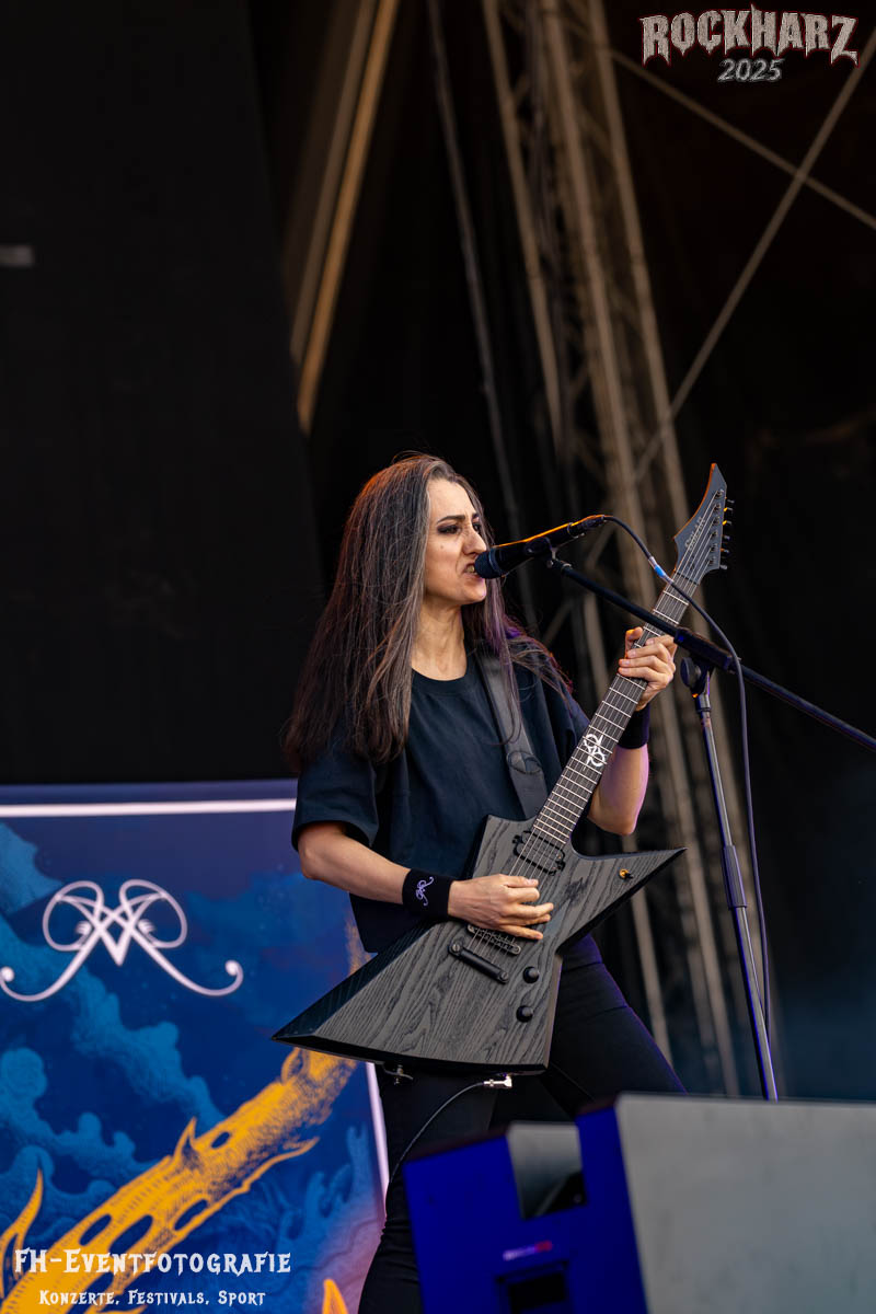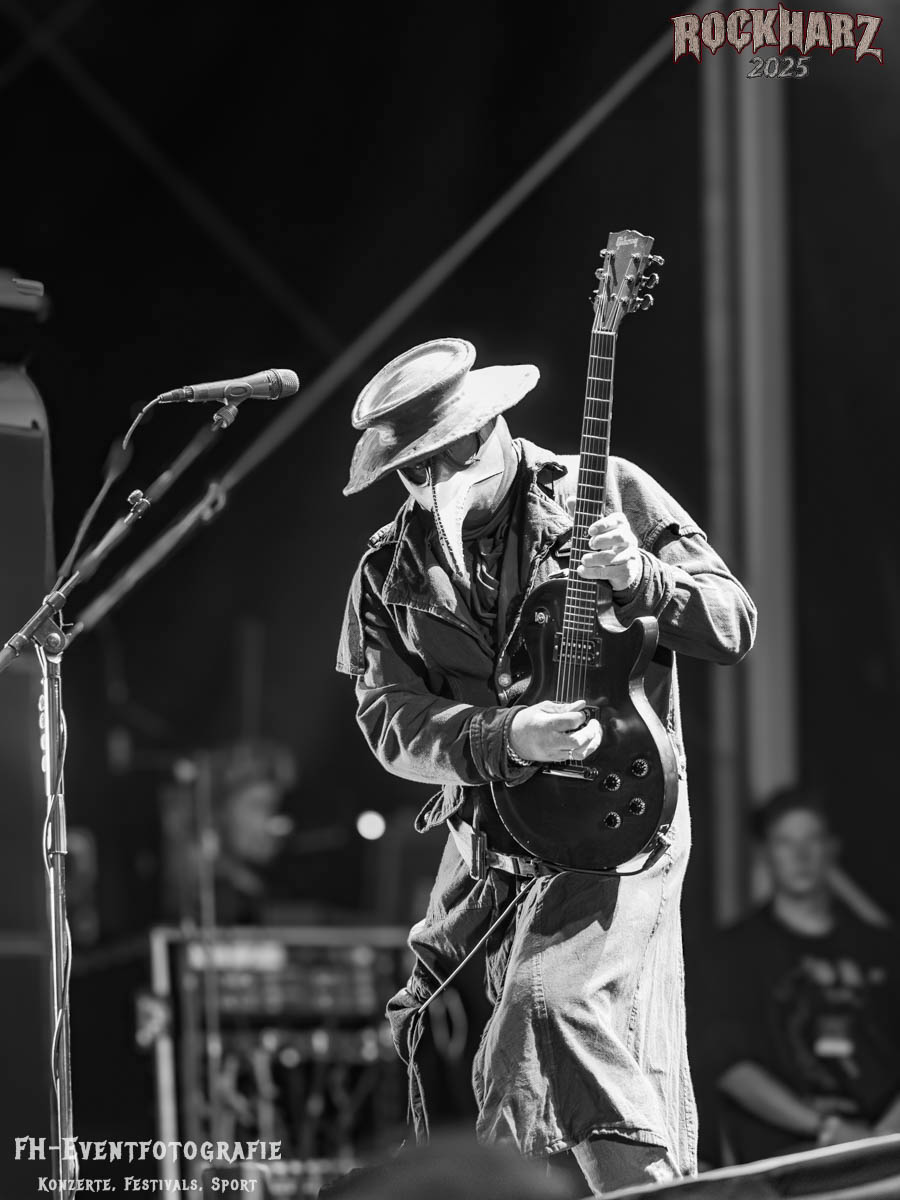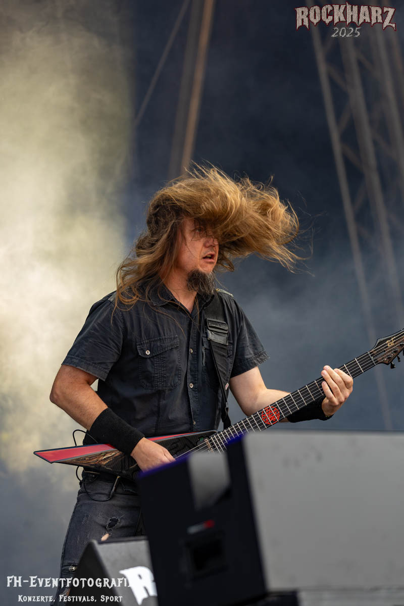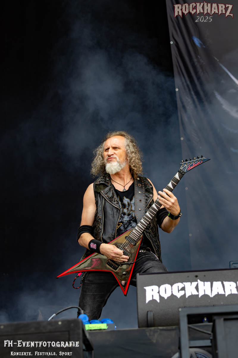 Meine Perle aus diesem Set war und ist eine Neuentdeckung für mich. SÓLSTAFIR aus Island muss man erlebt haben. Progressiv trifft Sludge und das Ganze übermalt mit Metalblues. Als ob sie, wie man den großen Bluesgöttern nachsagt, einen Pakt mit dem Teufel haben, haben SÓLSTAFIR einen Klangteppich vor der Teufelsmauer ausgebreitet, der seinesgleichen suchen wird. Ich habe noch nie so viele wirklich ergriffene und fast entrückt auf die Bühne schauende Menschen gesehen. Auch mich haben sie absolut in ihren Bann gezogen. Ich habe kaum den Kopf gehabt, mich auf das Fotografieren zu konzentrieren. Ein unfassbar beeindruckender Abschluss für diesen Tag auf dem „Rockharz 2025“