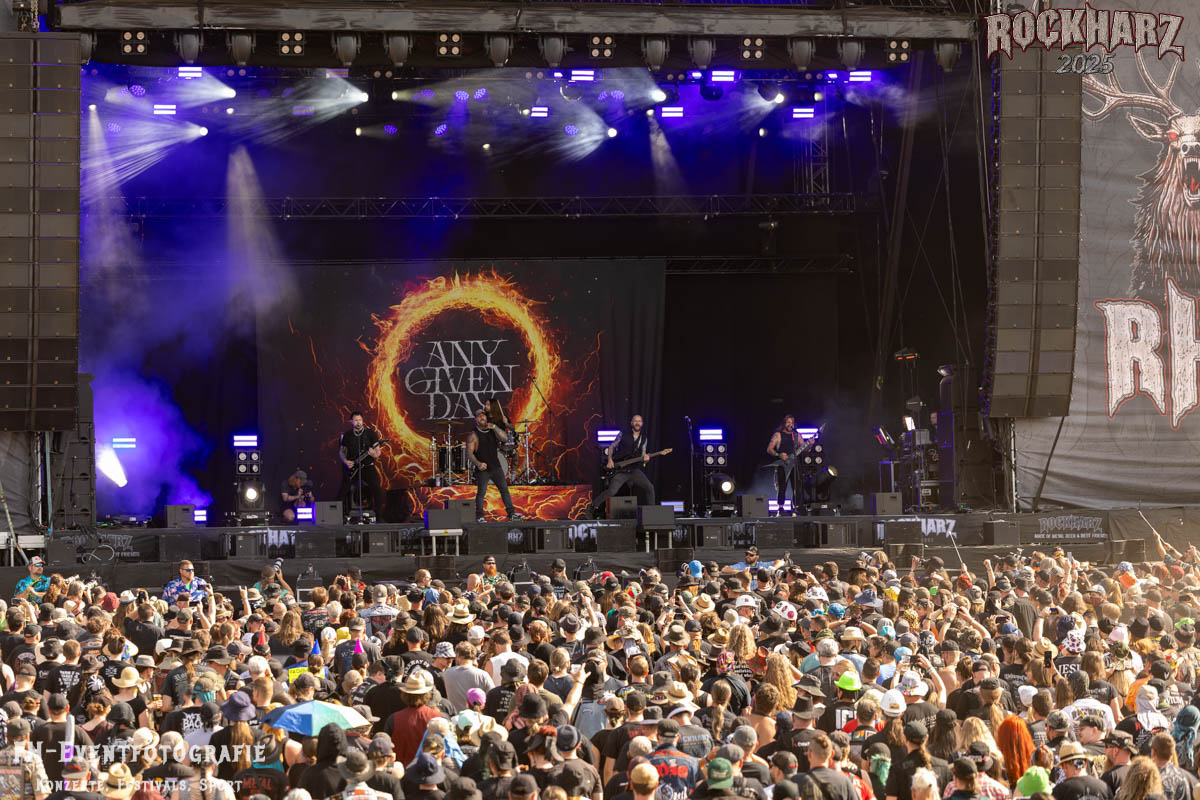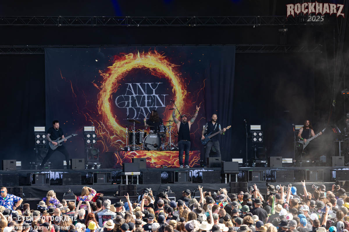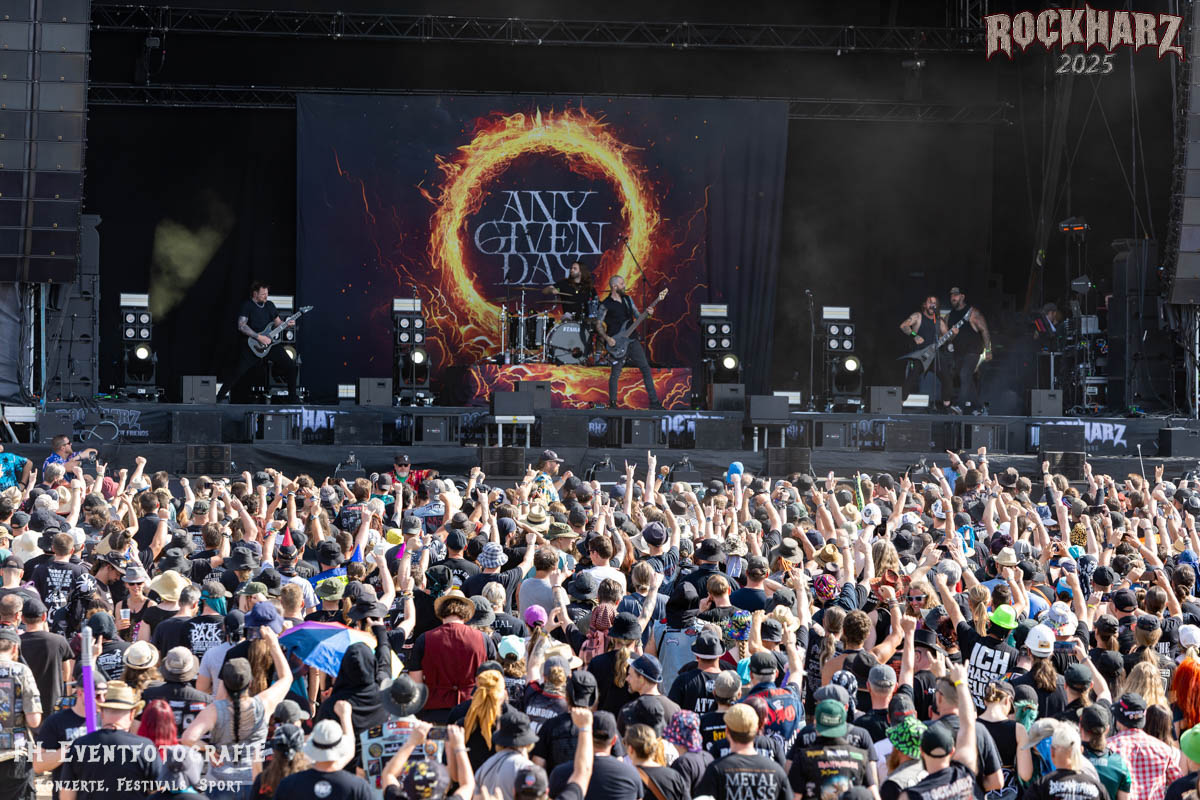 Starten wir mit einer Band, die ich kannte und die ich bis dato nie für so fett gehalten hatte. Ich und sicher 15000 Fans vor der Bühne können da auch kaum irren. Das war ein absolut unglaublich guter Auftritt. Mehrere riesige Wall of Death und Circle Pits, dazu eine einzige riesige Staubwolke. Das alles angefeuert von dieser deutschen Band, die da heißt ANY GIVEN DAY.