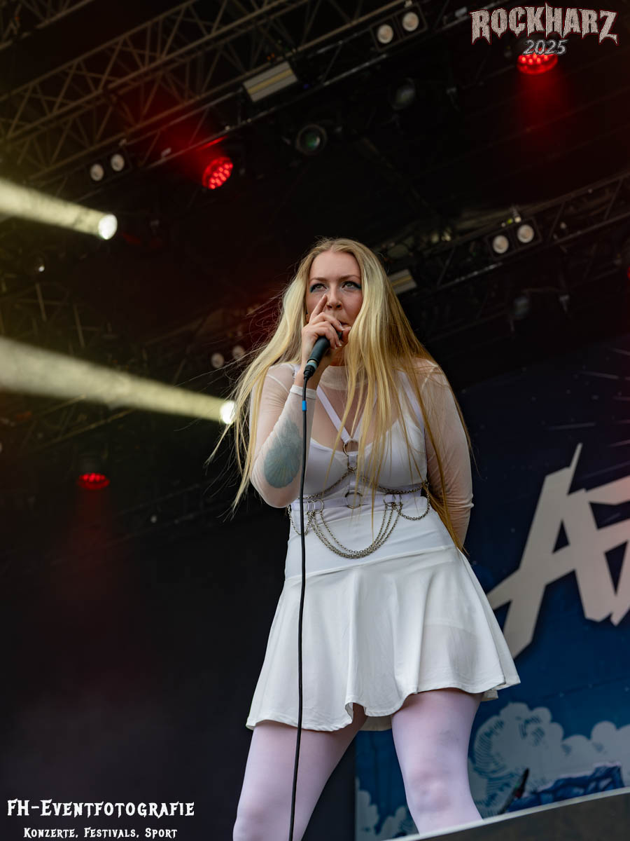 Es ging unbekannt, aber hochkarätig weiter. Wir starten diese Runde mit der französischen Band Aephanemer. Erst gewinnen sie das »Metal-Battle« der Wackenfoundation in Frankreich und nun waren sie auf dem RHZ. Diese Death-Metal-Band mit einer Frontfrau war für mich trotz ihrer Reise über das Wacken absolut unbekannt. Allerdings muss ich sagen, dass ich da was verpasst habe, und so wie es ausschaute war ich mal wieder eher schlecht informiert. So viele Fans wie vor der Bühne waren, hat diese Formation bereits deutlich mehr Fans und Bekanntheit, als ich mir vorstellen konnte.