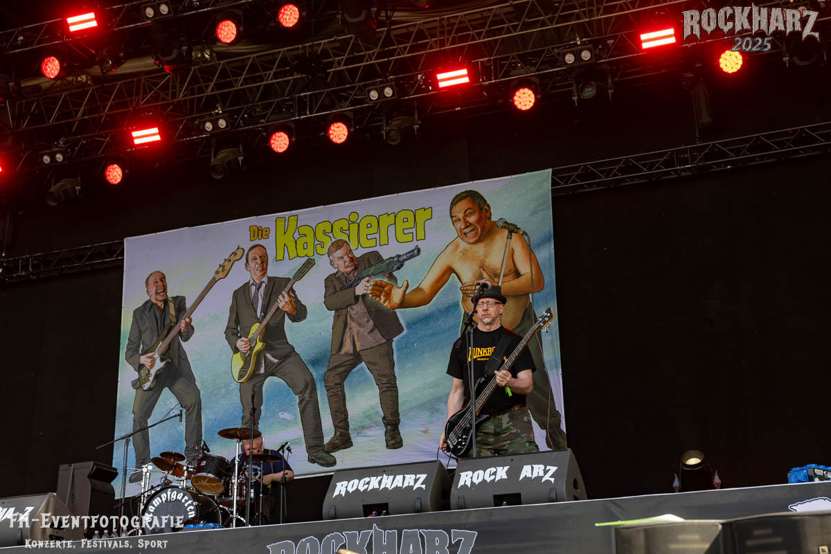 Den Anschlussgig spielten die wahrscheinlich auf ihre ganz eigene Art und Weise kontroverseste Band des Festivals. Die Kassierer haben diesen Titel sicher auf allen Festivals, wo sie auftreten. Aber sie haben eine riesige Fanbase. Also sind sie dabei und sie verbreiten immer eine Menge Freude. Diesmal mit der Ansage, dass „Wölfi“ sich nicht ausziehen sollte. Hat er gemacht und diesen Part deren Auftritts an seinen Nachfolger „Christoph Halbe“ abgetreten. Die Fans haben es gefeiert, aber ich denke, von seiner Naturbelassenheit werden wir mal keine Bilder veröffentlichen. Dafür müsst ihr die Konzerte der Bochumer Band besuchen.