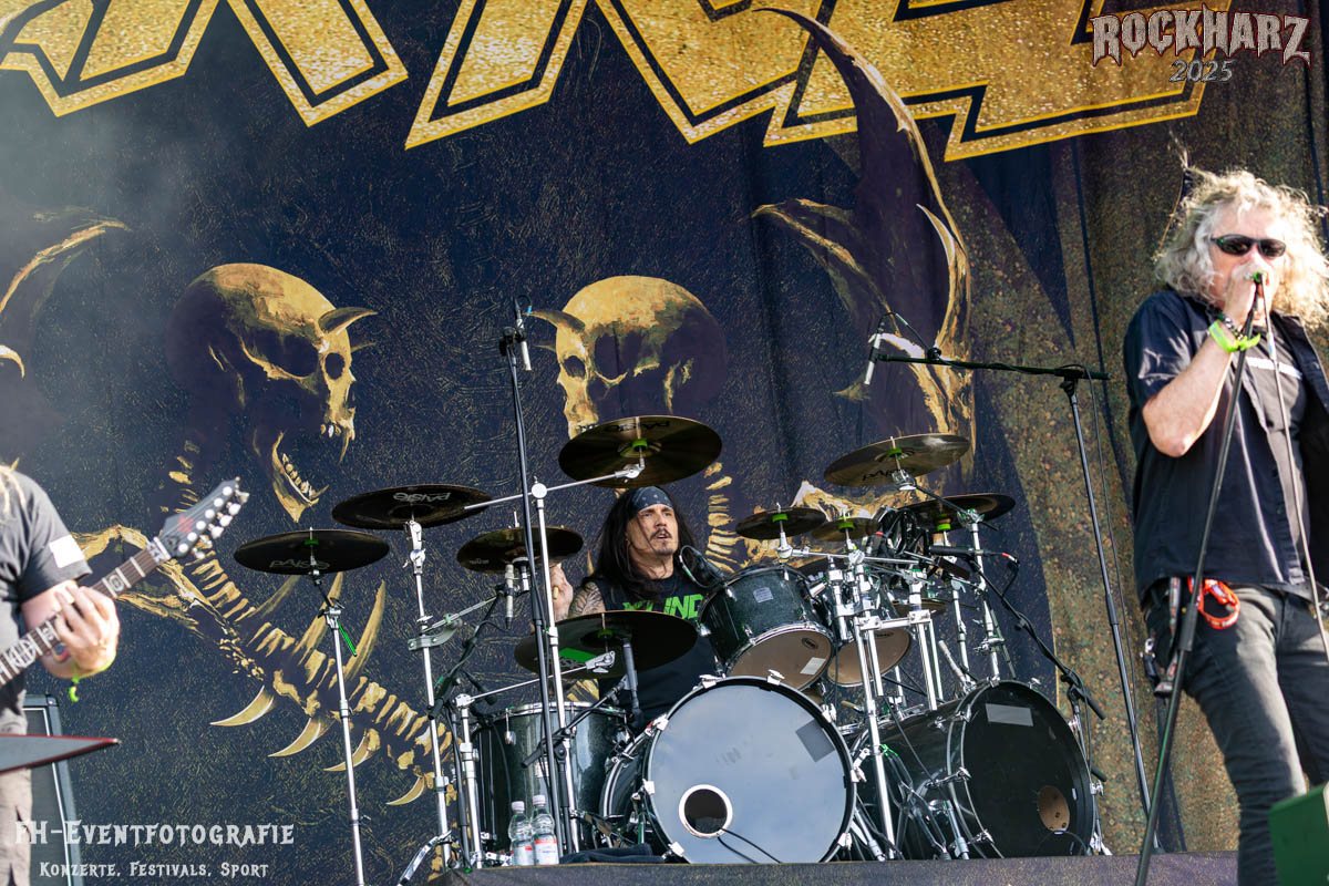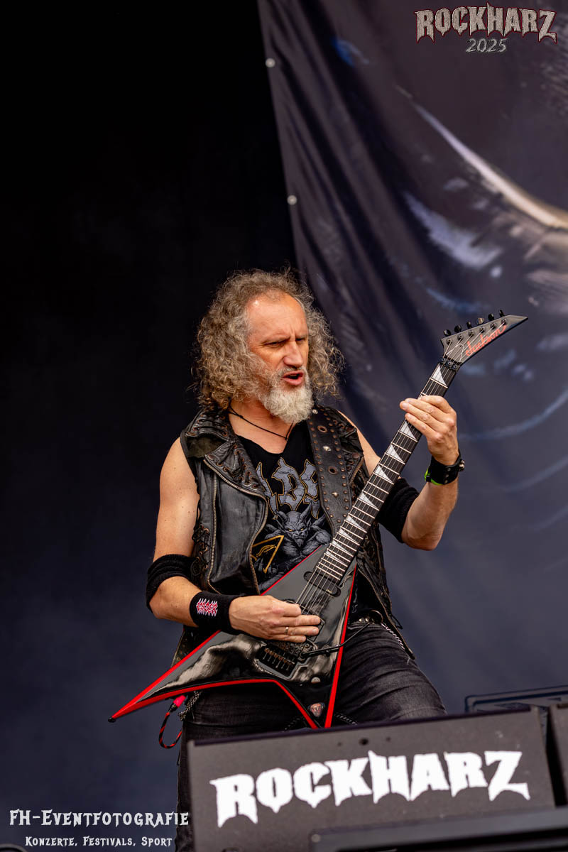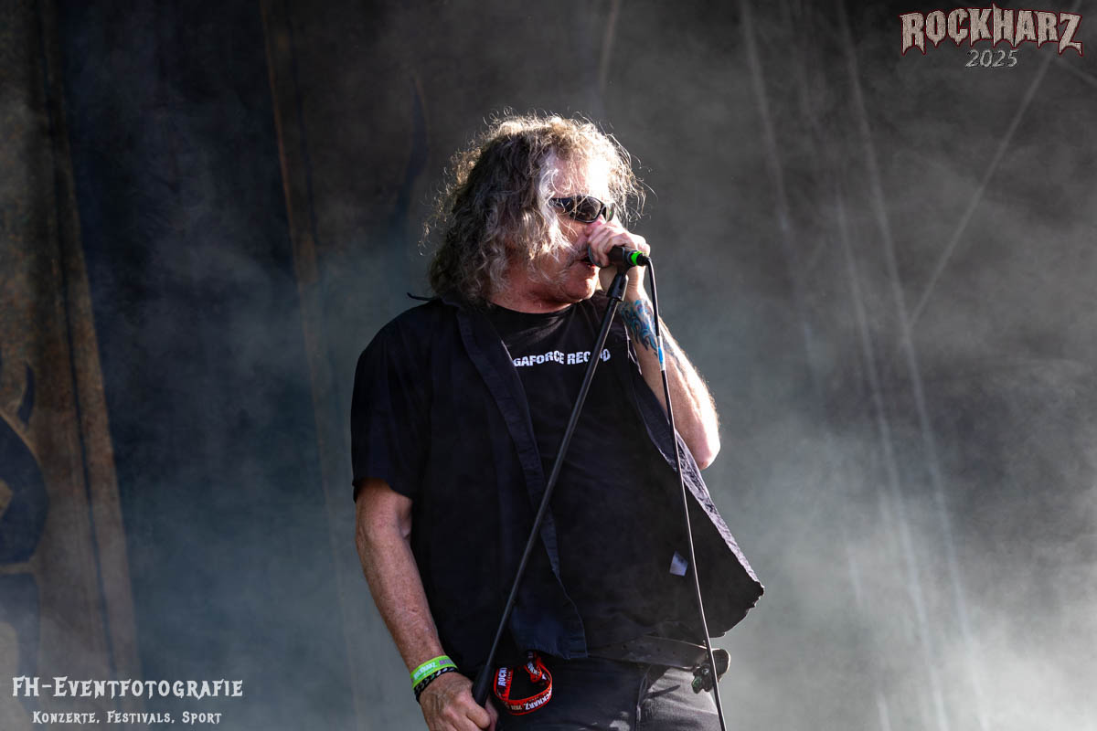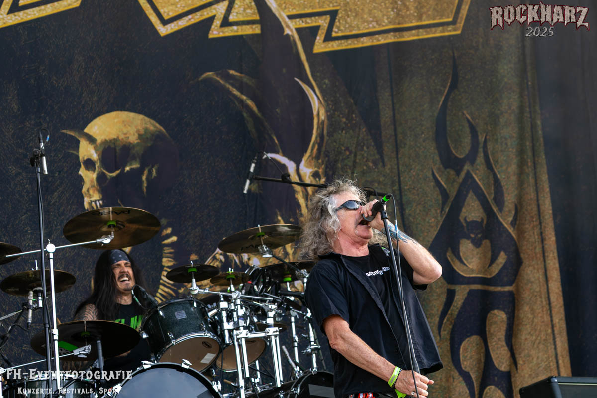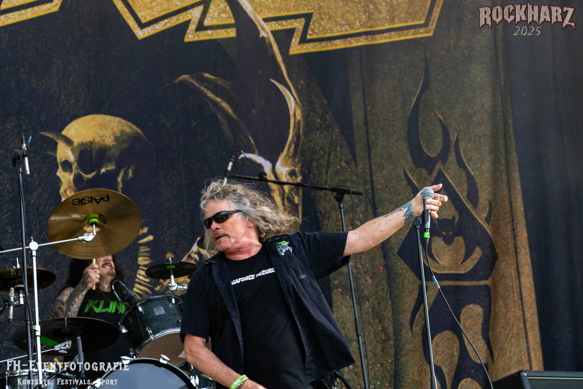 Band Nummer drei ist Overkill. Im Tageskalender die 11. Band des Tages. Mit 45 Jahren Bühnenerfahrung stehen die New Yorker schon als Band auf der Bühne. Deren Thrash Metal ist so stabil und gut, dass sie einfach wenig bis gar nichts falsch machen können. Und das haben sie auf dem RHZ 2025 wirklich und solide bewiesen. Ich habe dieses Konzert zum Kaffee und Quark beschaffen und genutzt. Der Quark war eine Empfehlung einer lieben Kollegin und der Kaffee ist auf dem RHZ immer richtig gut. Also was Leckeres zu essen und zu trinken und dazu geile Musik.