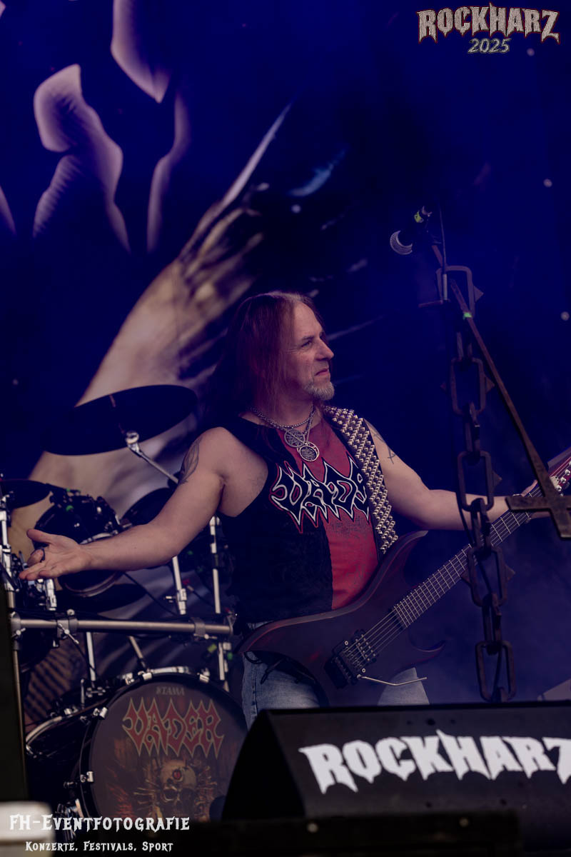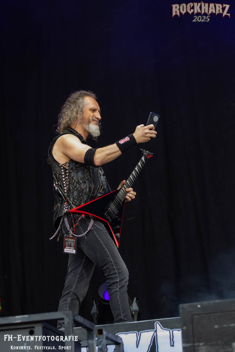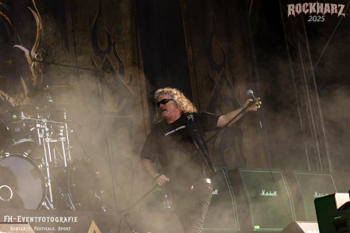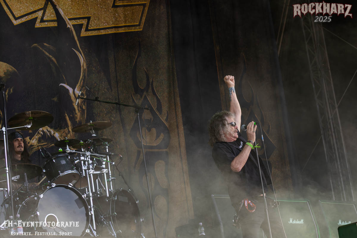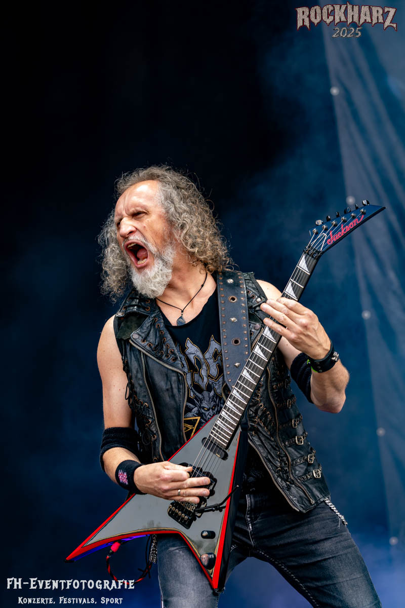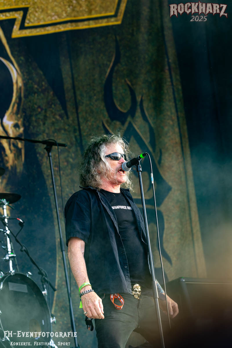 Band Nummer drei ist Overkill. Im Tageskalender die 11. Band des Tages. Mit 45 Jahren Bühnenerfahrung stehen die New Yorker schon als Band auf der Bühne. Deren Thrash Metal ist so stabil und gut, dass sie einfach wenig bis gar nichts falsch machen können. Und das haben sie auf dem RHZ 2025 wirklich und solide bewiesen. Ich habe dieses Konzert zum Kaffee und Quark beschaffen und genutzt. Der Quark war eine Empfehlung einer lieben Kollegin und der Kaffee ist auf dem RHZ immer richtig gut. Also was Leckeres zu essen und zu trinken und dazu geile Musik.