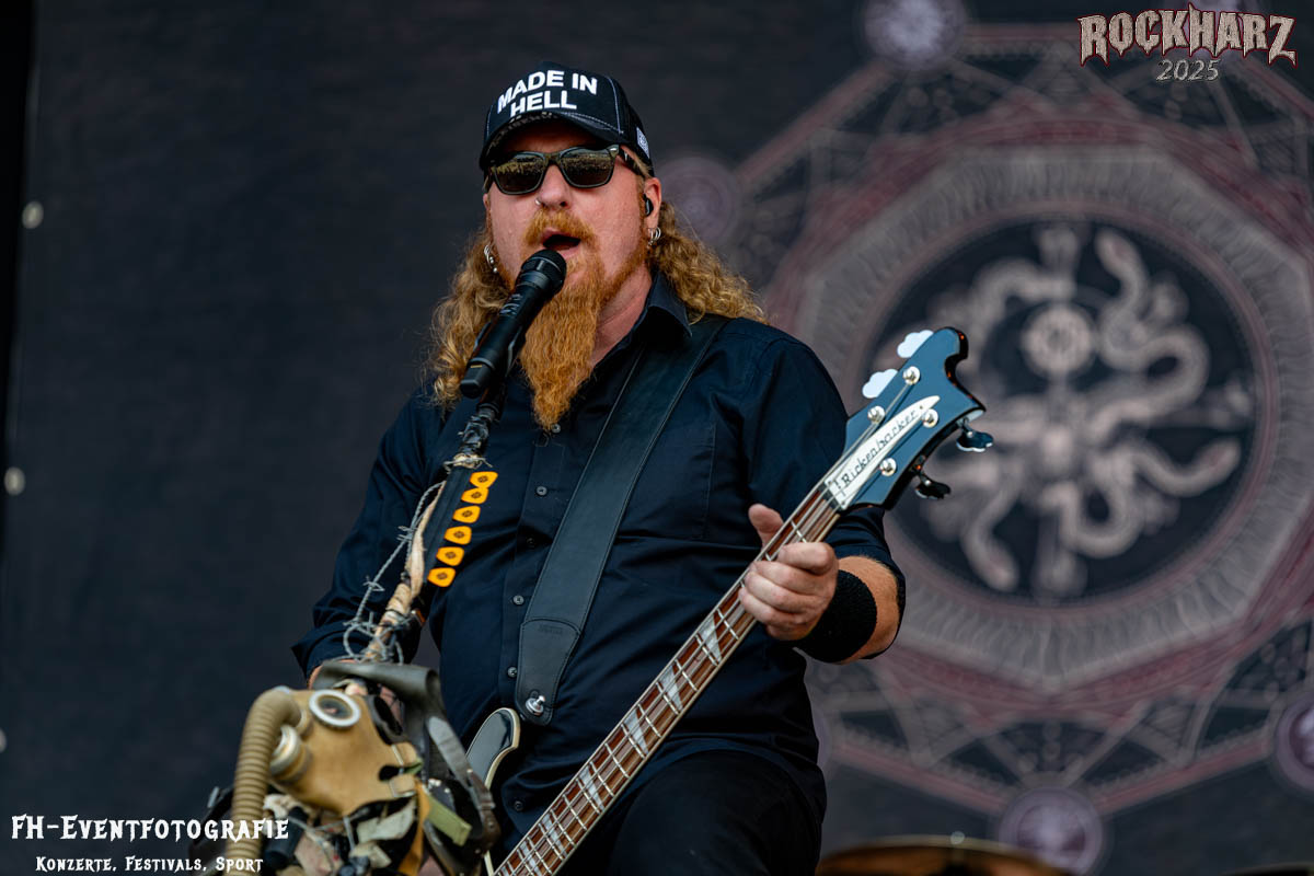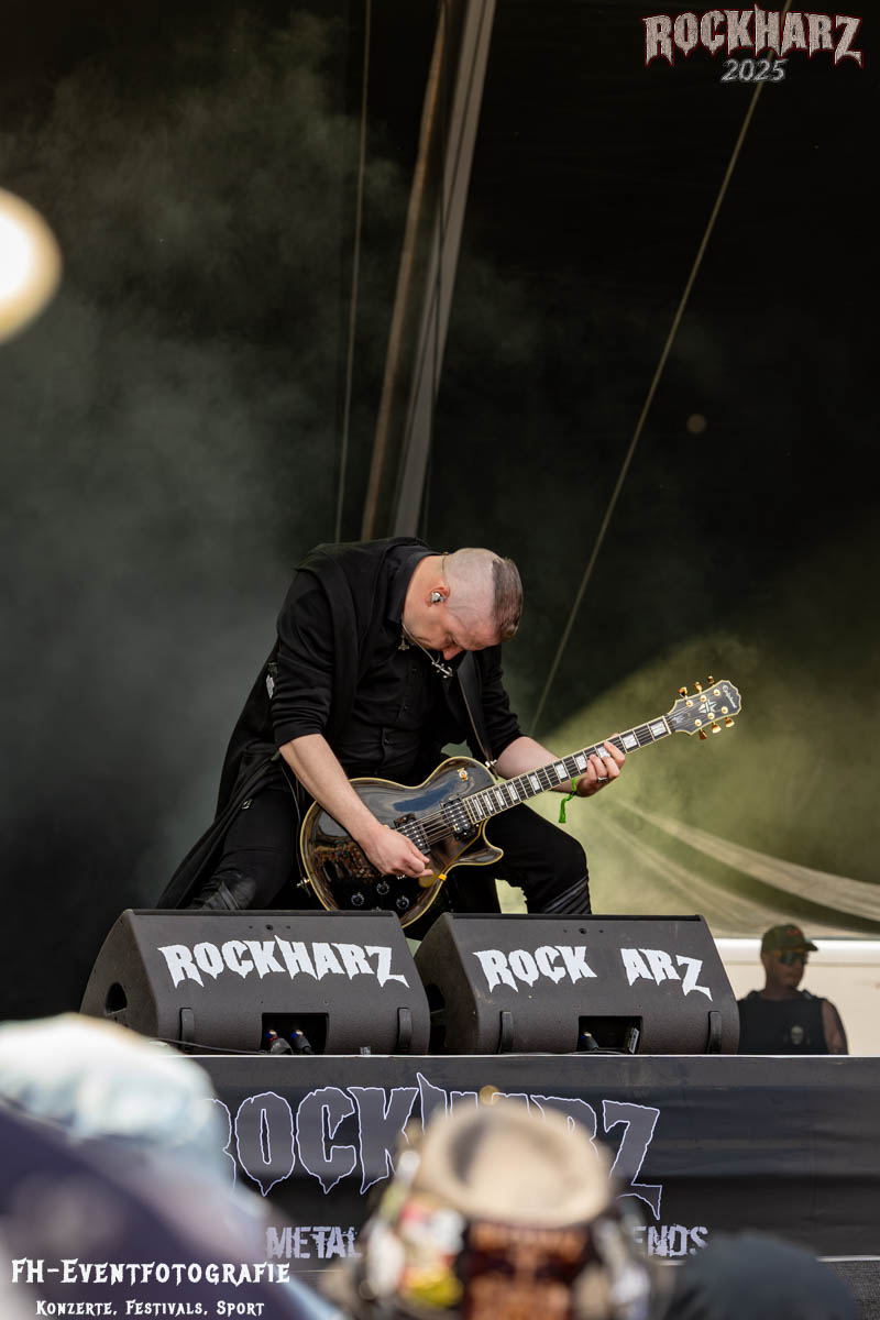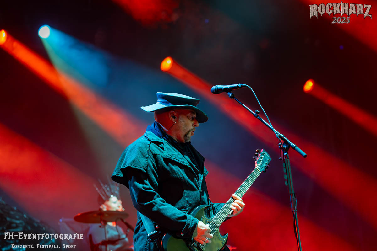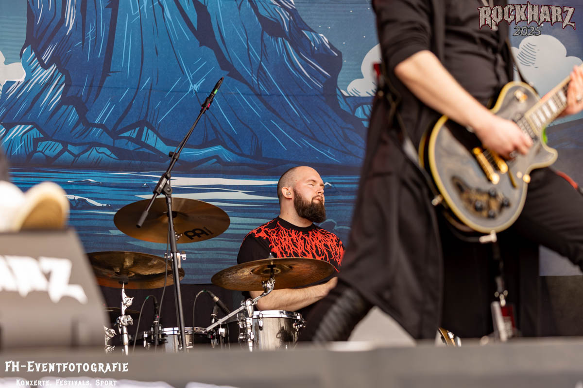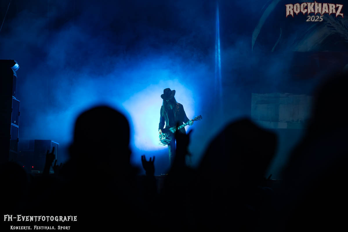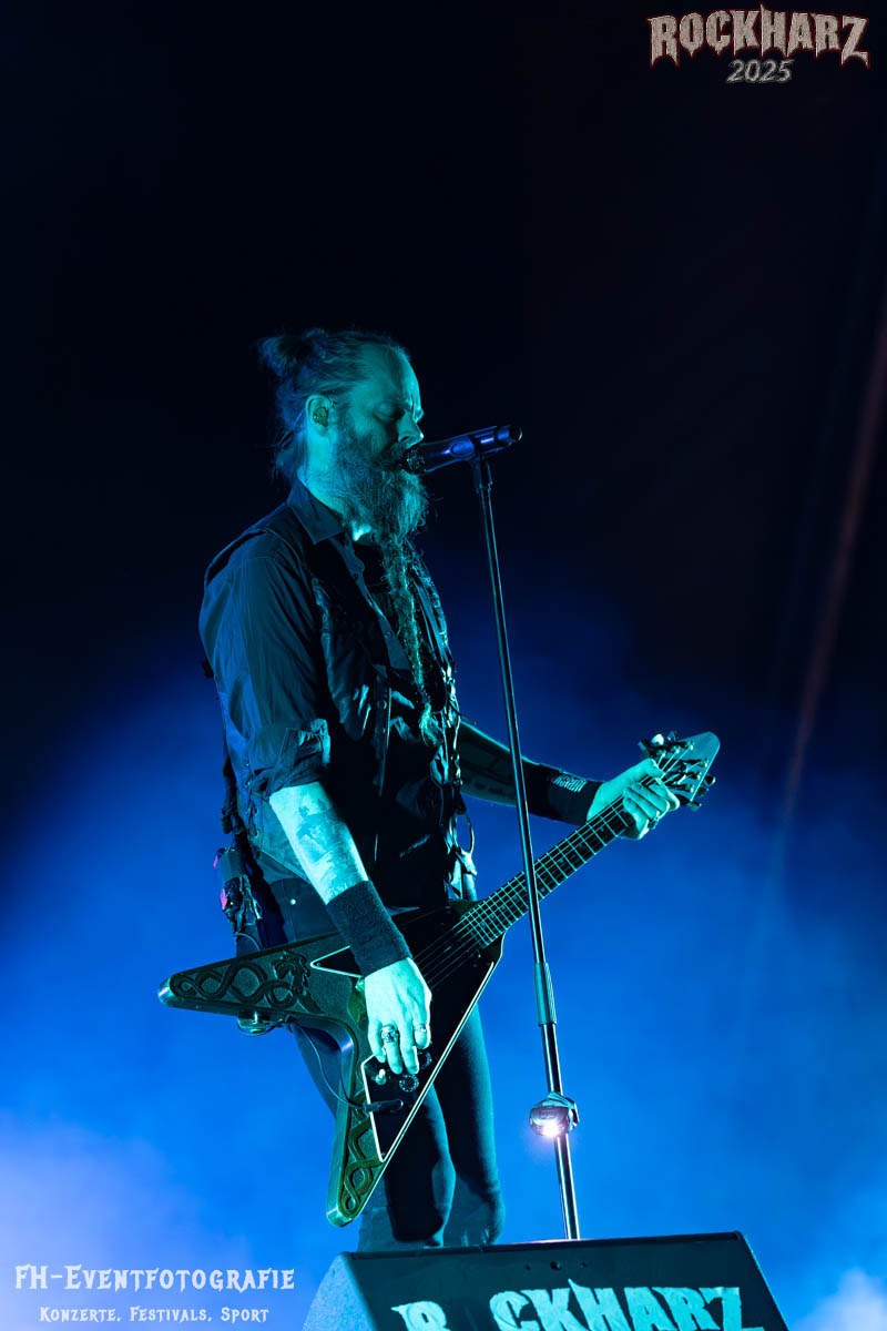 Meine Perle aus diesem Set war und ist eine Neuentdeckung für mich. SÓLSTAFIR aus Island muss man erlebt haben. Progressiv trifft Sludge und das Ganze übermalt mit Metalblues. Als ob sie, wie man den großen Bluesgöttern nachsagt, einen Pakt mit dem Teufel haben, haben SÓLSTAFIR einen Klangteppich vor der Teufelsmauer ausgebreitet, der seinesgleichen suchen wird. Ich habe noch nie so viele wirklich ergriffene und fast entrückt auf die Bühne schauende Menschen gesehen. Auch mich haben sie absolut in ihren Bann gezogen. Ich habe kaum den Kopf gehabt, mich auf das Fotografieren zu konzentrieren. Ein unfassbar beeindruckender Abschluss für diesen Tag auf dem „Rockharz 2025“