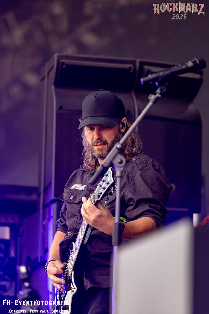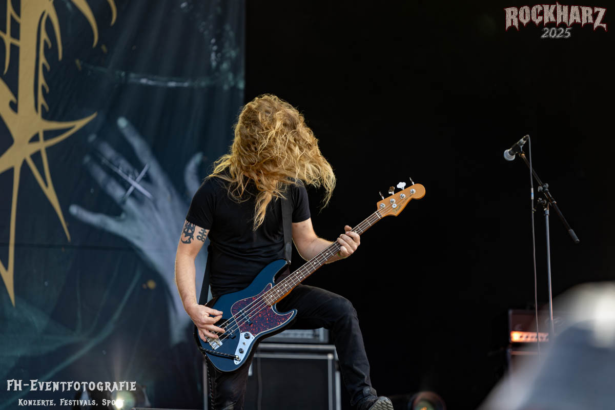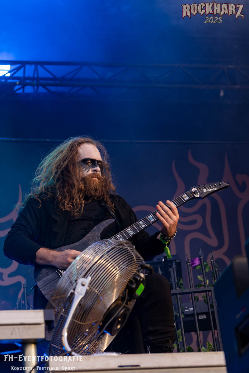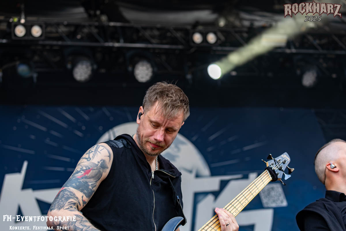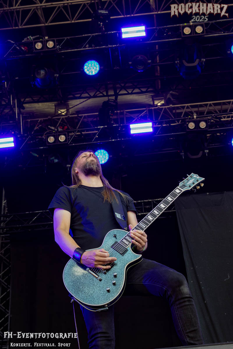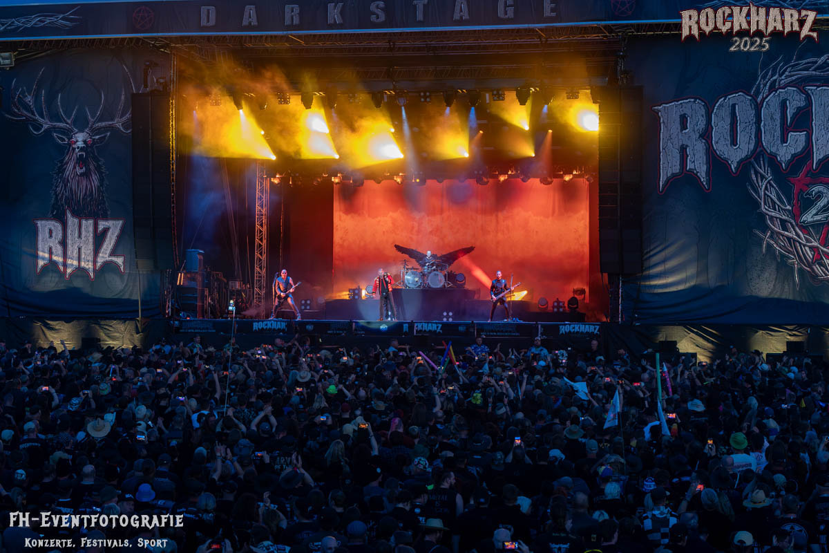 Meine Perle aus diesem Set war und ist eine Neuentdeckung für mich. SÓLSTAFIR aus Island muss man erlebt haben. Progressiv trifft Sludge und das Ganze übermalt mit Metalblues. Als ob sie, wie man den großen Bluesgöttern nachsagt, einen Pakt mit dem Teufel haben, haben SÓLSTAFIR einen Klangteppich vor der Teufelsmauer ausgebreitet, der seinesgleichen suchen wird. Ich habe noch nie so viele wirklich ergriffene und fast entrückt auf die Bühne schauende Menschen gesehen. Auch mich haben sie absolut in ihren Bann gezogen. Ich habe kaum den Kopf gehabt, mich auf das Fotografieren zu konzentrieren. Ein unfassbar beeindruckender Abschluss für diesen Tag auf dem „Rockharz 2025“