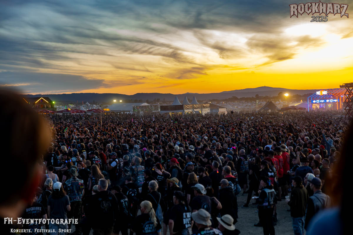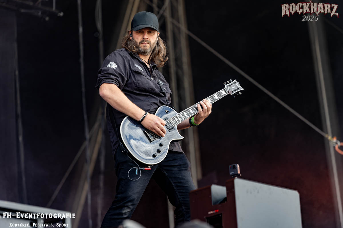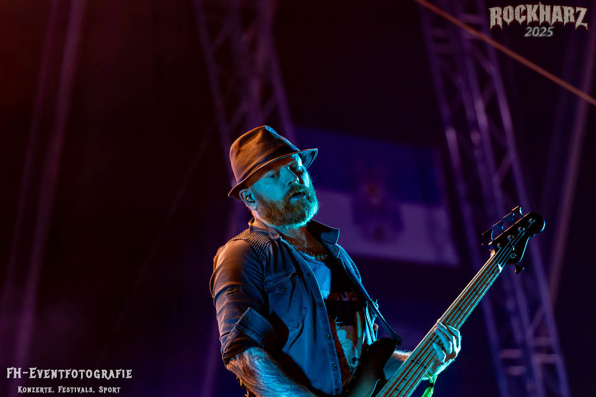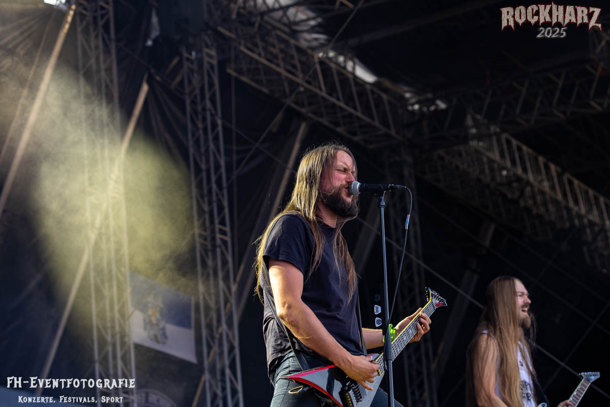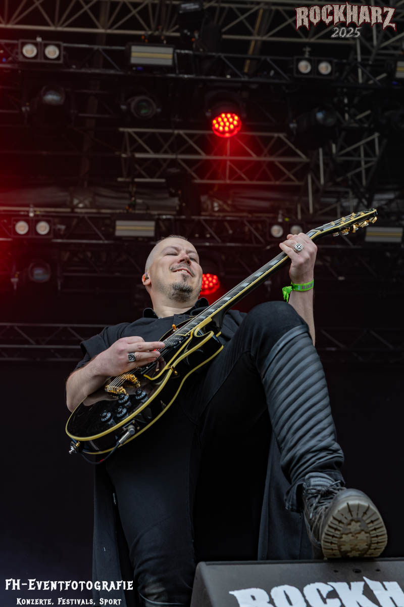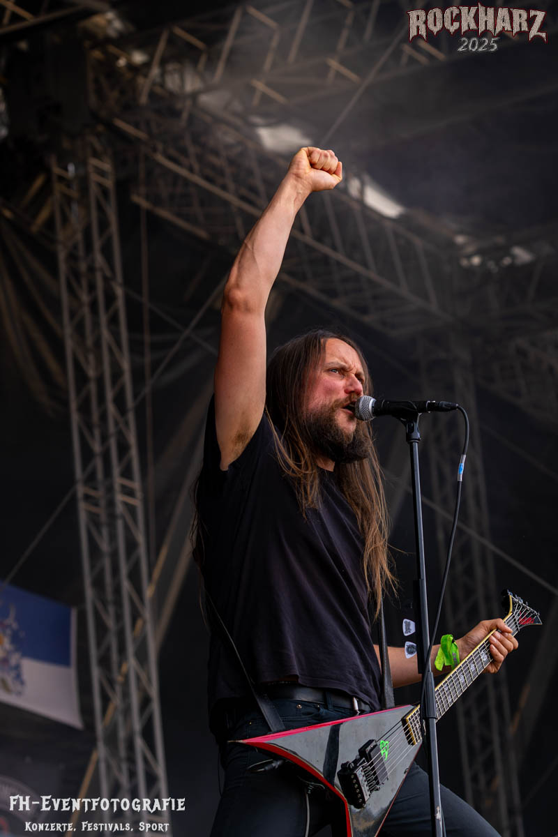 Meine Perle aus diesem Set war und ist eine Neuentdeckung für mich. SÓLSTAFIR aus Island muss man erlebt haben. Progressiv trifft Sludge und das Ganze übermalt mit Metalblues. Als ob sie, wie man den großen Bluesgöttern nachsagt, einen Pakt mit dem Teufel haben, haben SÓLSTAFIR einen Klangteppich vor der Teufelsmauer ausgebreitet, der seinesgleichen suchen wird. Ich habe noch nie so viele wirklich ergriffene und fast entrückt auf die Bühne schauende Menschen gesehen. Auch mich haben sie absolut in ihren Bann gezogen. Ich habe kaum den Kopf gehabt, mich auf das Fotografieren zu konzentrieren. Ein unfassbar beeindruckender Abschluss für diesen Tag auf dem „Rockharz 2025“