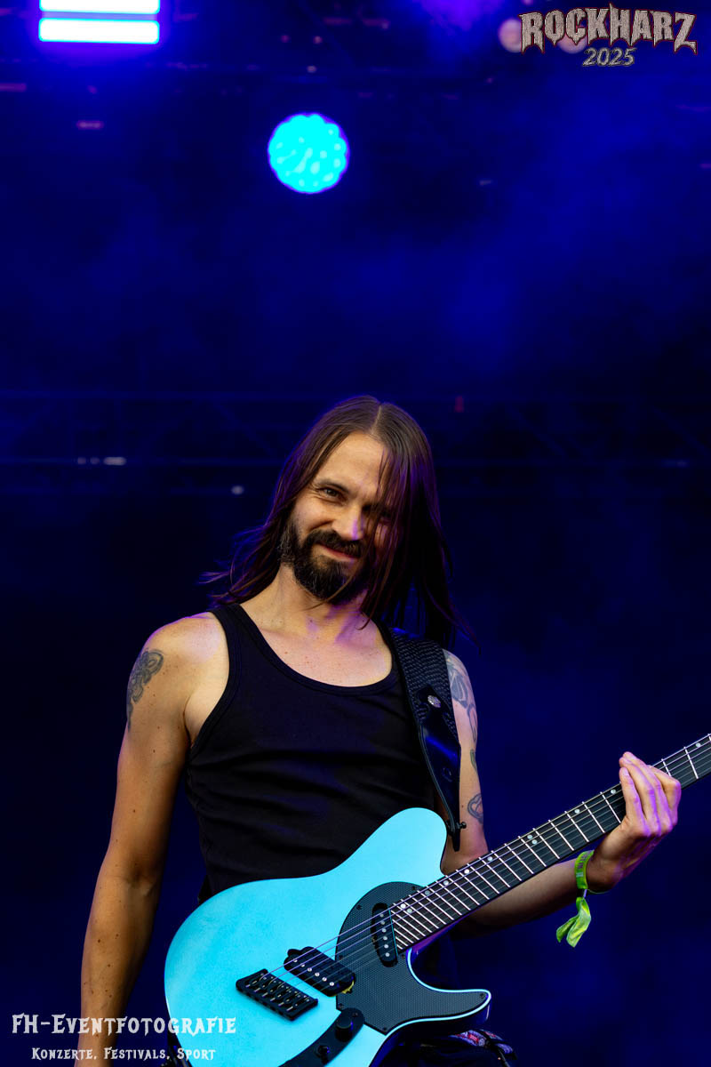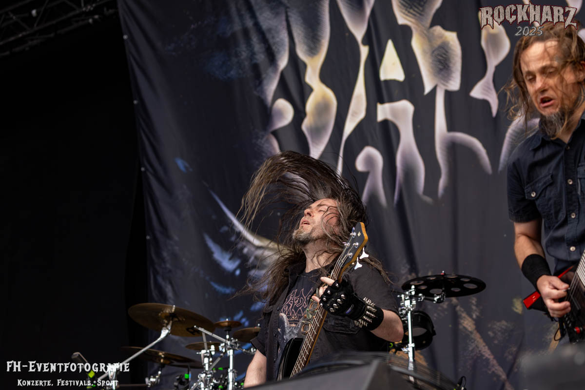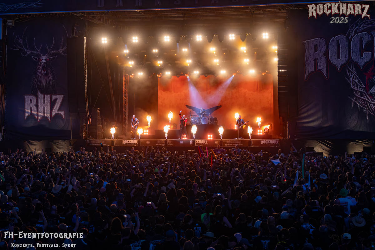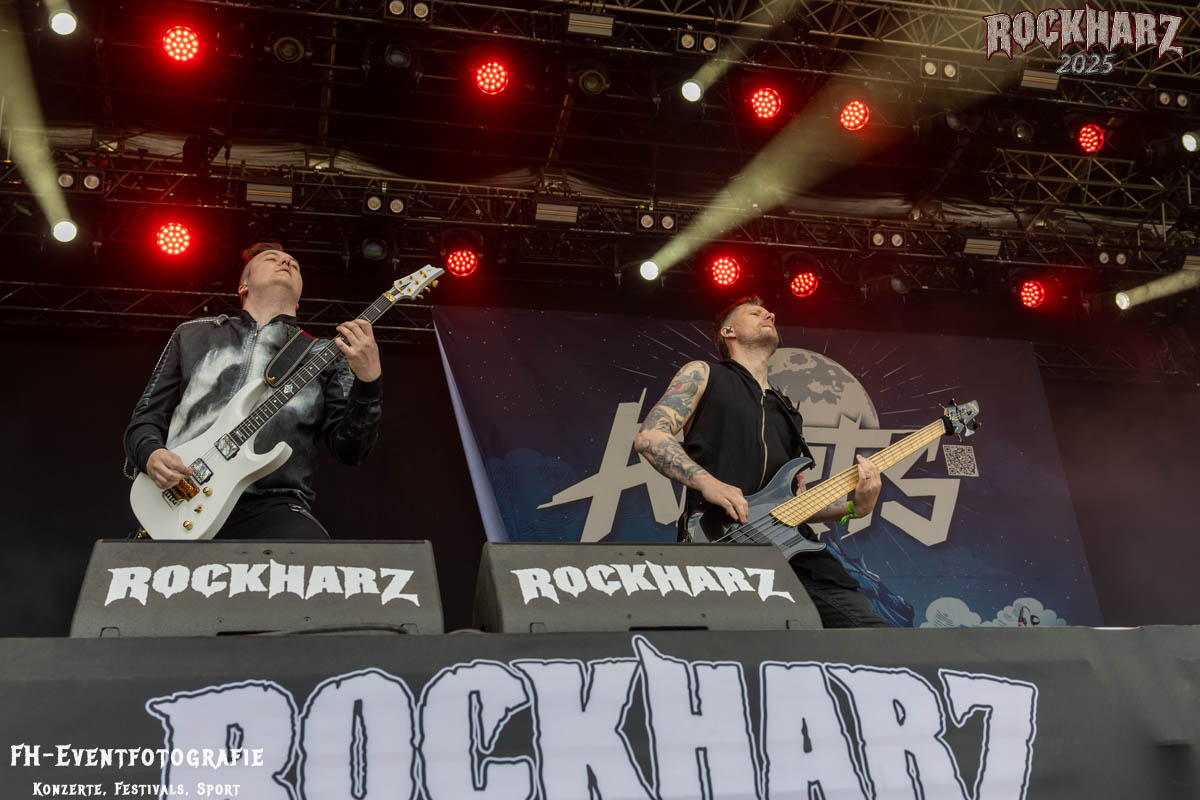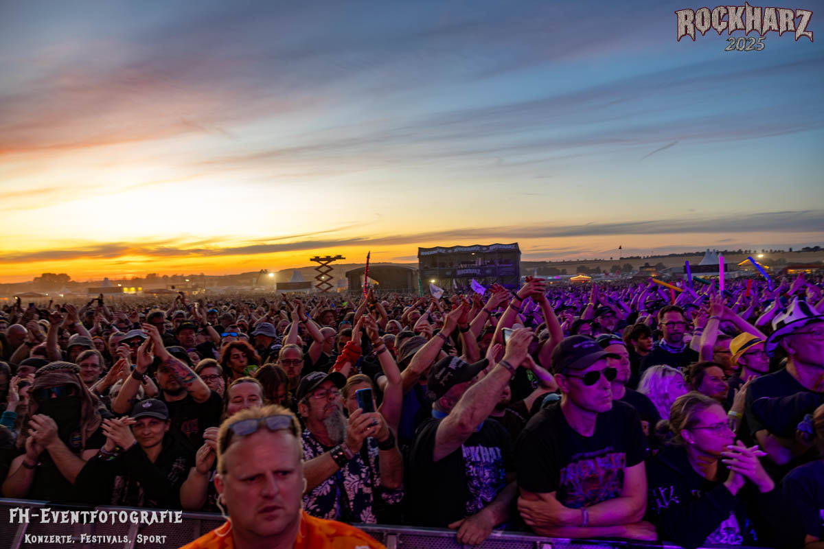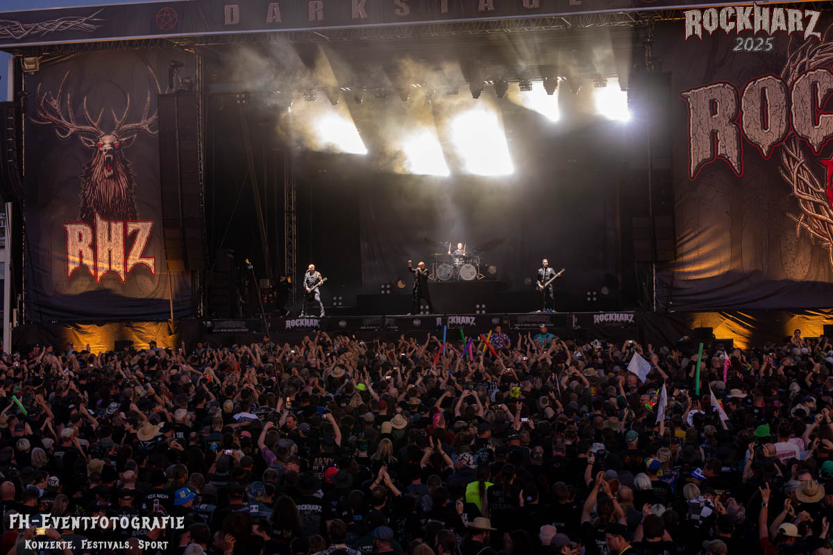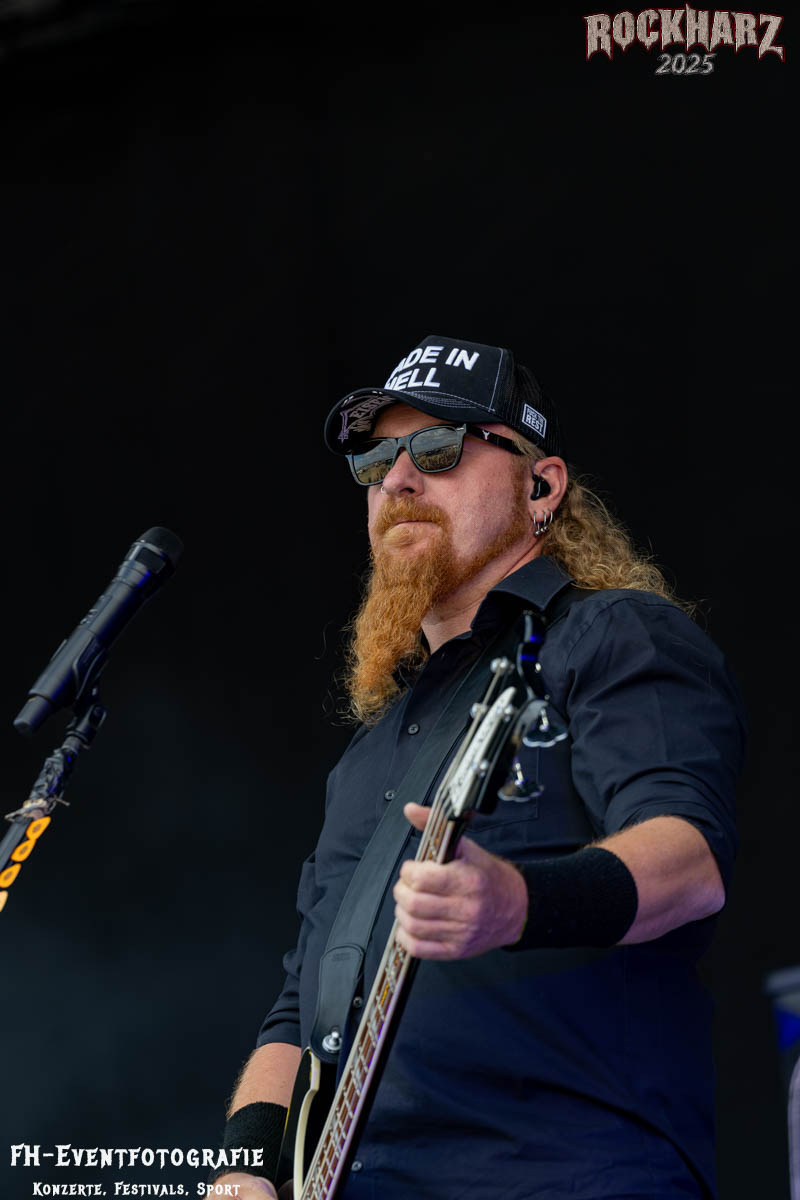 Meine Perle aus diesem Set war und ist eine Neuentdeckung für mich. SÓLSTAFIR aus Island muss man erlebt haben. Progressiv trifft Sludge und das Ganze übermalt mit Metalblues. Als ob sie, wie man den großen Bluesgöttern nachsagt, einen Pakt mit dem Teufel haben, haben SÓLSTAFIR einen Klangteppich vor der Teufelsmauer ausgebreitet, der seinesgleichen suchen wird. Ich habe noch nie so viele wirklich ergriffene und fast entrückt auf die Bühne schauende Menschen gesehen. Auch mich haben sie absolut in ihren Bann gezogen. Ich habe kaum den Kopf gehabt, mich auf das Fotografieren zu konzentrieren. Ein unfassbar beeindruckender Abschluss für diesen Tag auf dem „Rockharz 2025“