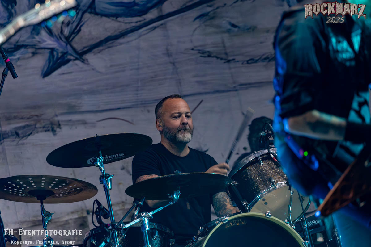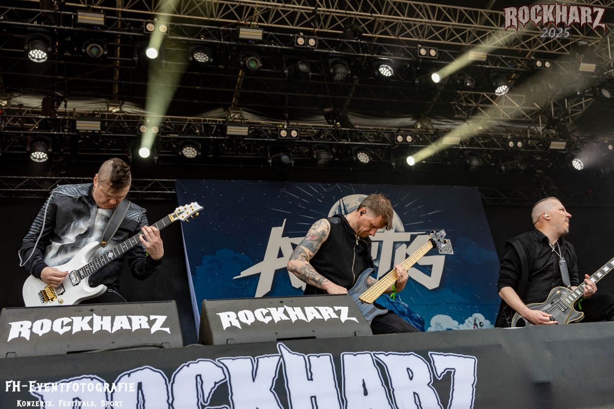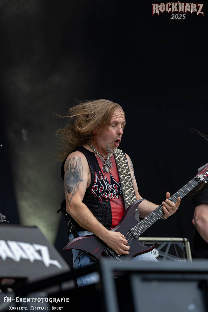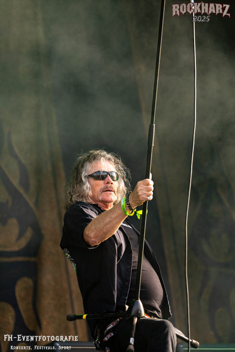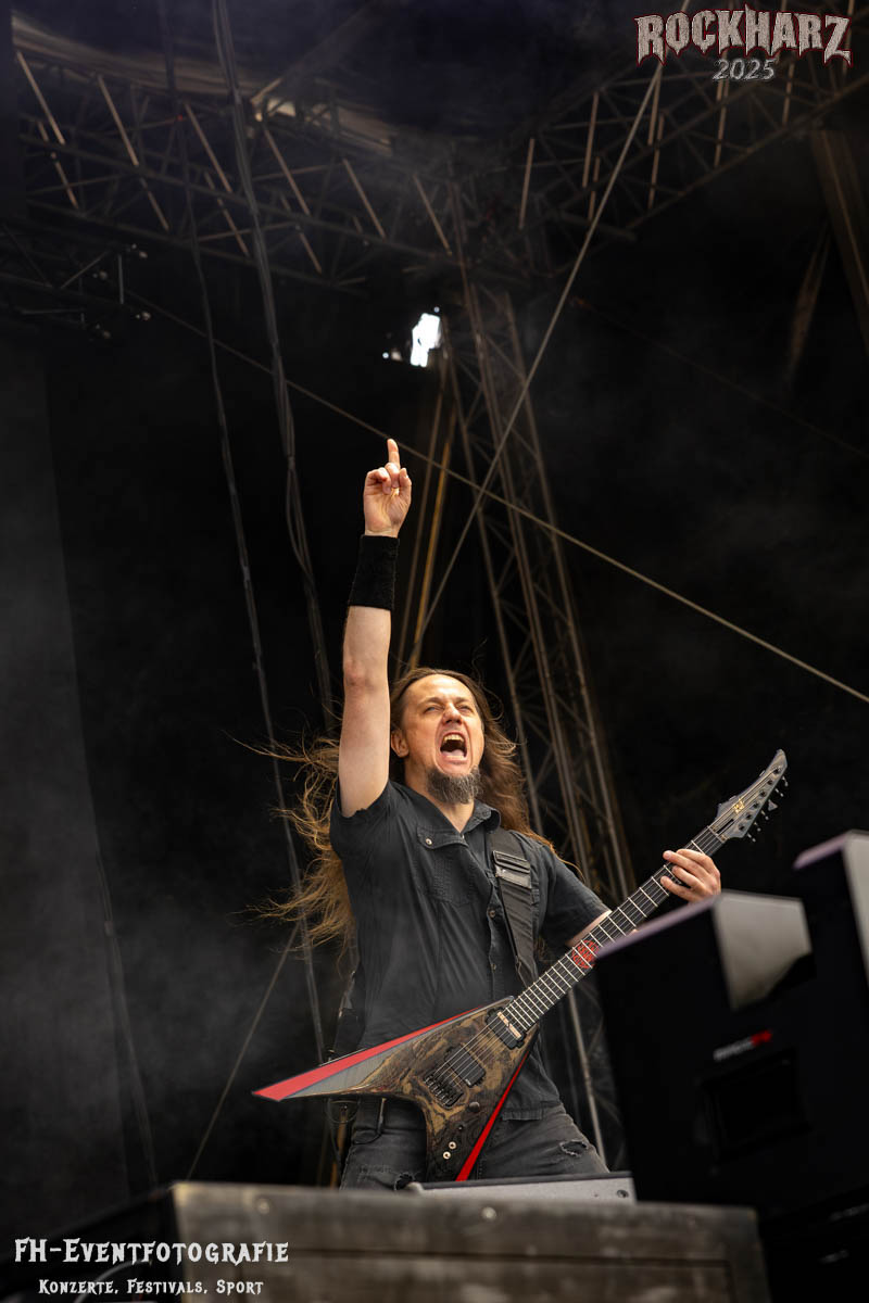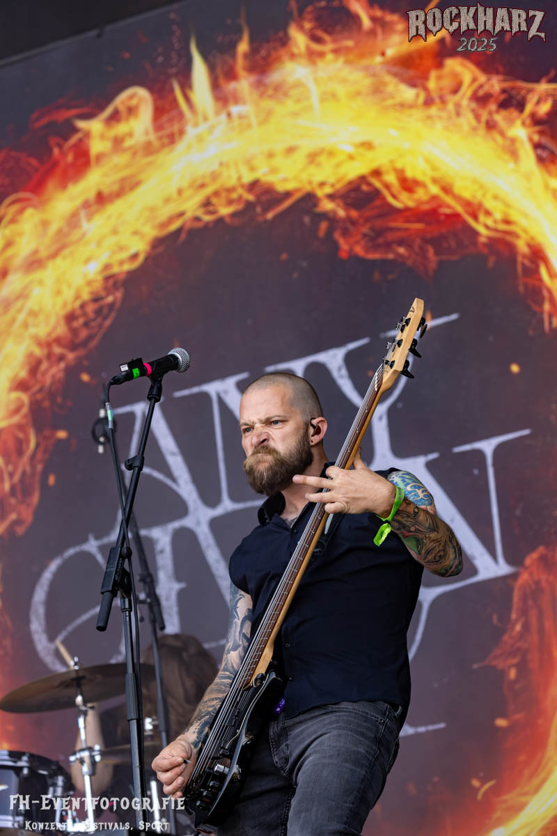 Meine Perle aus diesem Set war und ist eine Neuentdeckung für mich. SÓLSTAFIR aus Island muss man erlebt haben. Progressiv trifft Sludge und das Ganze übermalt mit Metalblues. Als ob sie, wie man den großen Bluesgöttern nachsagt, einen Pakt mit dem Teufel haben, haben SÓLSTAFIR einen Klangteppich vor der Teufelsmauer ausgebreitet, der seinesgleichen suchen wird. Ich habe noch nie so viele wirklich ergriffene und fast entrückt auf die Bühne schauende Menschen gesehen. Auch mich haben sie absolut in ihren Bann gezogen. Ich habe kaum den Kopf gehabt, mich auf das Fotografieren zu konzentrieren. Ein unfassbar beeindruckender Abschluss für diesen Tag auf dem „Rockharz 2025“