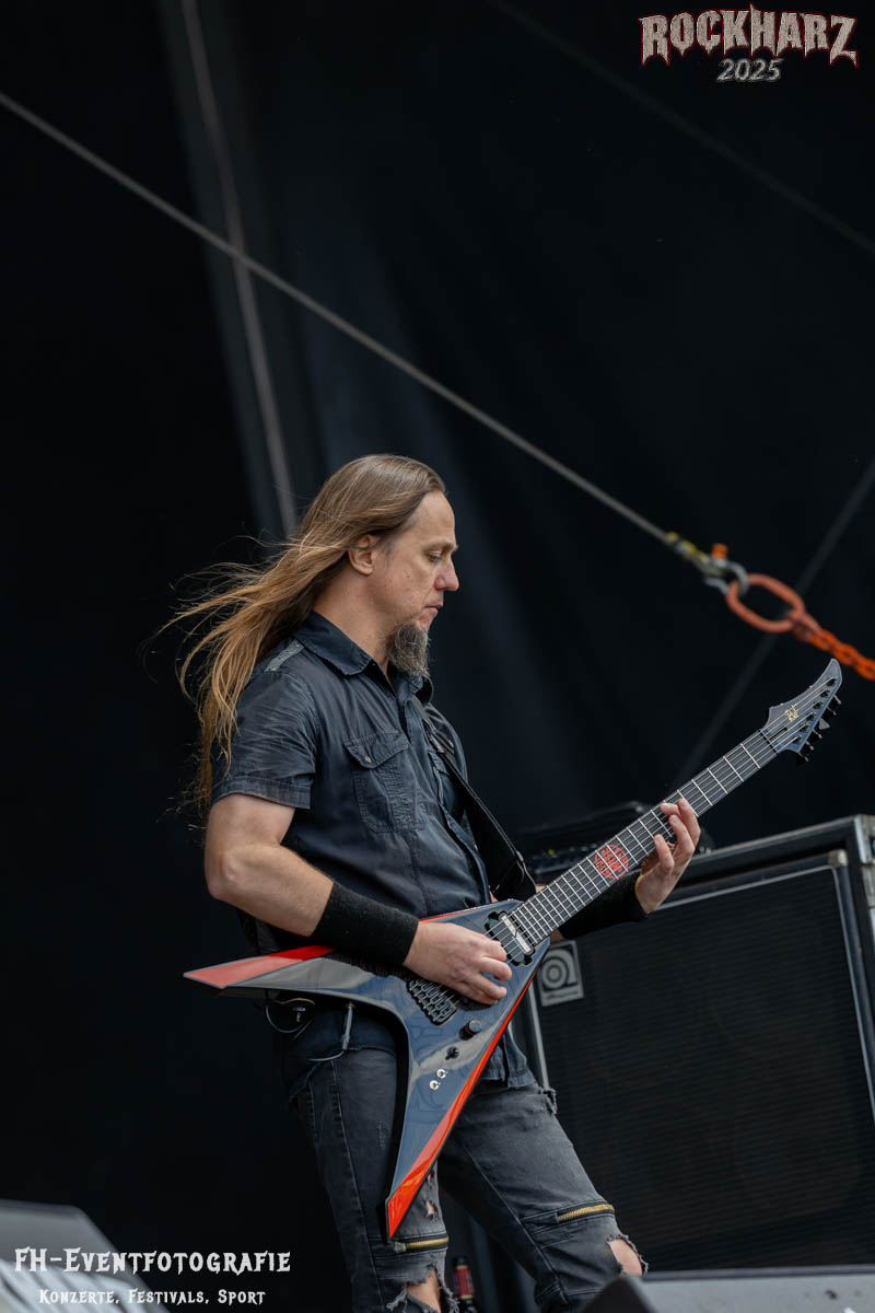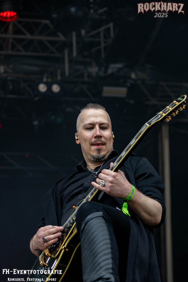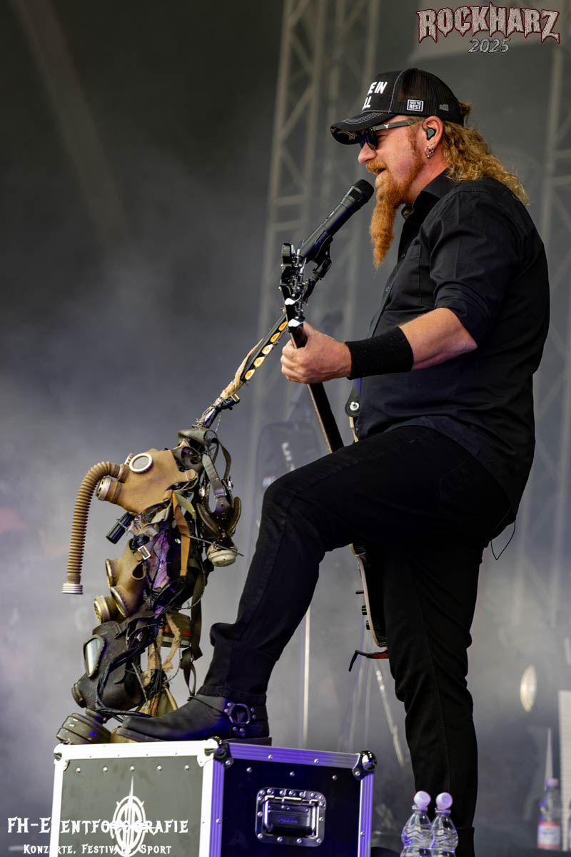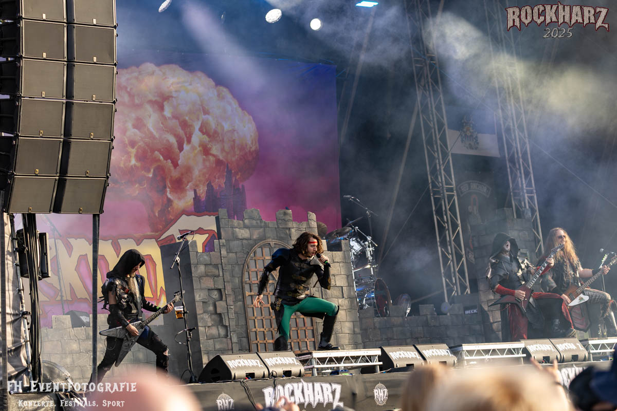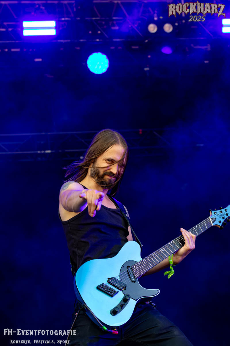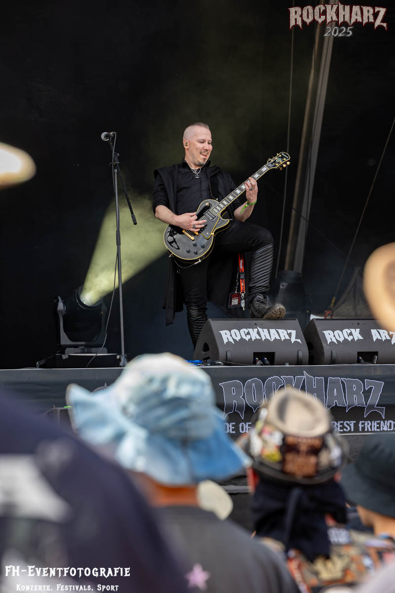 Meine Perle aus diesem Set war und ist eine Neuentdeckung für mich. SÓLSTAFIR aus Island muss man erlebt haben. Progressiv trifft Sludge und das Ganze übermalt mit Metalblues. Als ob sie, wie man den großen Bluesgöttern nachsagt, einen Pakt mit dem Teufel haben, haben SÓLSTAFIR einen Klangteppich vor der Teufelsmauer ausgebreitet, der seinesgleichen suchen wird. Ich habe noch nie so viele wirklich ergriffene und fast entrückt auf die Bühne schauende Menschen gesehen. Auch mich haben sie absolut in ihren Bann gezogen. Ich habe kaum den Kopf gehabt, mich auf das Fotografieren zu konzentrieren. Ein unfassbar beeindruckender Abschluss für diesen Tag auf dem „Rockharz 2025“