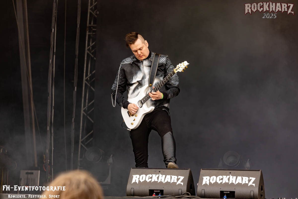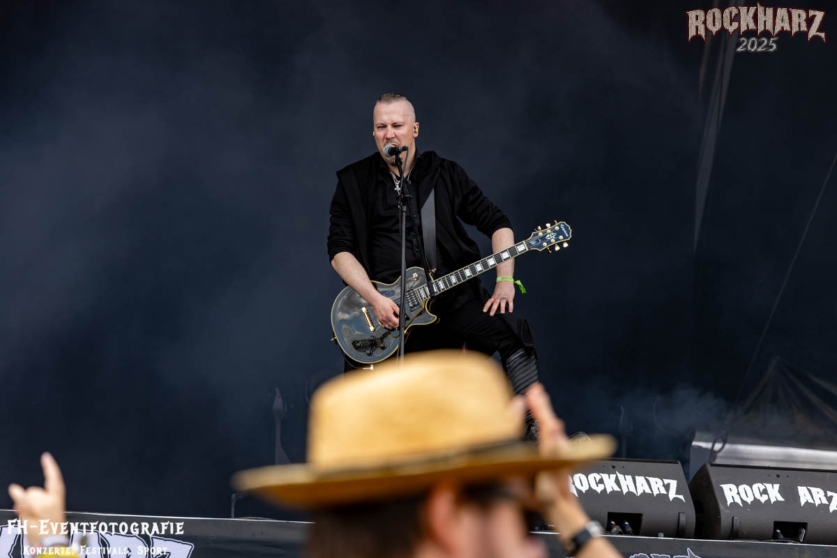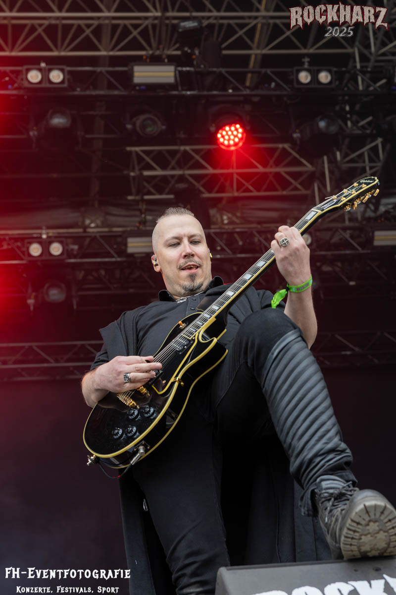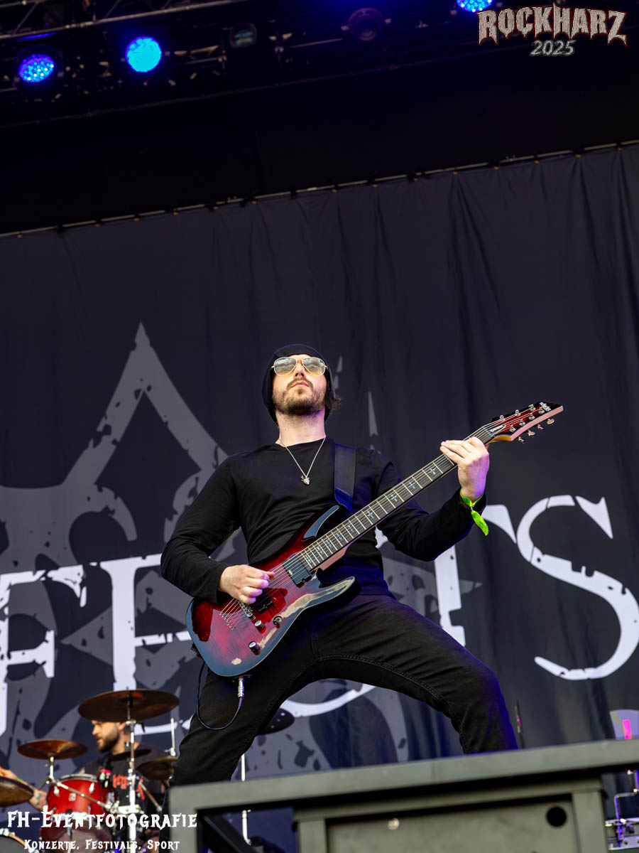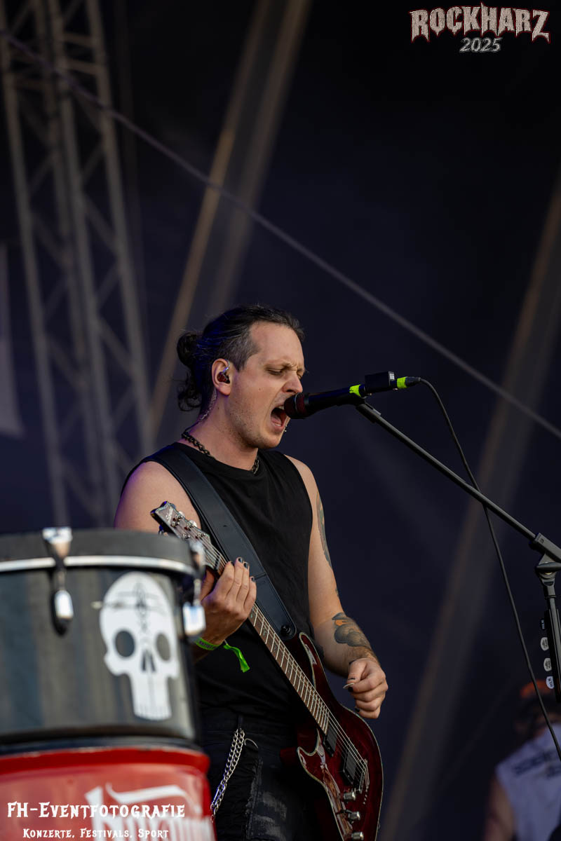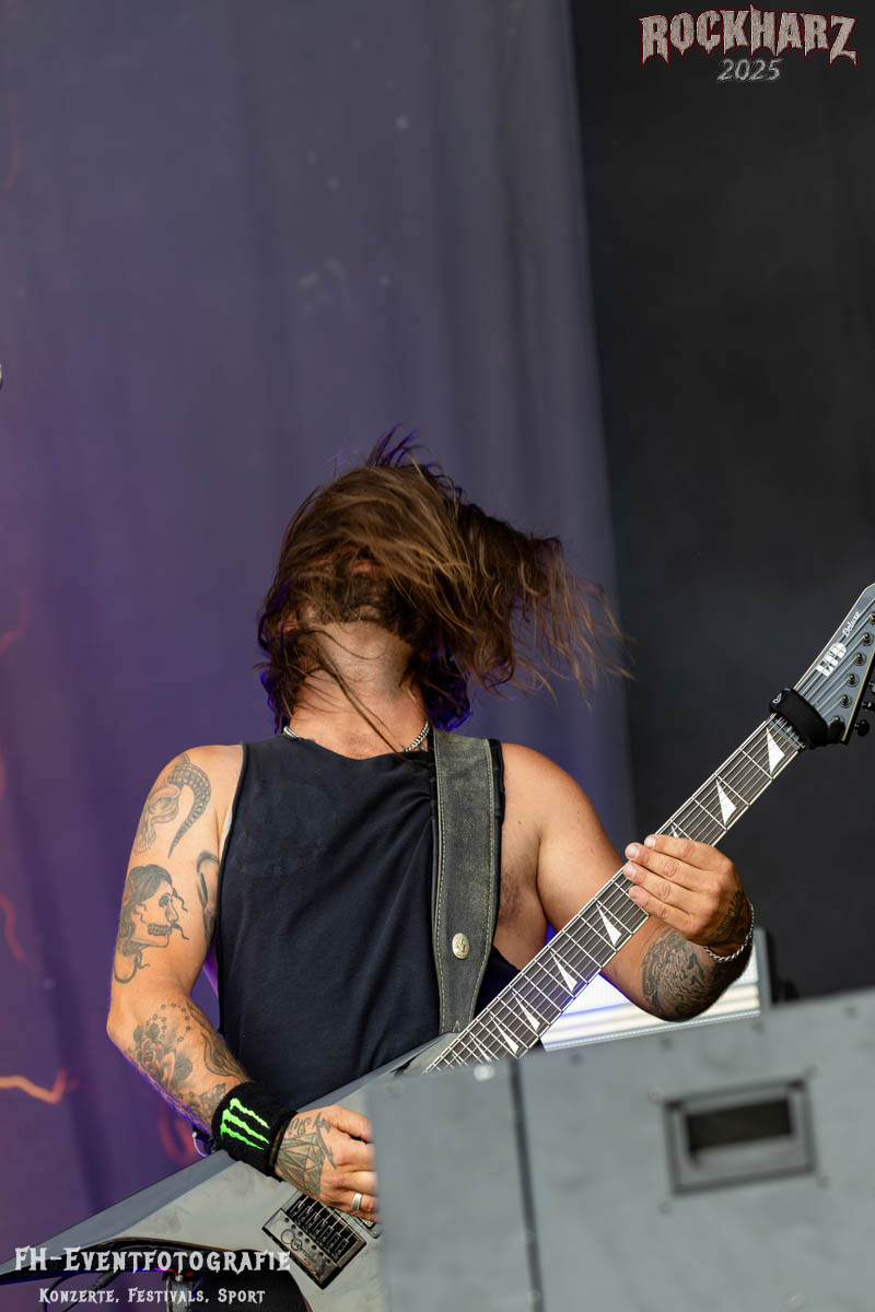 Meine Perle aus diesem Set war und ist eine Neuentdeckung für mich. SÓLSTAFIR aus Island muss man erlebt haben. Progressiv trifft Sludge und das Ganze übermalt mit Metalblues. Als ob sie, wie man den großen Bluesgöttern nachsagt, einen Pakt mit dem Teufel haben, haben SÓLSTAFIR einen Klangteppich vor der Teufelsmauer ausgebreitet, der seinesgleichen suchen wird. Ich habe noch nie so viele wirklich ergriffene und fast entrückt auf die Bühne schauende Menschen gesehen. Auch mich haben sie absolut in ihren Bann gezogen. Ich habe kaum den Kopf gehabt, mich auf das Fotografieren zu konzentrieren. Ein unfassbar beeindruckender Abschluss für diesen Tag auf dem „Rockharz 2025“