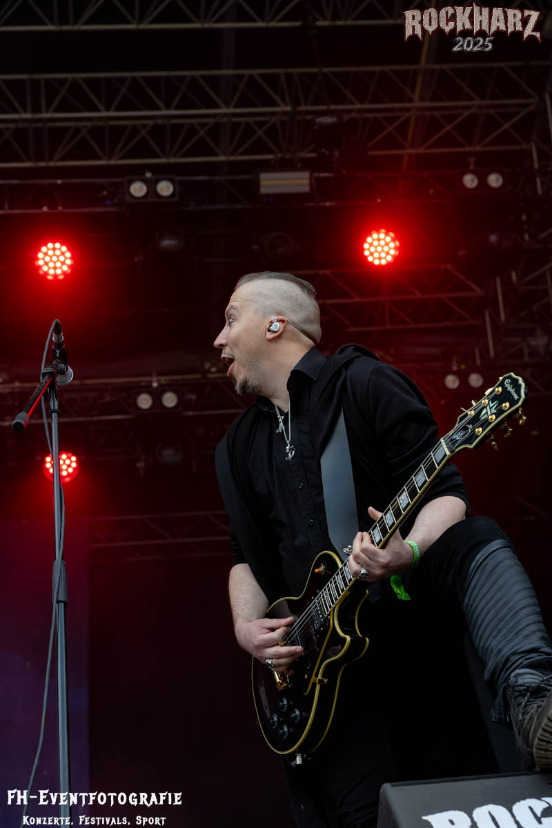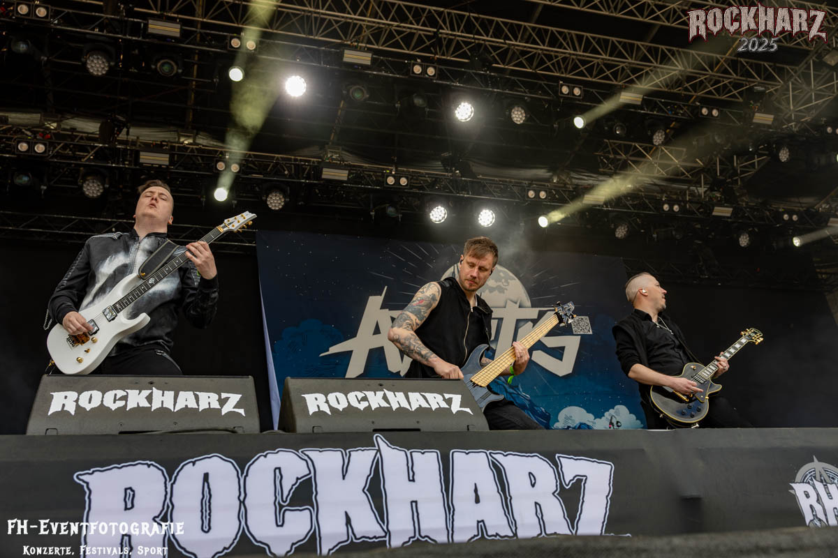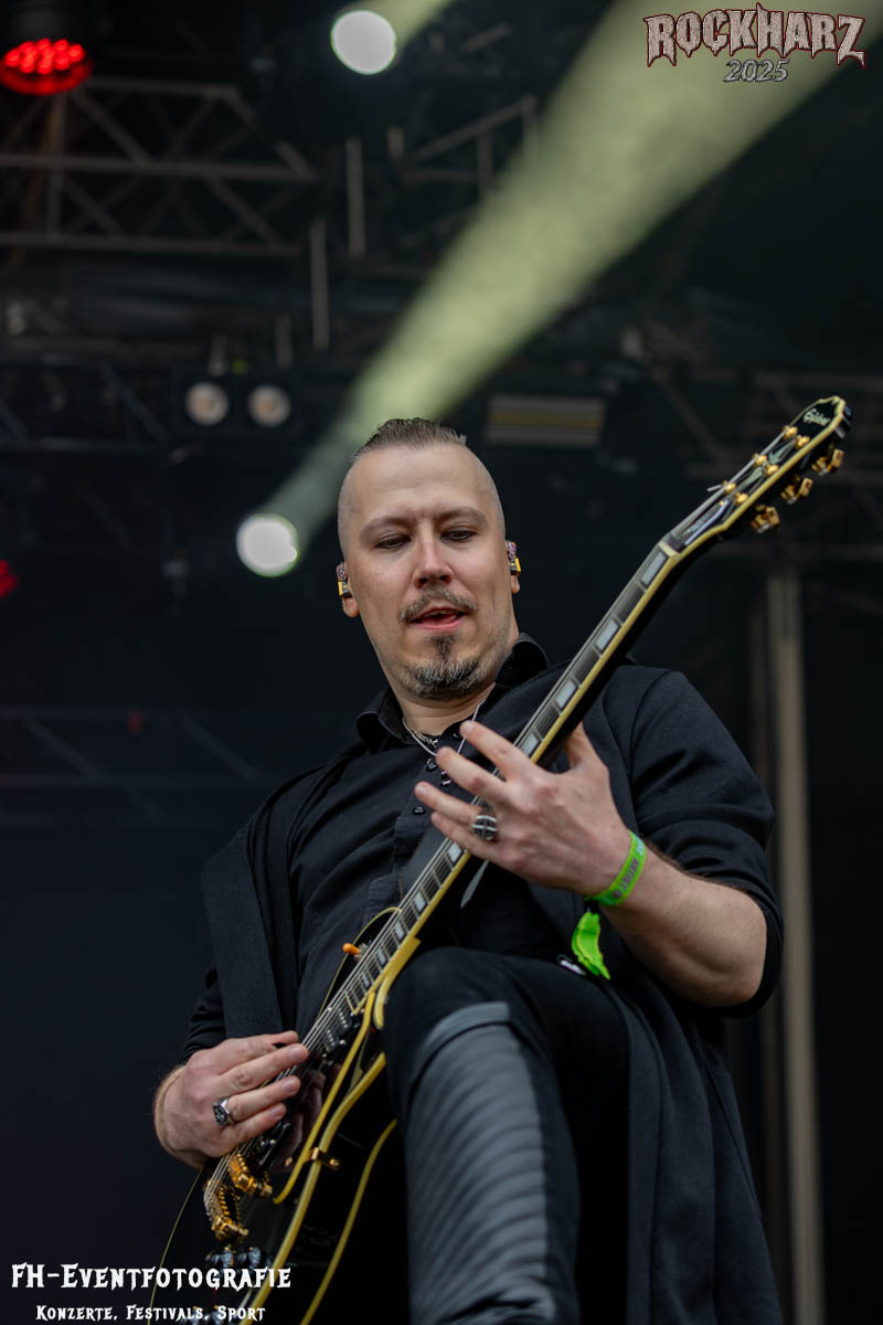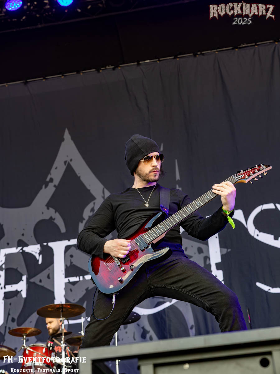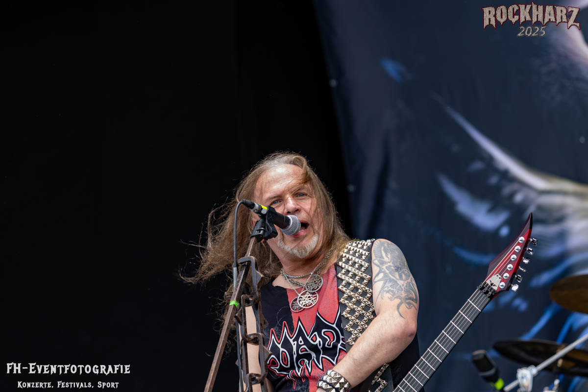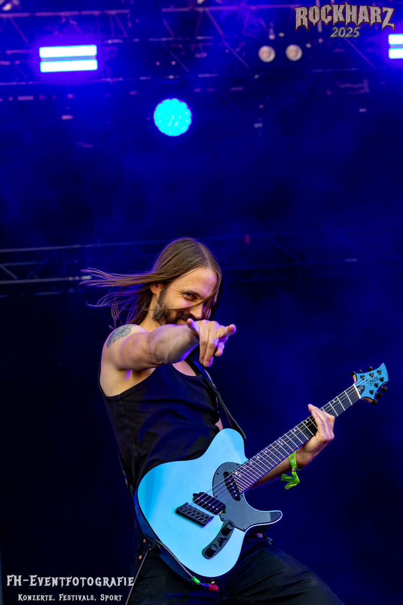 Meine Perle aus diesem Set war und ist eine Neuentdeckung für mich. SÓLSTAFIR aus Island muss man erlebt haben. Progressiv trifft Sludge und das Ganze übermalt mit Metalblues. Als ob sie, wie man den großen Bluesgöttern nachsagt, einen Pakt mit dem Teufel haben, haben SÓLSTAFIR einen Klangteppich vor der Teufelsmauer ausgebreitet, der seinesgleichen suchen wird. Ich habe noch nie so viele wirklich ergriffene und fast entrückt auf die Bühne schauende Menschen gesehen. Auch mich haben sie absolut in ihren Bann gezogen. Ich habe kaum den Kopf gehabt, mich auf das Fotografieren zu konzentrieren. Ein unfassbar beeindruckender Abschluss für diesen Tag auf dem „Rockharz 2025“