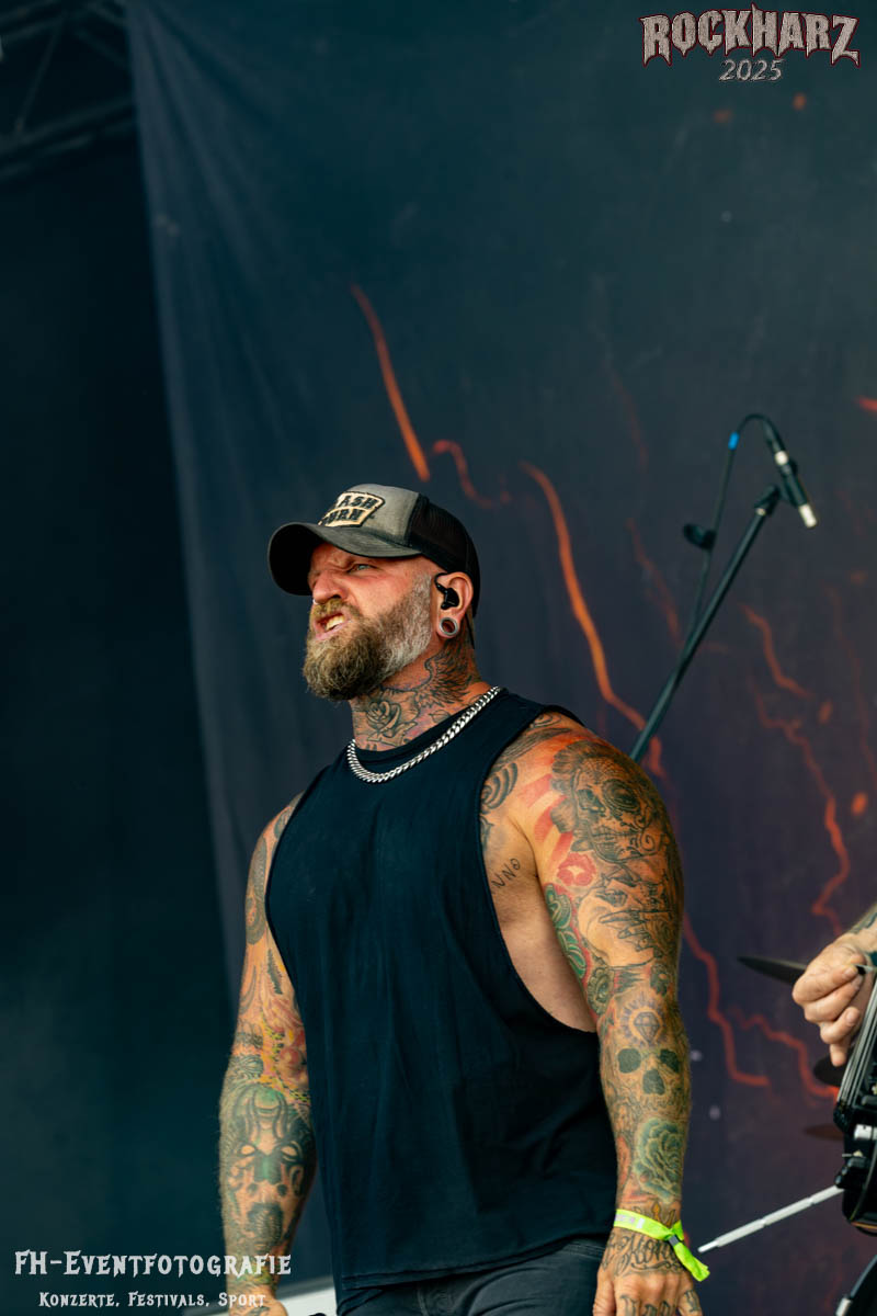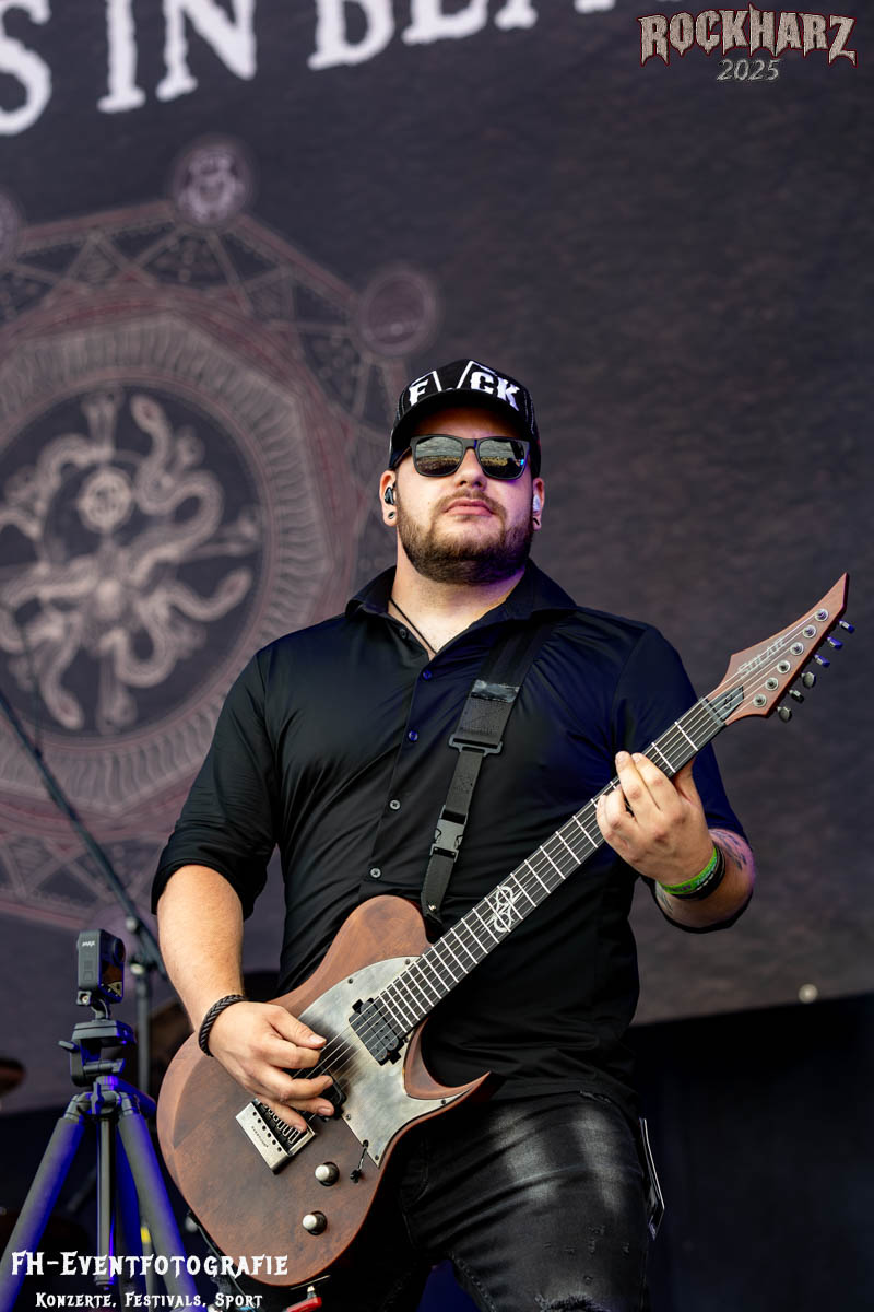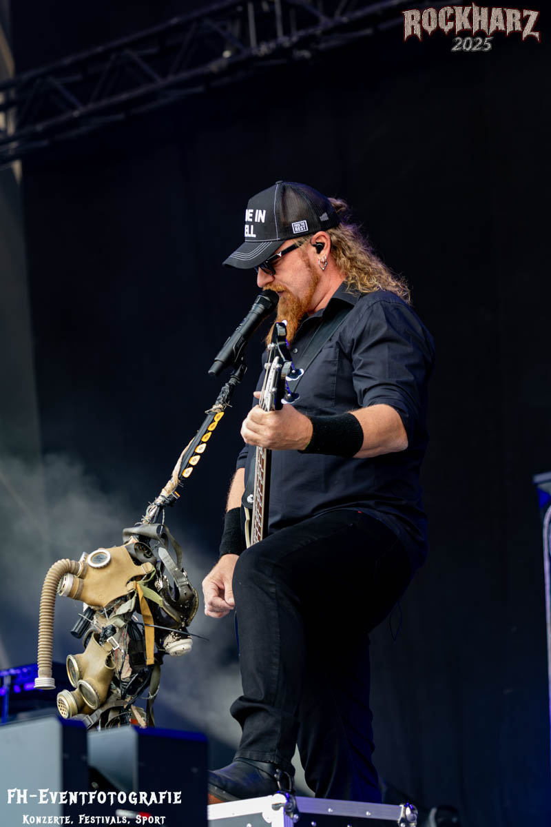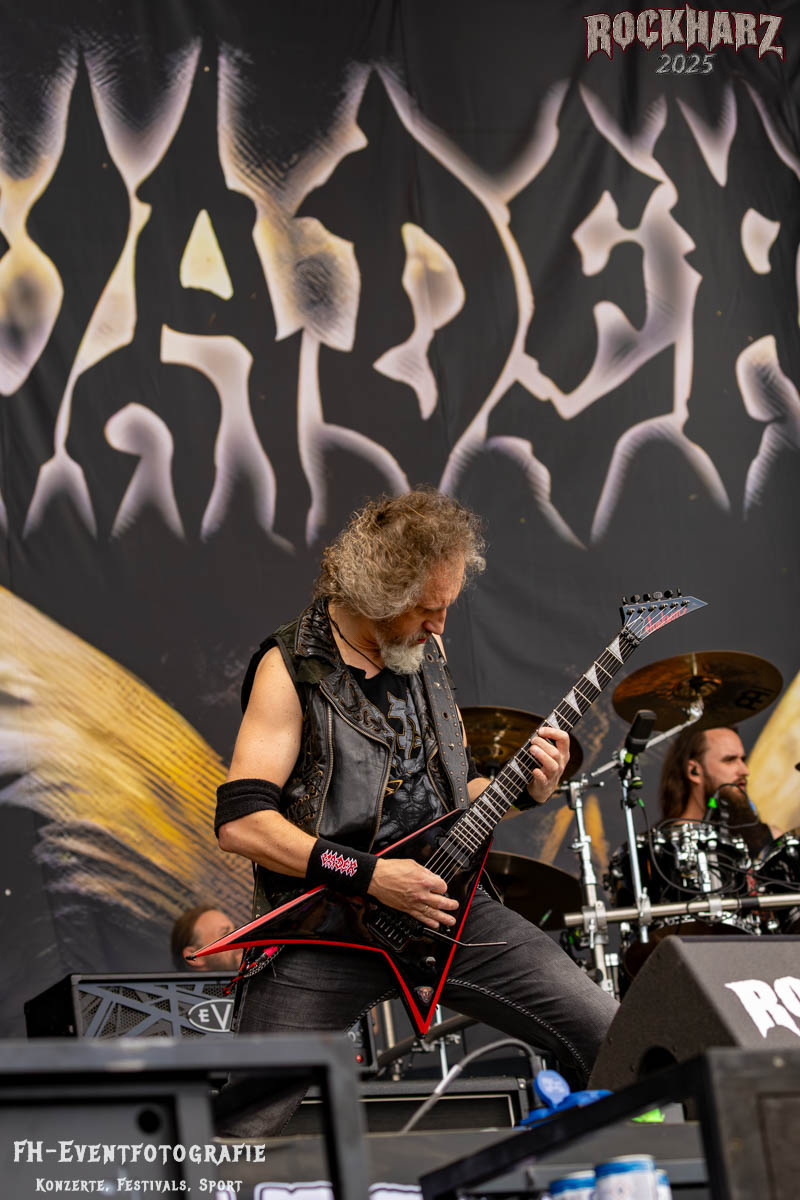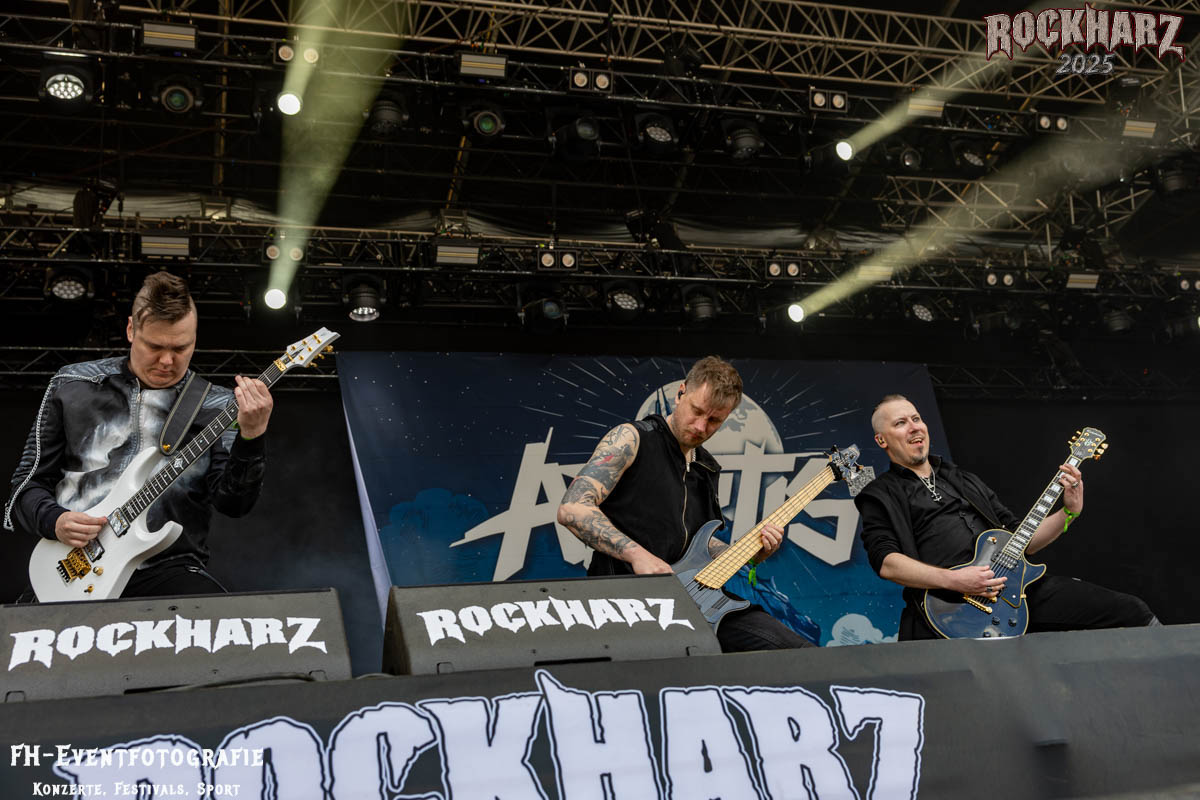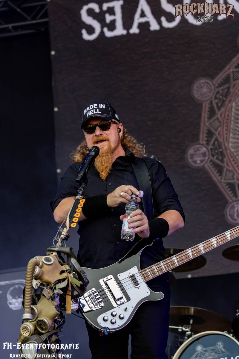 Meine Perle aus diesem Set war und ist eine Neuentdeckung für mich. SÓLSTAFIR aus Island muss man erlebt haben. Progressiv trifft Sludge und das Ganze übermalt mit Metalblues. Als ob sie, wie man den großen Bluesgöttern nachsagt, einen Pakt mit dem Teufel haben, haben SÓLSTAFIR einen Klangteppich vor der Teufelsmauer ausgebreitet, der seinesgleichen suchen wird. Ich habe noch nie so viele wirklich ergriffene und fast entrückt auf die Bühne schauende Menschen gesehen. Auch mich haben sie absolut in ihren Bann gezogen. Ich habe kaum den Kopf gehabt, mich auf das Fotografieren zu konzentrieren. Ein unfassbar beeindruckender Abschluss für diesen Tag auf dem „Rockharz 2025“