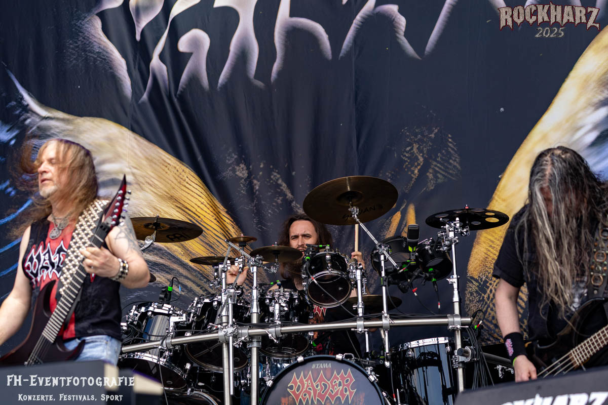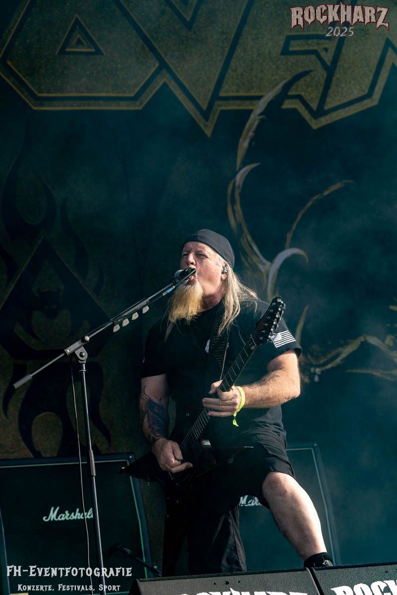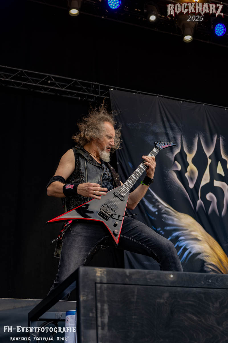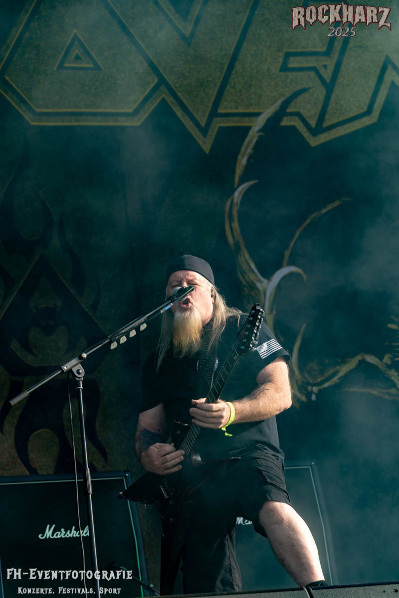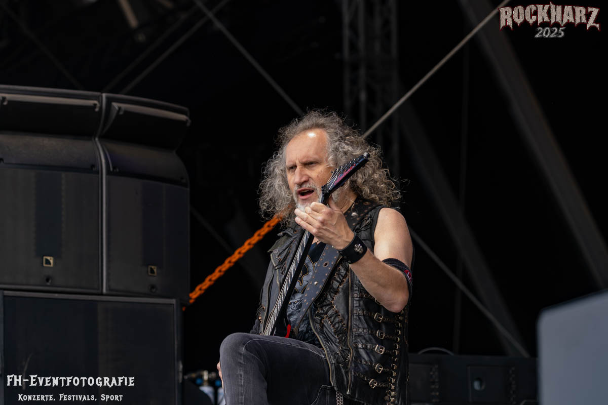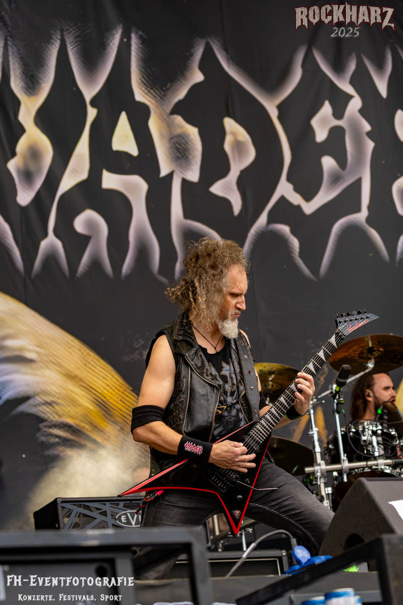 Band Nummer drei ist Overkill. Im Tageskalender die 11. Band des Tages. Mit 45 Jahren Bühnenerfahrung stehen die New Yorker schon als Band auf der Bühne. Deren Thrash Metal ist so stabil und gut, dass sie einfach wenig bis gar nichts falsch machen können. Und das haben sie auf dem RHZ 2025 wirklich und solide bewiesen. Ich habe dieses Konzert zum Kaffee und Quark beschaffen und genutzt. Der Quark war eine Empfehlung einer lieben Kollegin und der Kaffee ist auf dem RHZ immer richtig gut. Also was Leckeres zu essen und zu trinken und dazu geile Musik.