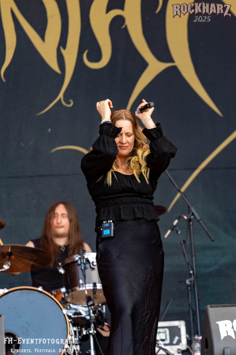 Es ging unbekannt, aber hochkarätig weiter. Wir starten diese Runde mit der französischen Band Aephanemer. Erst gewinnen sie das »Metal-Battle« der Wackenfoundation in Frankreich und nun waren sie auf dem RHZ. Diese Death-Metal-Band mit einer Frontfrau war für mich trotz ihrer Reise über das Wacken absolut unbekannt. Allerdings muss ich sagen, dass ich da was verpasst habe, und so wie es ausschaute war ich mal wieder eher schlecht informiert. So viele Fans wie vor der Bühne waren, hat diese Formation bereits deutlich mehr Fans und Bekanntheit, als ich mir vorstellen konnte.