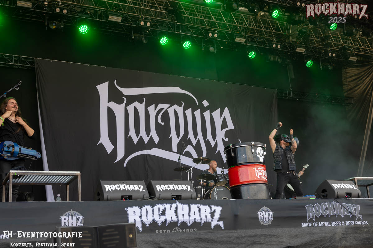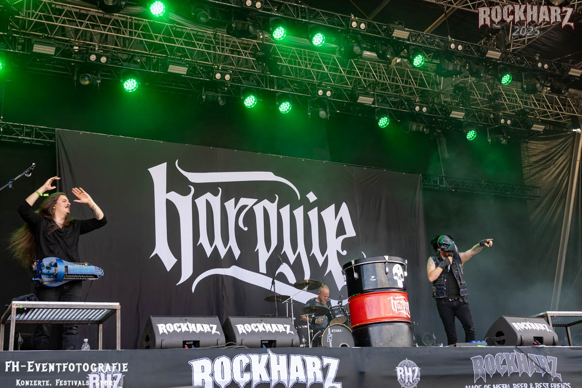 Den Abschluss für heute machen wir mit HARPYIE. Die Ostwestfalen hatten es nach der geballten Power von „Defects“ echt nicht leicht. Selbst der Dudelsack und auch die geballte Instrumentalpower dieser Mittelalter-Metal-Band konnten leider nicht alle Fans vor der Bühne halten. Klar, ist ein völlig anderes Genre und dazu noch die Texte auf Deutsch, das war sicher für den ein oder anderen Fan zu viel des Unterschiedes. Nichtsdestotrotz ein reichlich gelungener Auftritt der Deutschen-Metal-Barden.
