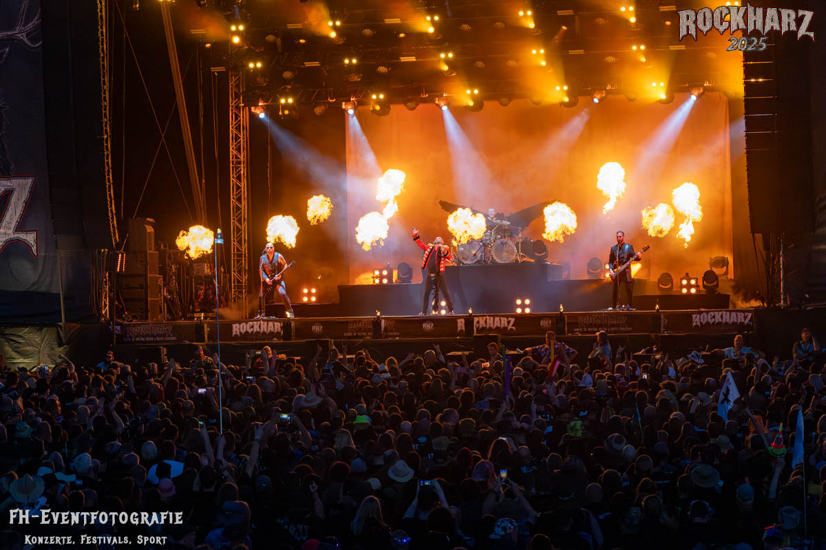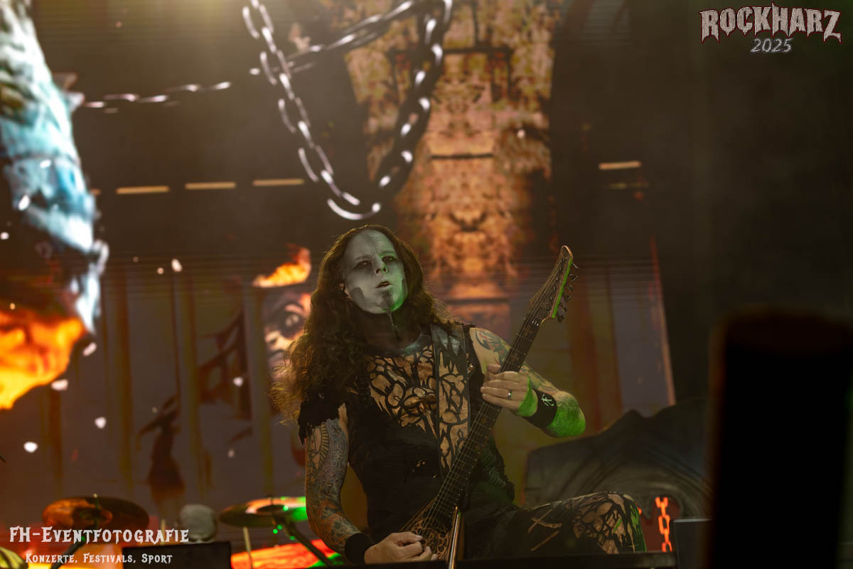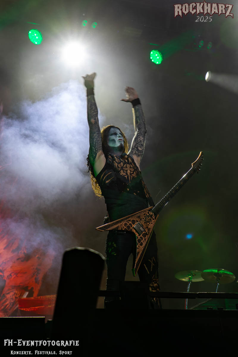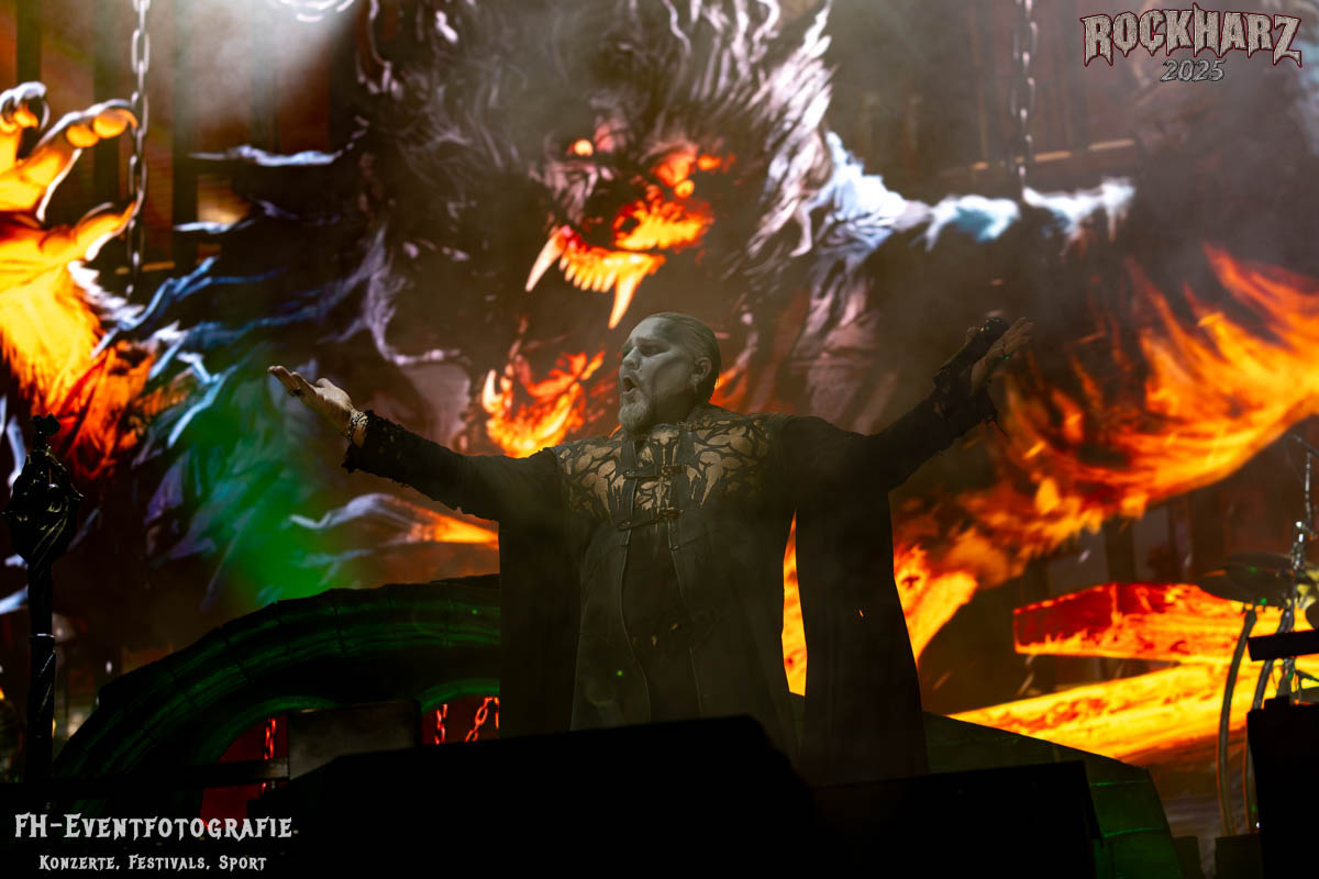 Den viertletzten Auftritt hatten Cradle of Filth. „Dani Filth“ hatte wirklich Bock. Ich habe auch schon Konzerte der Briten erlebt, wo der Funker irgendwie nicht so richtig übersprang. Auf dem Rockharz hat das dieses Mal aber mal sowas von geklappt. Sie haben ein wunderbares Set aus den ganzen Klassikern gespielt. Ja, mag eine Set gewesen sein, das auf Nummer sicher setzte, aber ich habe mich ausgesprochen gut unterhalten gefühlt. Die PA hat ja bei der Range der Stimme des Herrn Filth, egal wo, immer ihre Probleme, aber das RHZ hatte das dieses Jahr wirklich sauber im Griff.