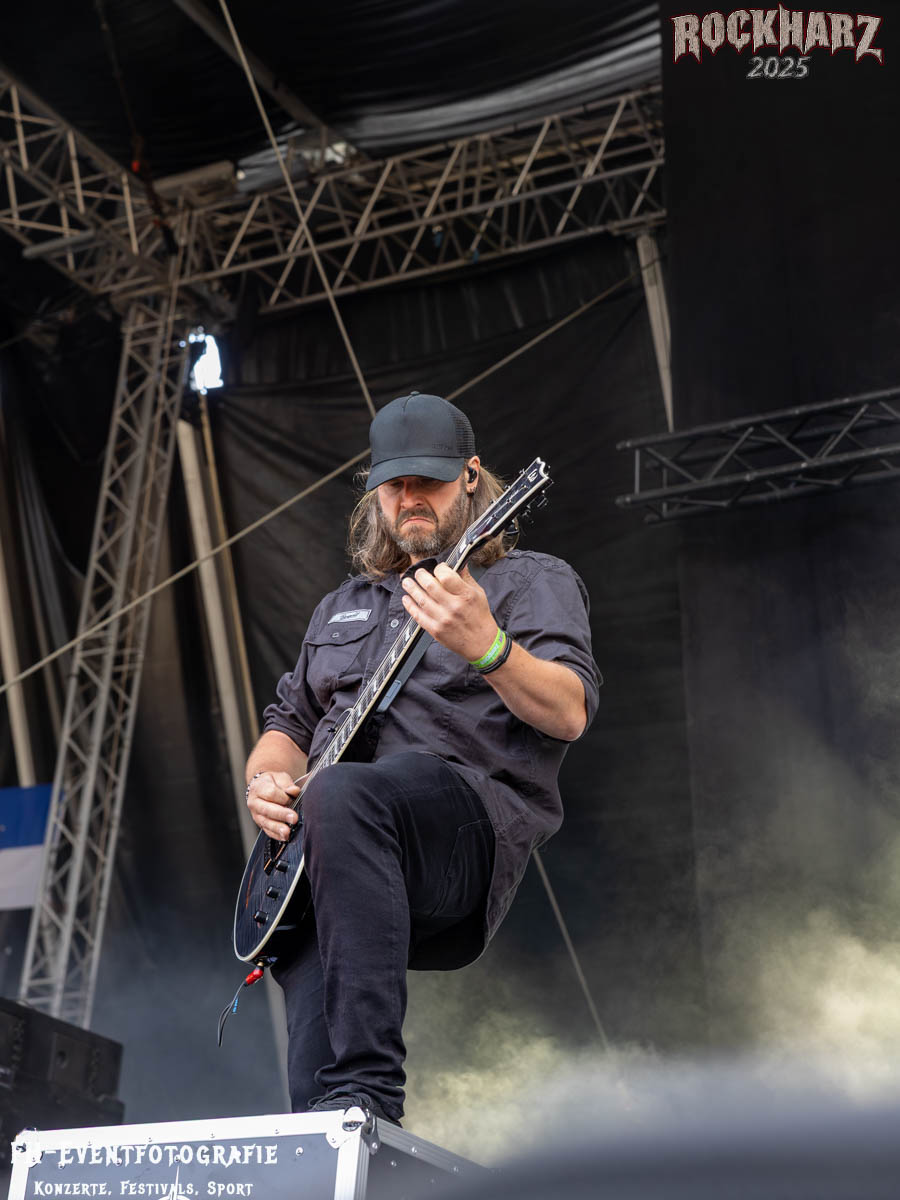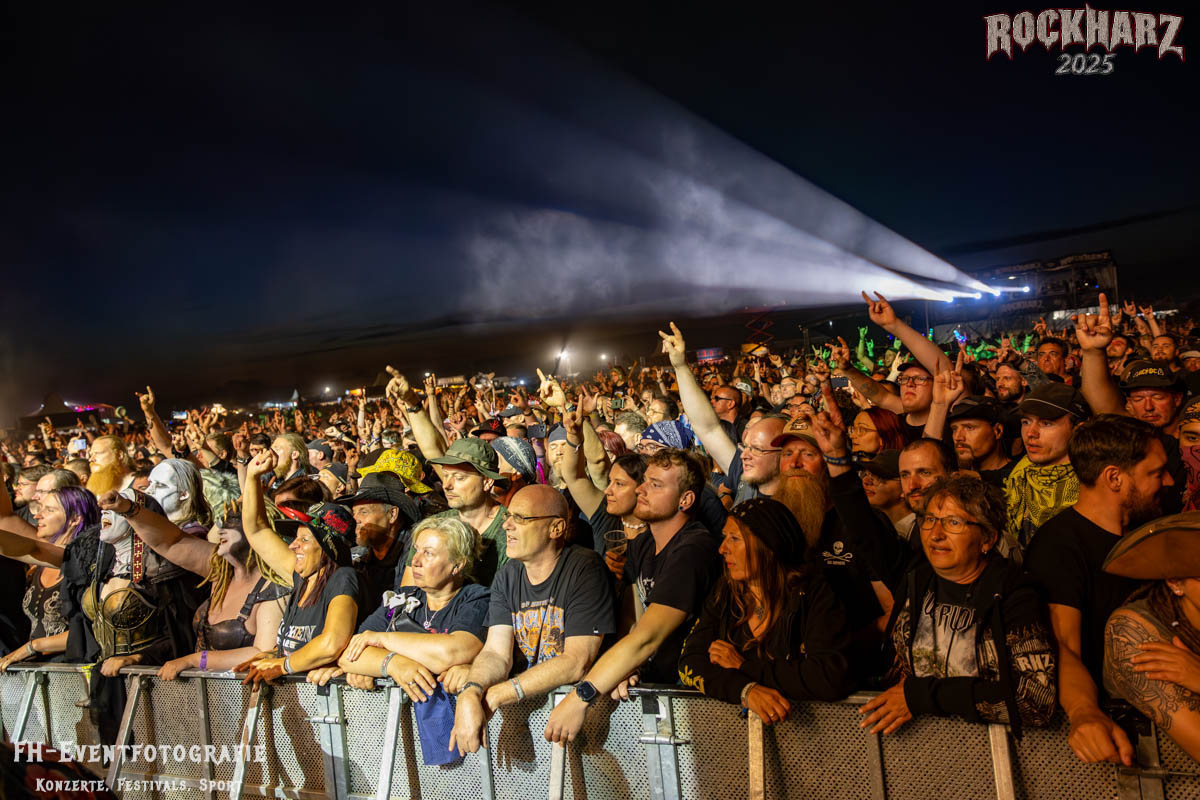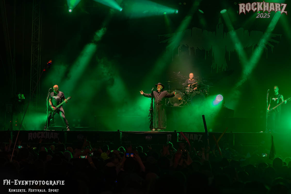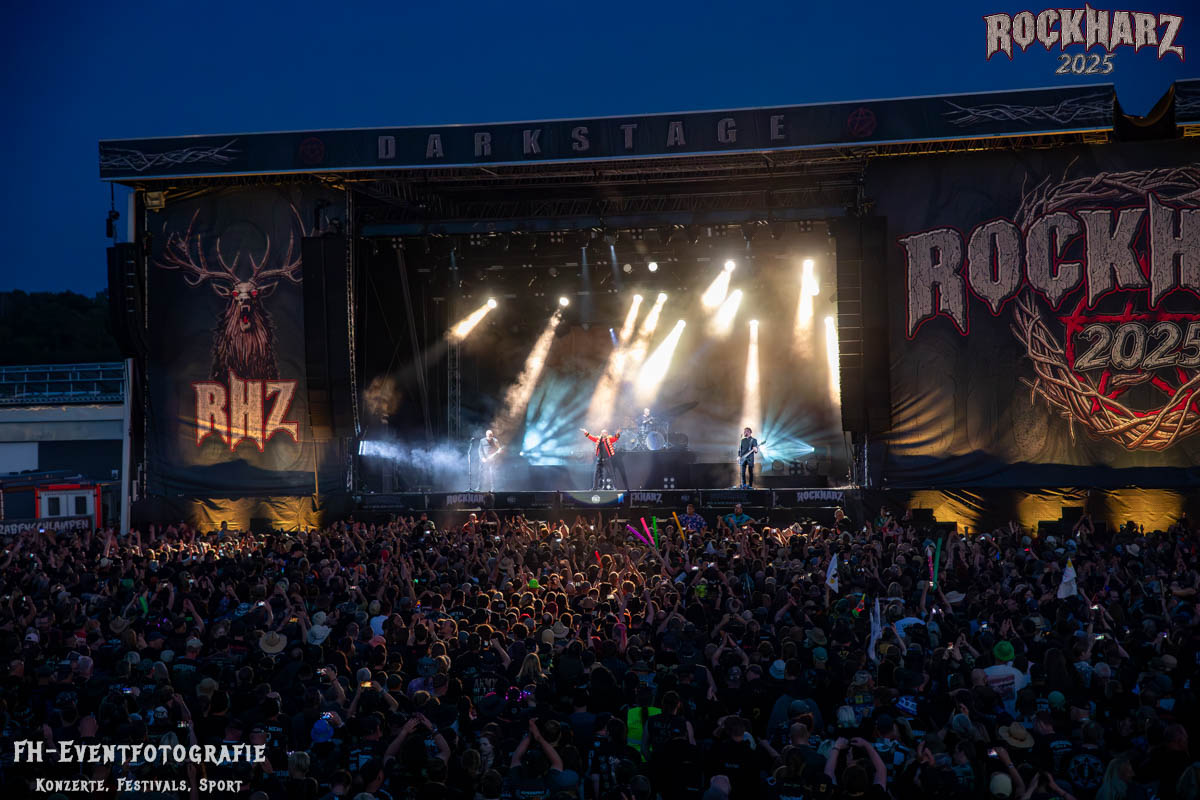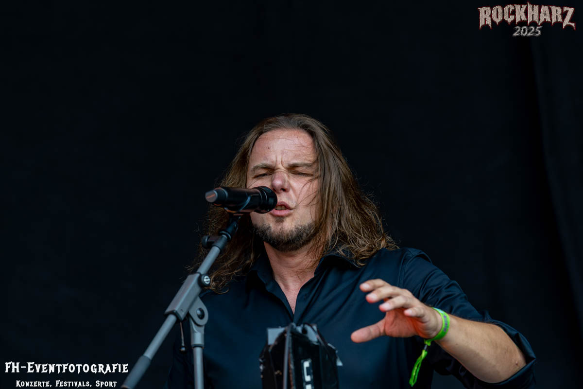 Meine Perle aus diesem Set war und ist eine Neuentdeckung für mich. SÓLSTAFIR aus Island muss man erlebt haben. Progressiv trifft Sludge und das Ganze übermalt mit Metalblues. Als ob sie, wie man den großen Bluesgöttern nachsagt, einen Pakt mit dem Teufel haben, haben SÓLSTAFIR einen Klangteppich vor der Teufelsmauer ausgebreitet, der seinesgleichen suchen wird. Ich habe noch nie so viele wirklich ergriffene und fast entrückt auf die Bühne schauende Menschen gesehen. Auch mich haben sie absolut in ihren Bann gezogen. Ich habe kaum den Kopf gehabt, mich auf das Fotografieren zu konzentrieren. Ein unfassbar beeindruckender Abschluss für diesen Tag auf dem „Rockharz 2025“