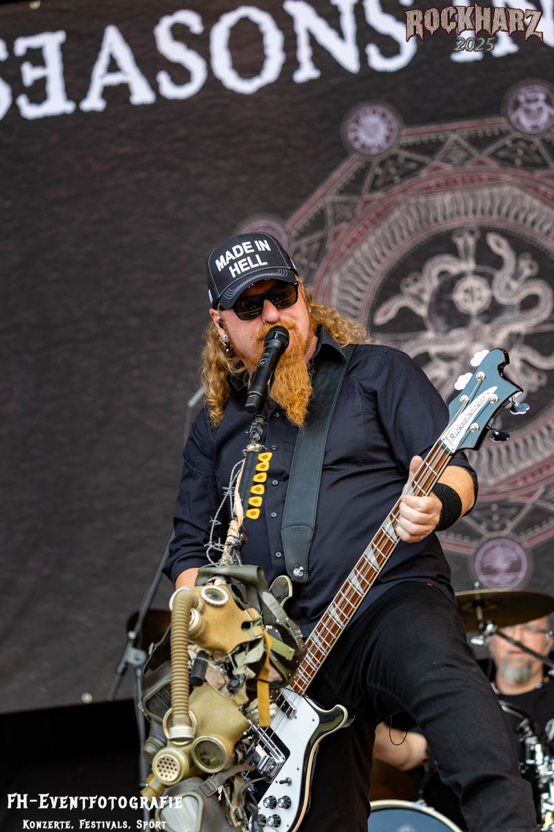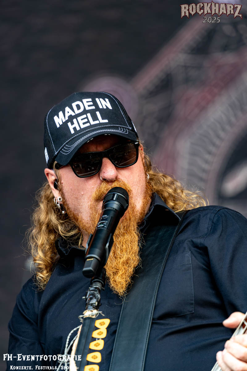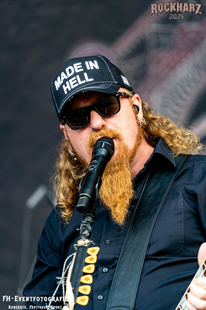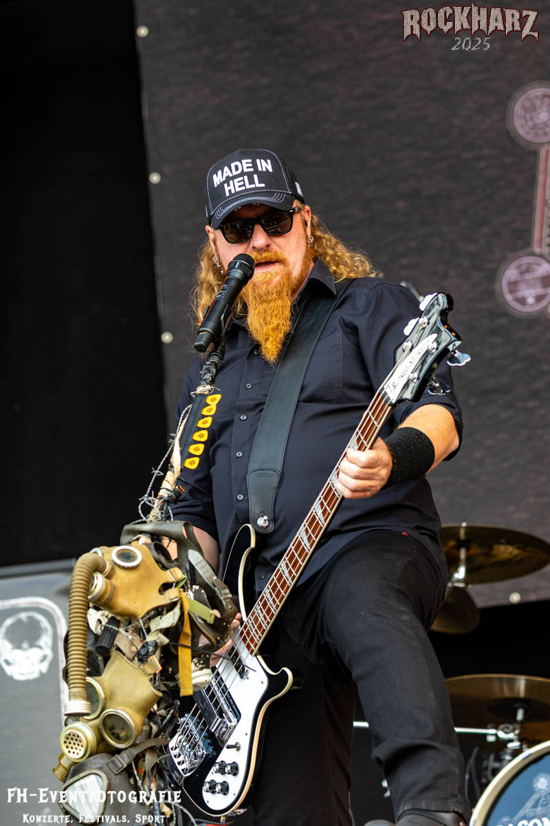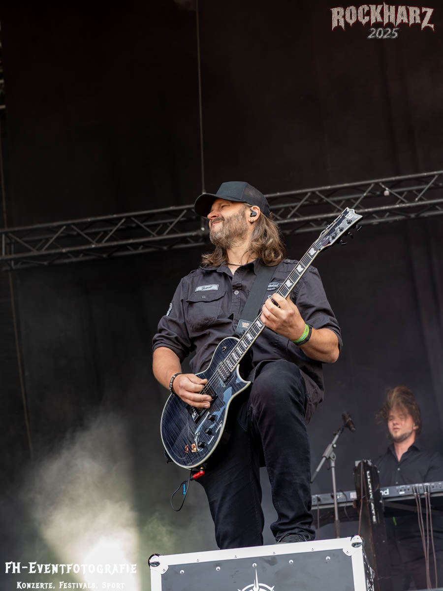Meine Perle aus diesem Set war und ist eine Neuentdeckung für mich. SÓLSTAFIR aus Island muss man erlebt haben. Progressiv trifft Sludge und das Ganze übermalt mit Metalblues. Als ob sie, wie man den großen Bluesgöttern nachsagt, einen Pakt mit dem Teufel haben, haben SÓLSTAFIR einen Klangteppich vor der Teufelsmauer ausgebreitet, der seinesgleichen suchen wird. Ich habe noch nie so viele wirklich ergriffene und fast entrückt auf die Bühne schauende Menschen gesehen. Auch mich haben sie absolut in ihren Bann gezogen. Ich habe kaum den Kopf gehabt, mich auf das Fotografieren zu konzentrieren. Ein unfassbar beeindruckender Abschluss für diesen Tag auf dem „Rockharz 2025“